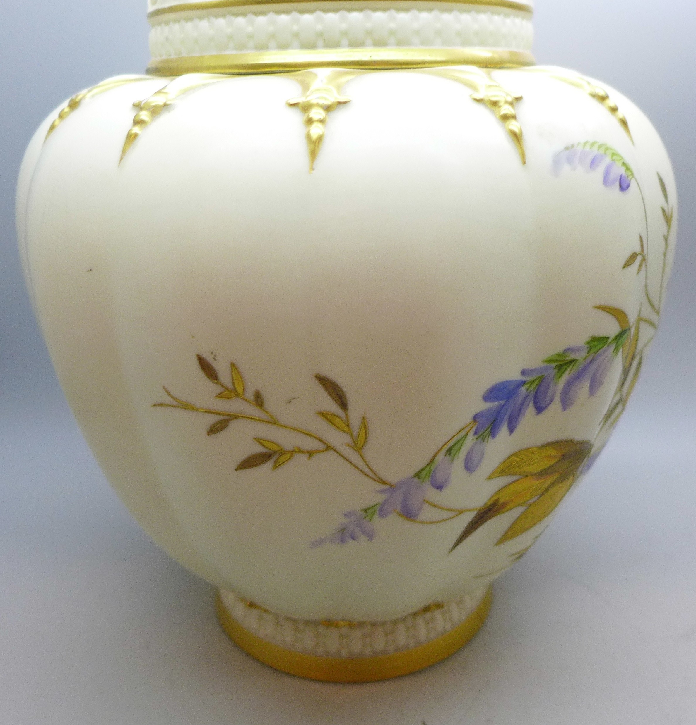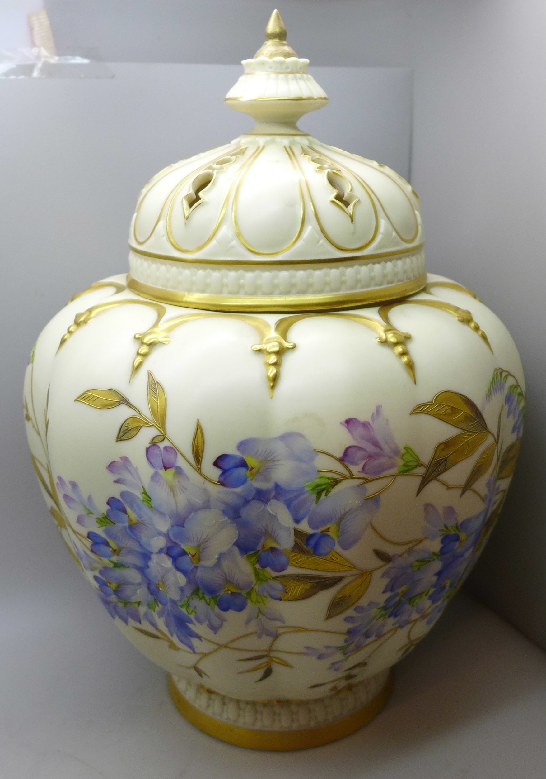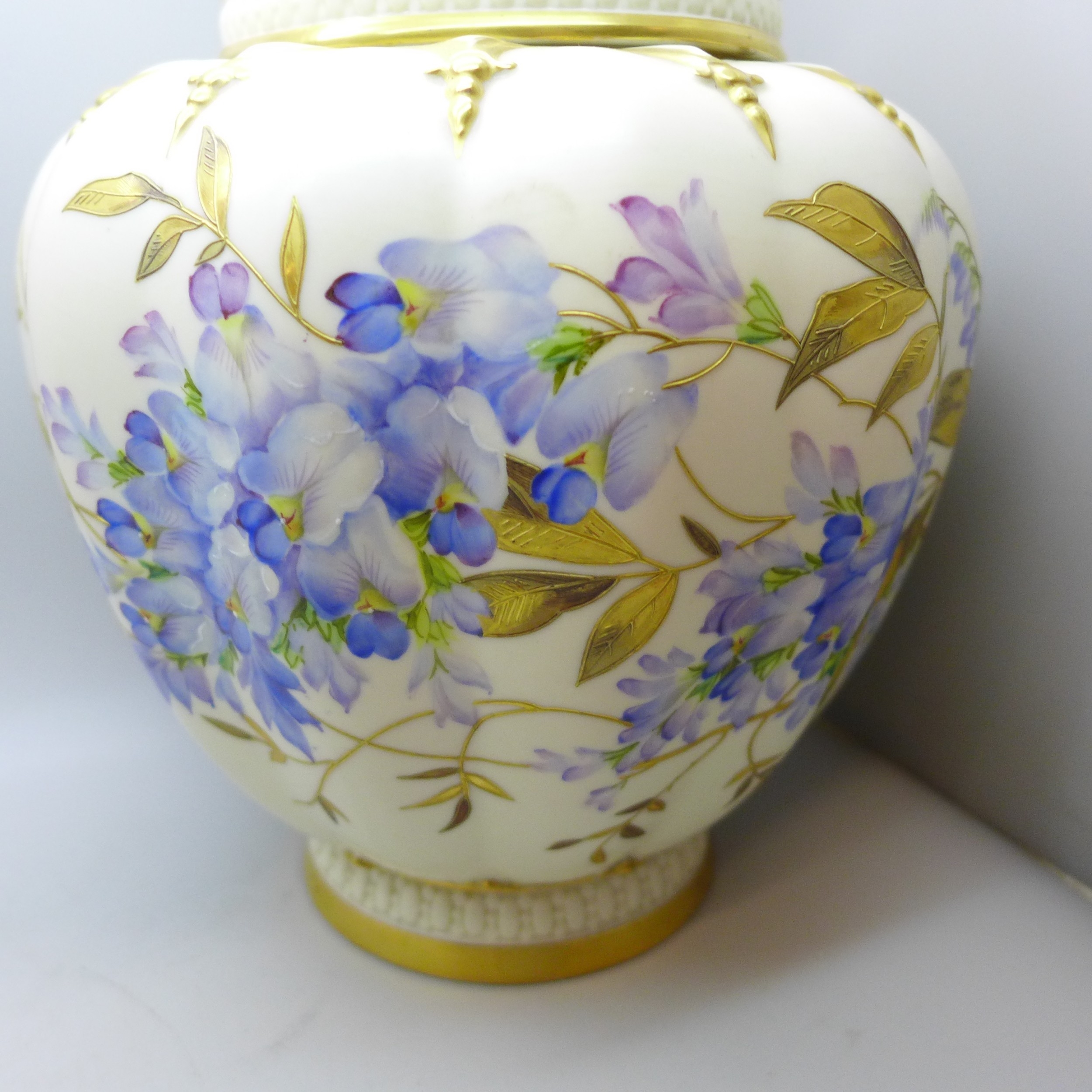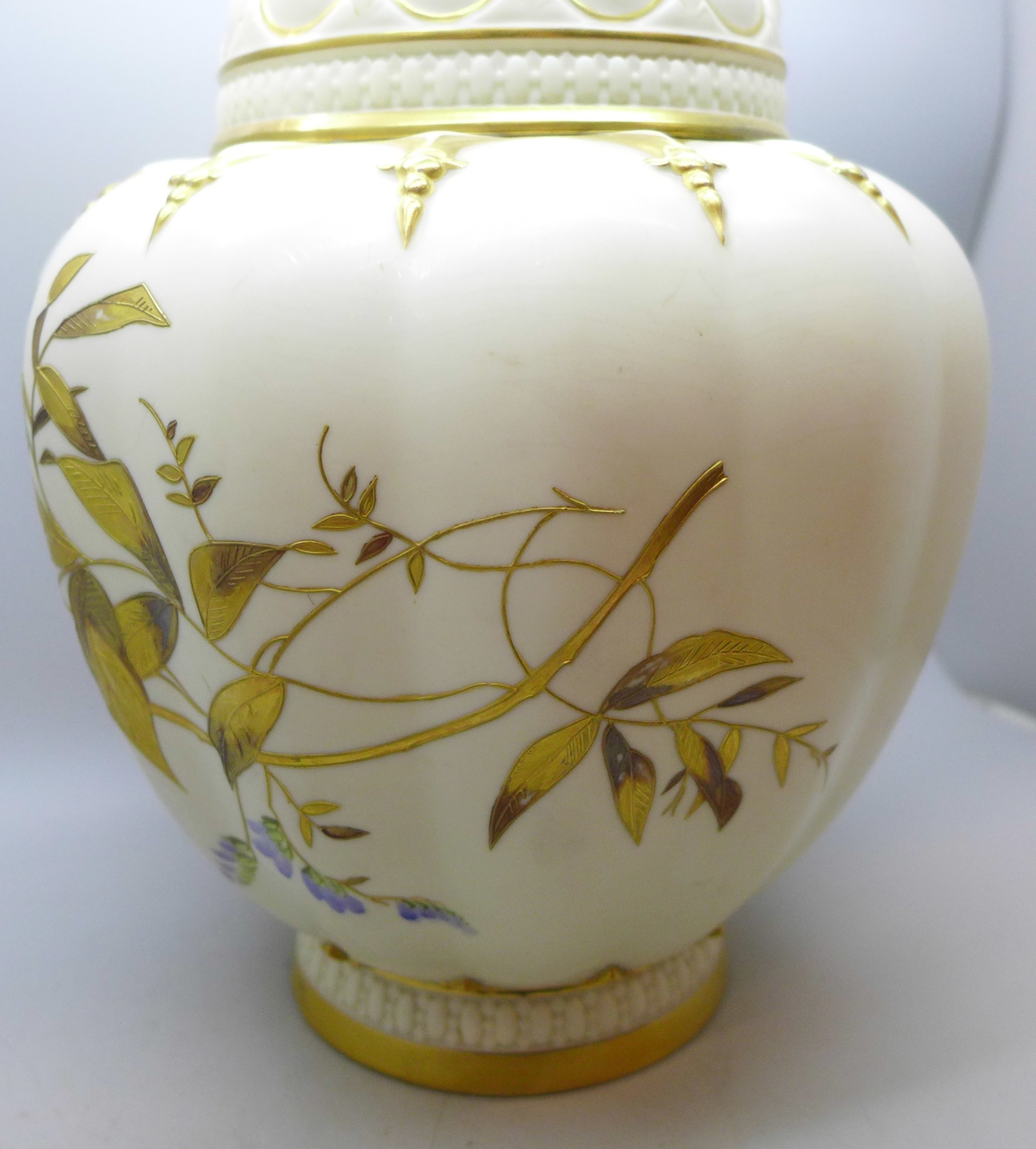 A Royal Worcester Stuart Rose jar and covers (inner and outer lids), circa 1889, numbered 1312, 27cm h