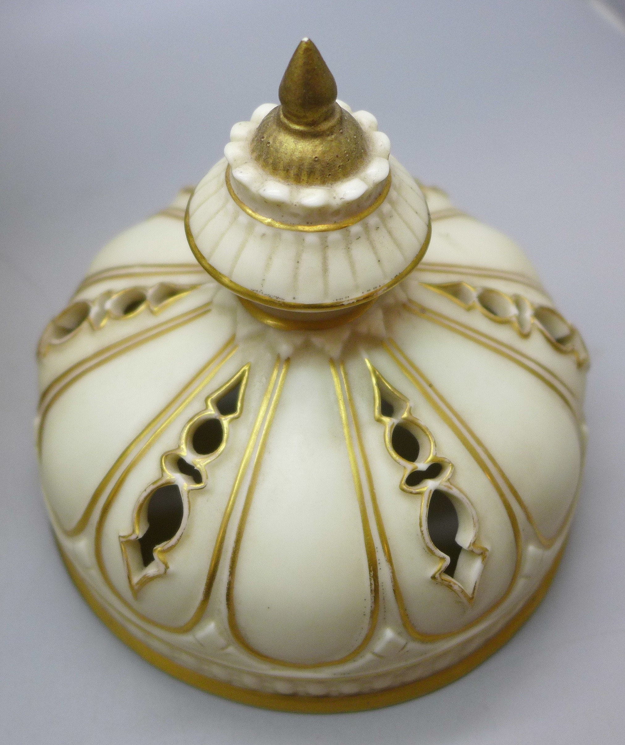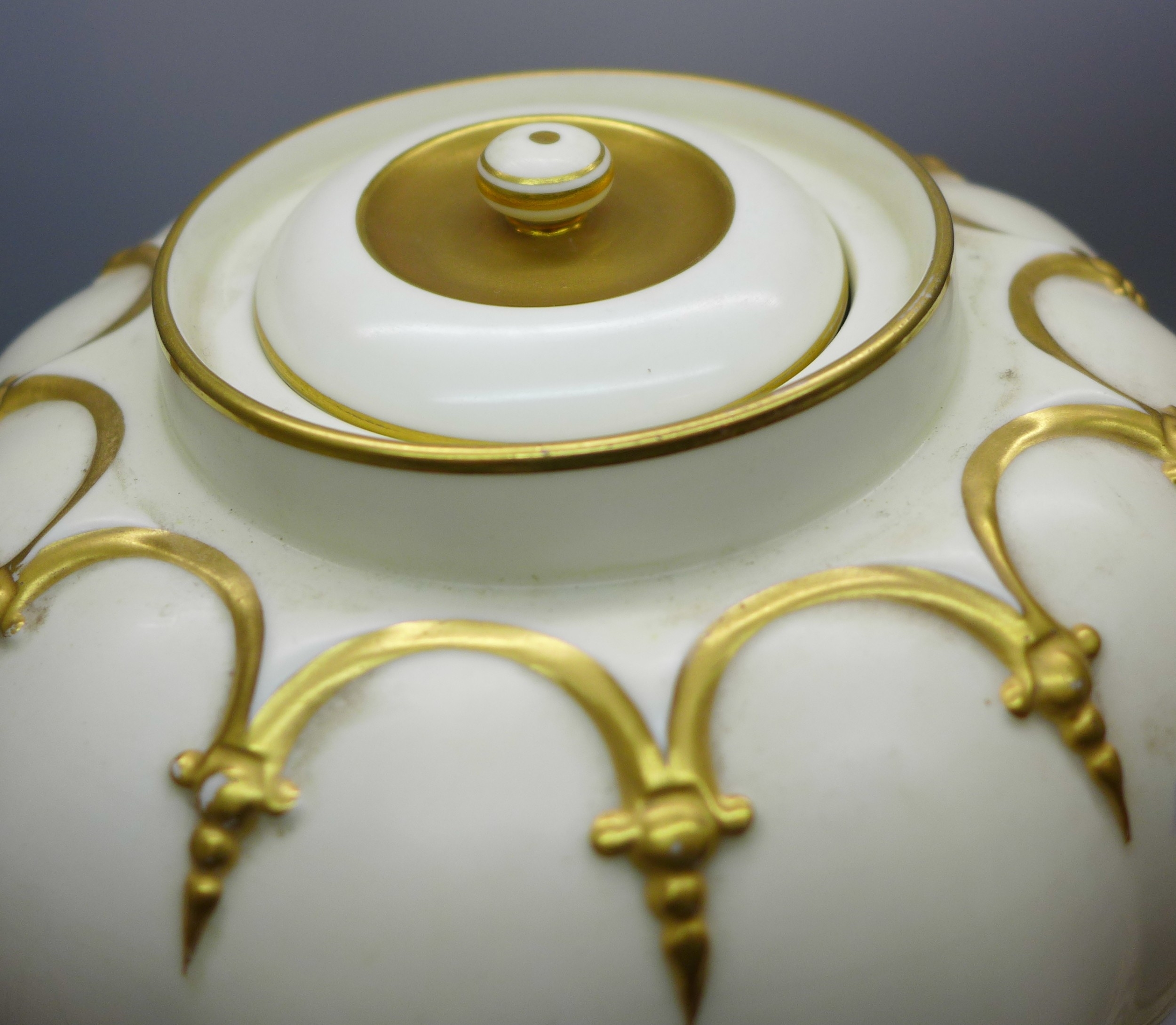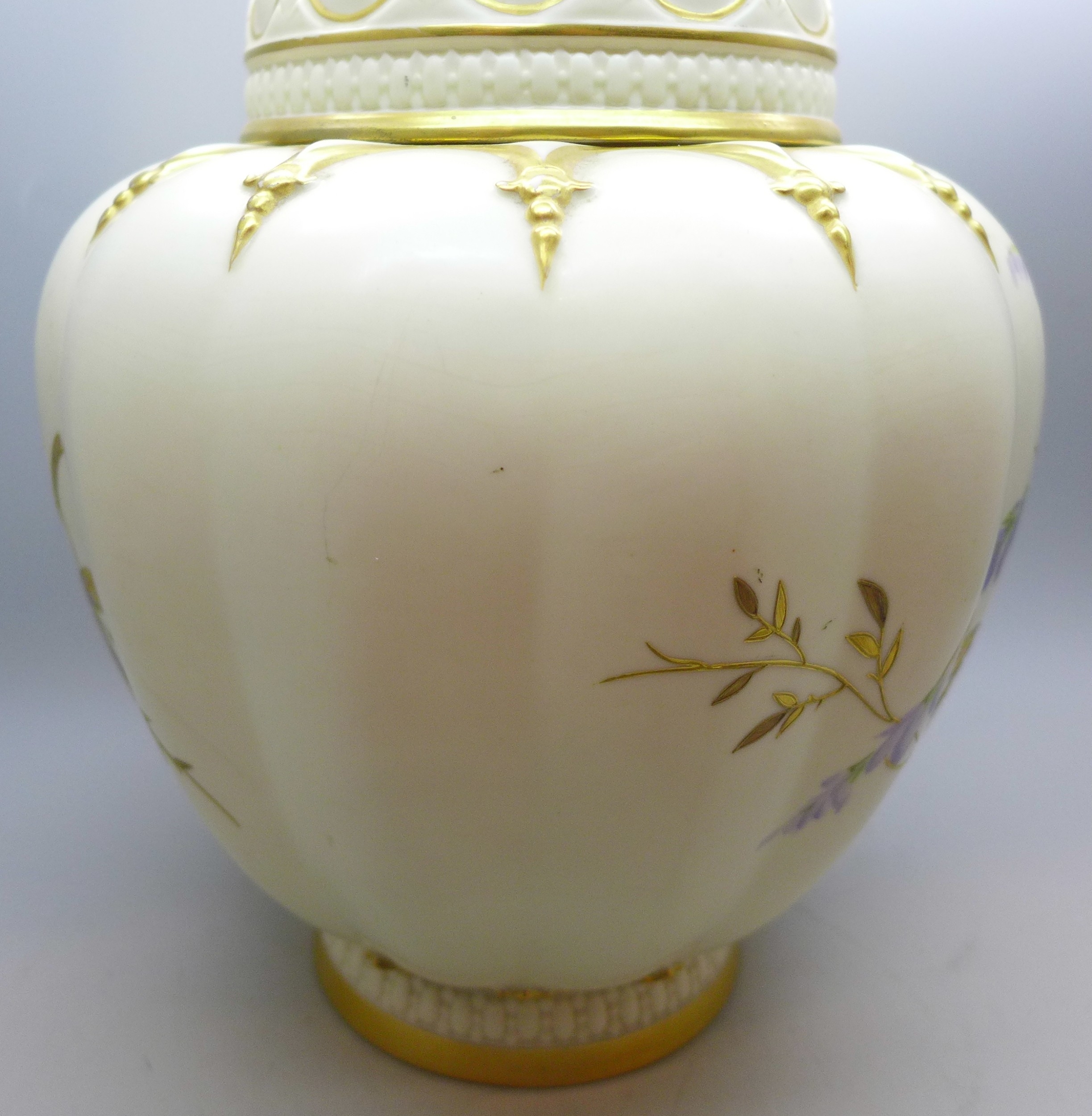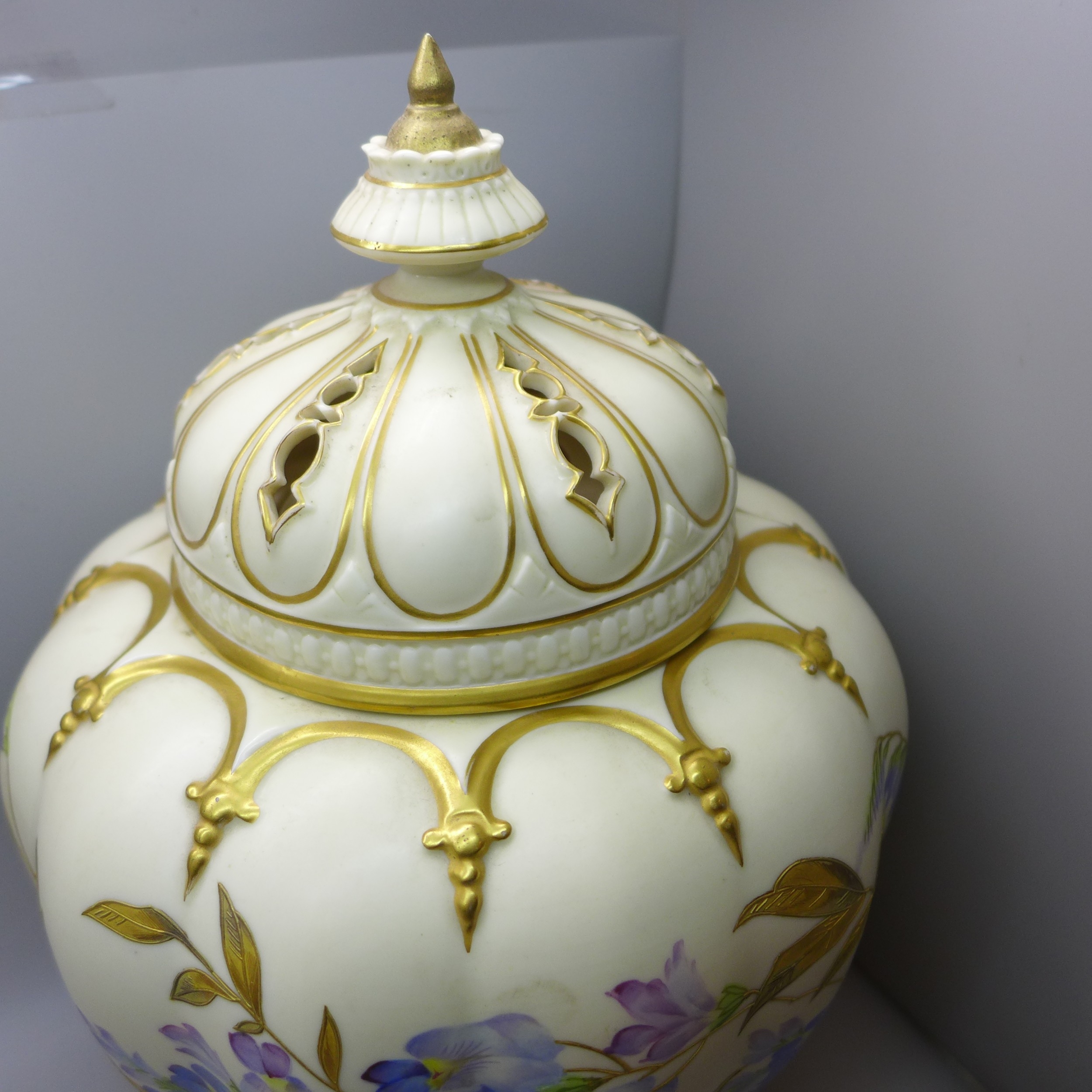 A Royal Worcester Stuart Rose jar and covers (inner and outer lids), circa 1889, numbered 1312, 27cm h
