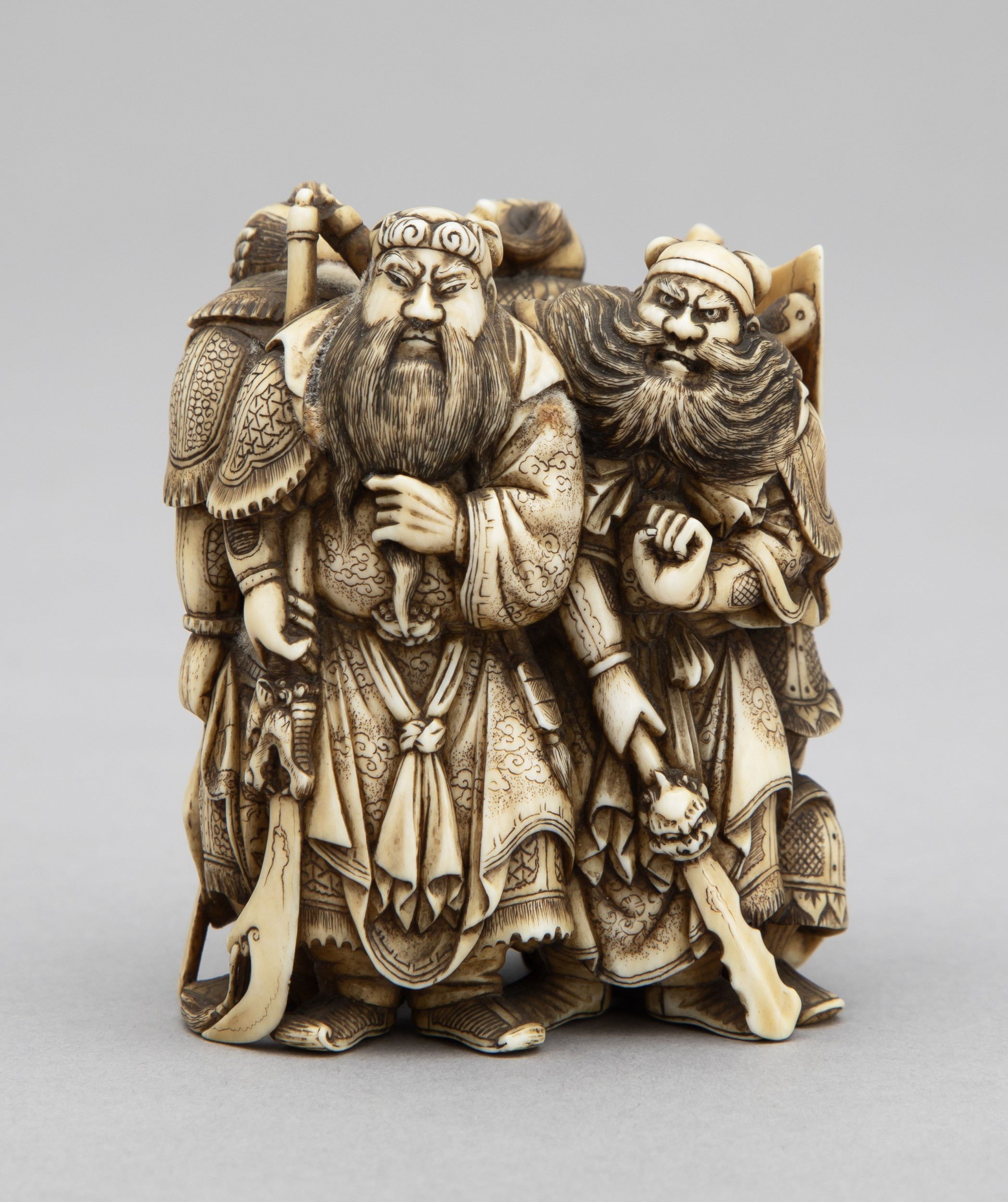 A JAPANESE NETSUKE CARVING DEPICTING KAN’U AND CHOHI