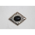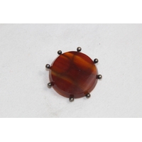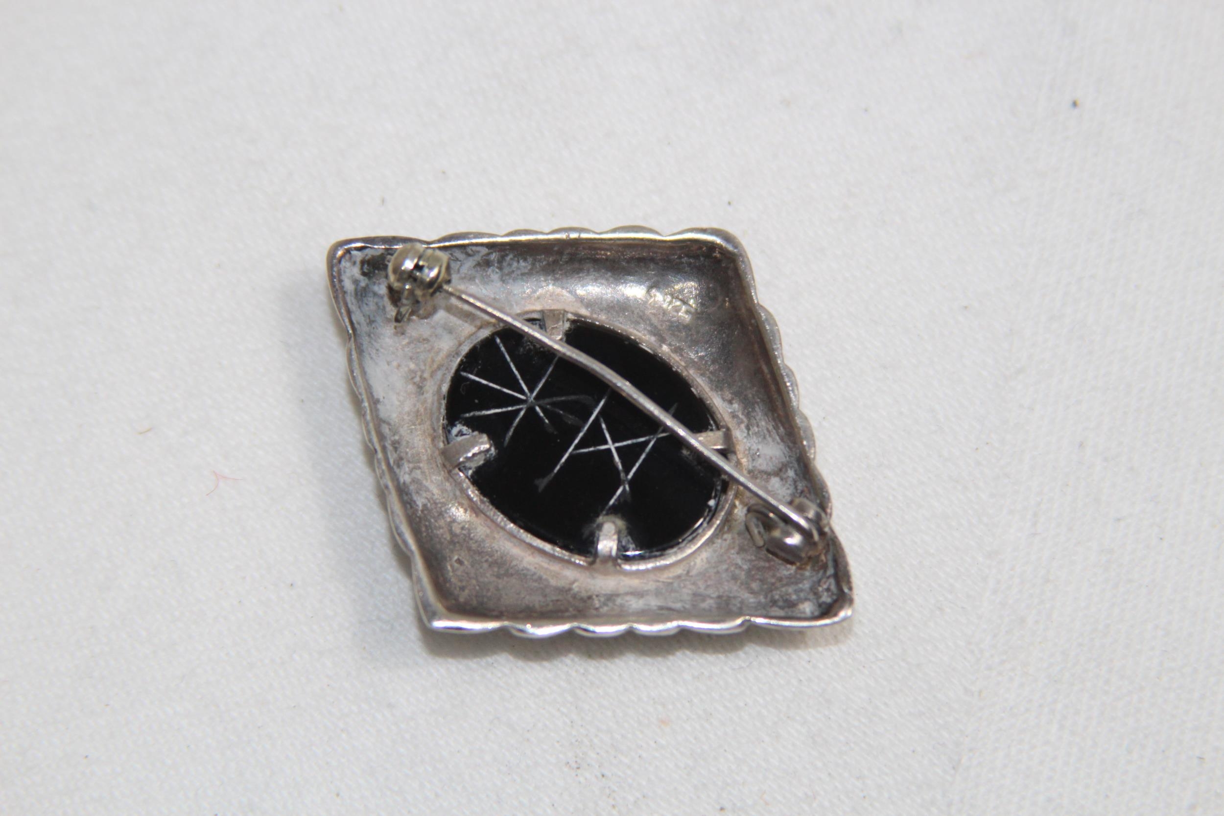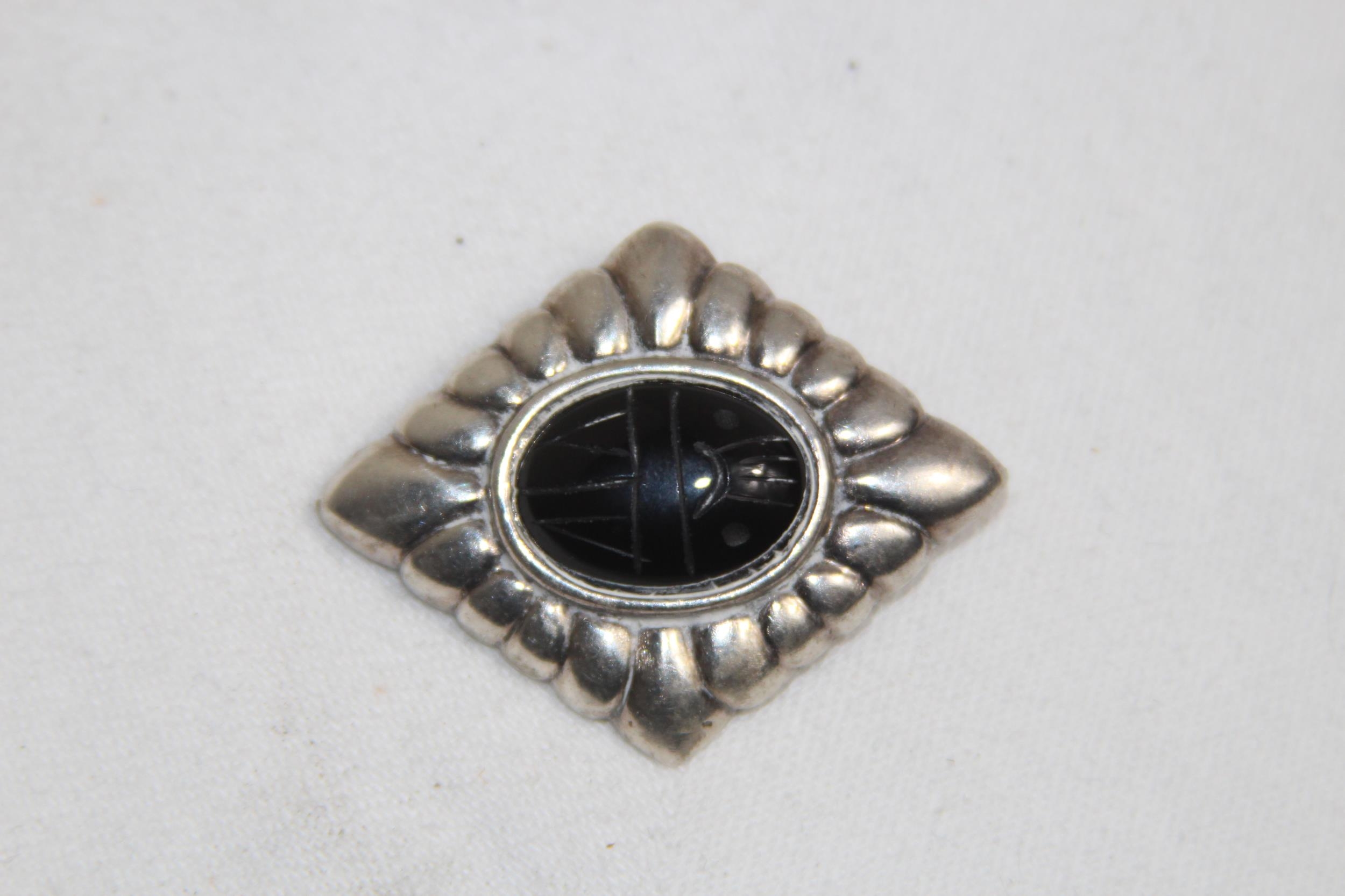 CARVED STONE SET SILVER BROOCH, 11.36 GRAMS