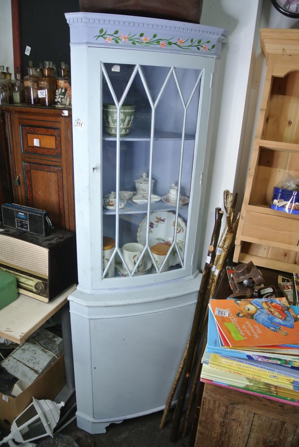 A painted corner cabinet