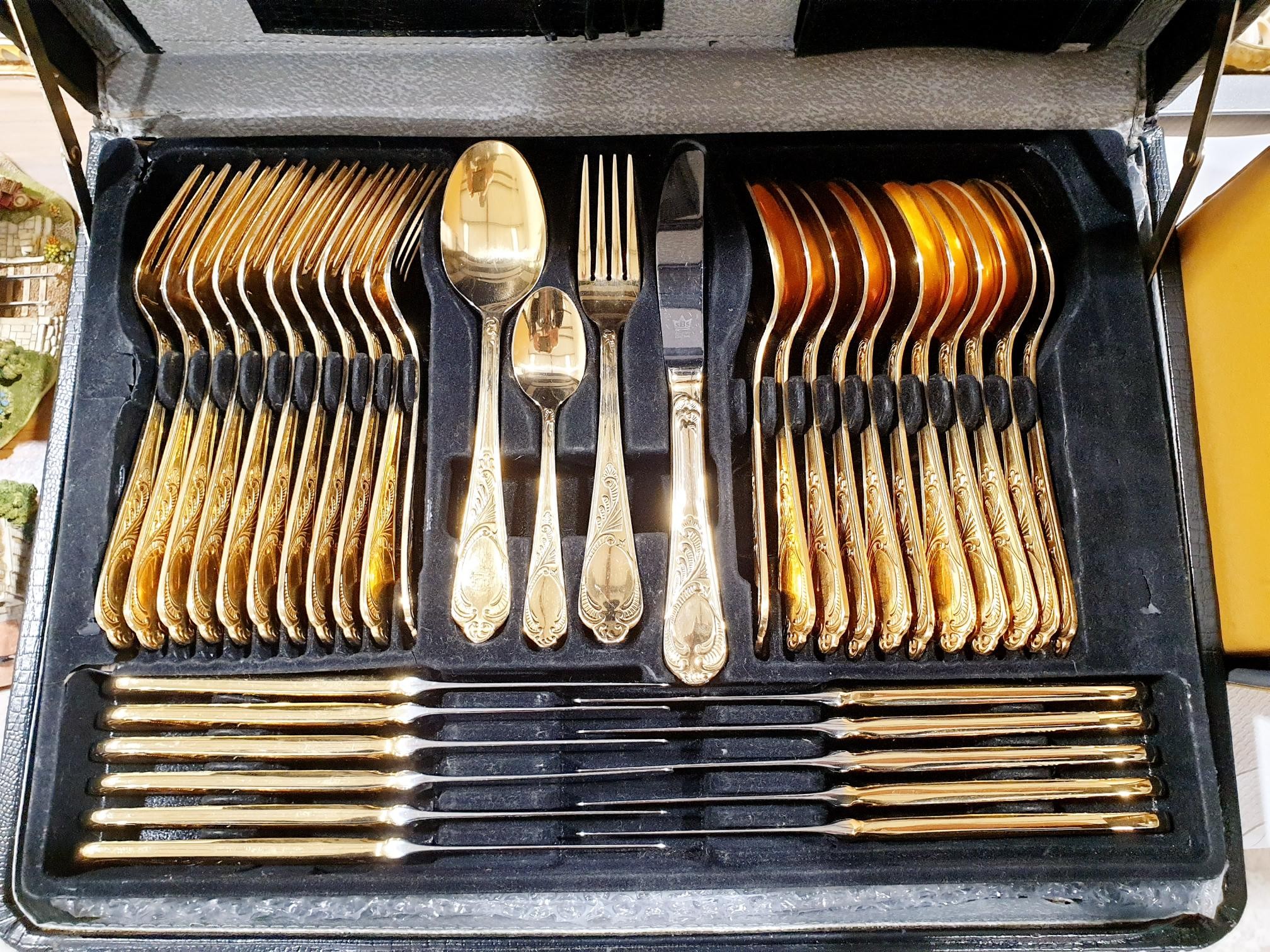 A German SPS Solingen gold plated canteen of cutlery. No Shipping. Arrange collection or your own packer and shipper, please.