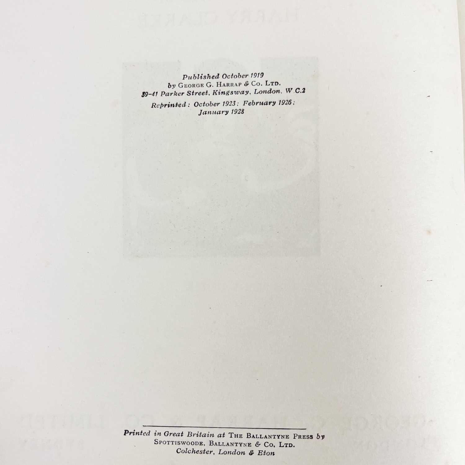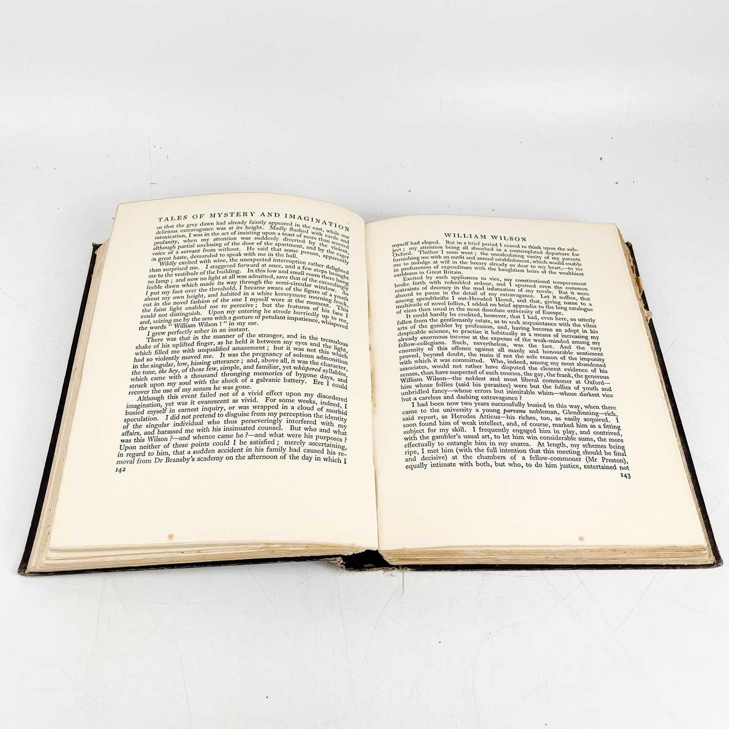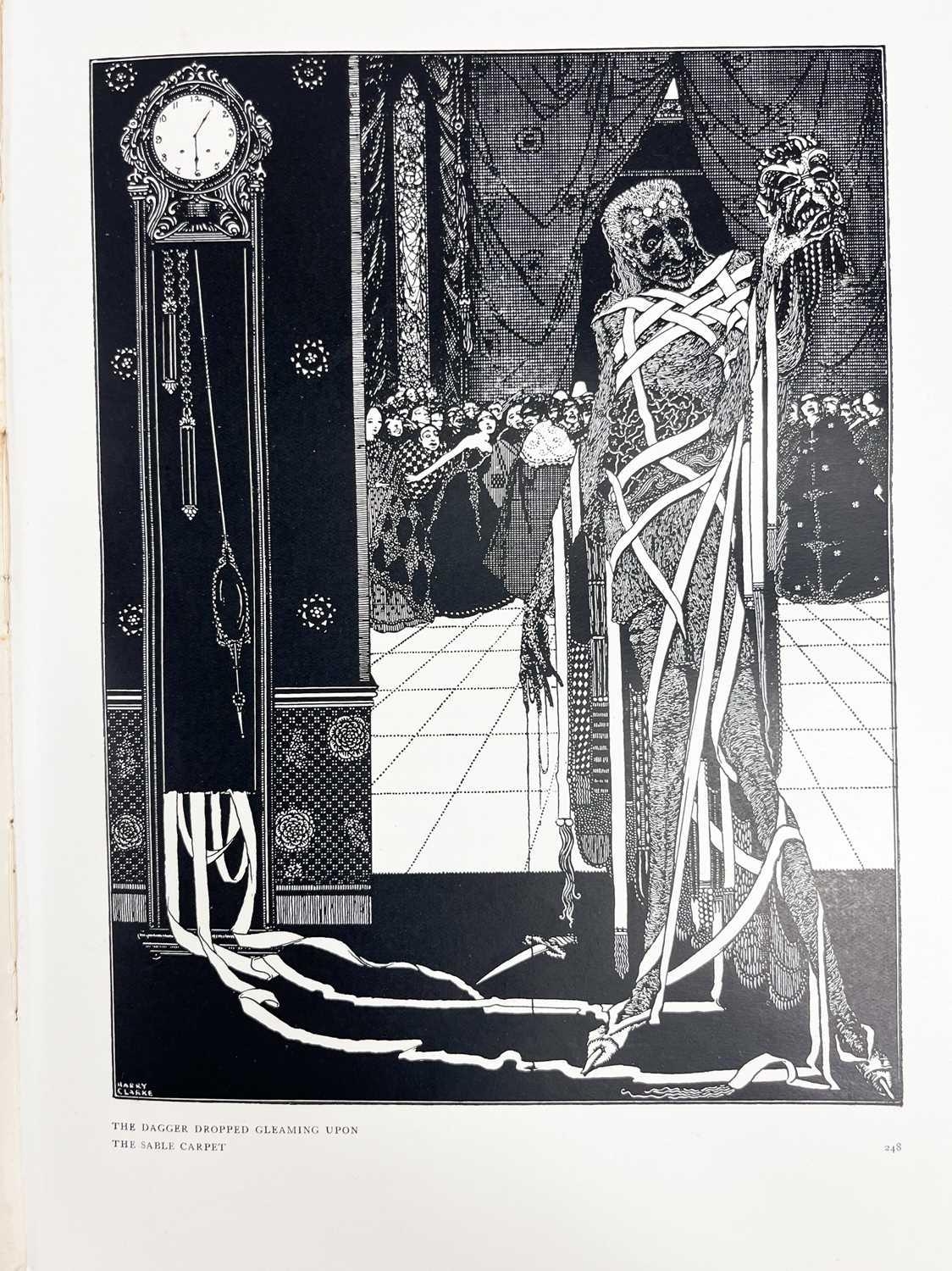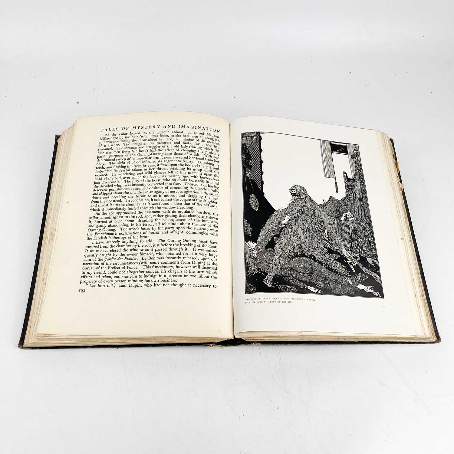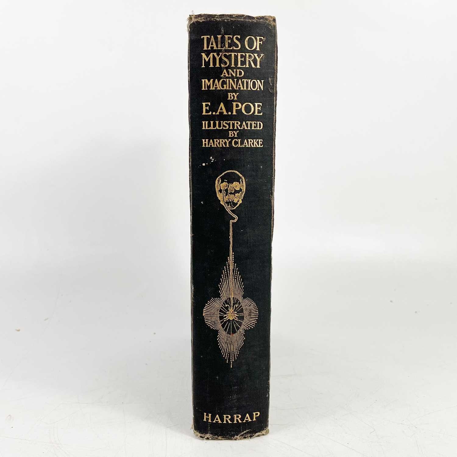 CLARKE, Harry (illustrations) and POE, Edgar Allen. 'Tales of Mystery and Imagination,' Reprint, original black cloth with pictorial paper illustration to front board and gilt decorations to spine, rubbed and bumped with small nibbles to ends of backstrip, heavy spotting to endpapers and title page, text block clean and tight, plates, a good copy, George G. Harrap & Co, London, 1928.