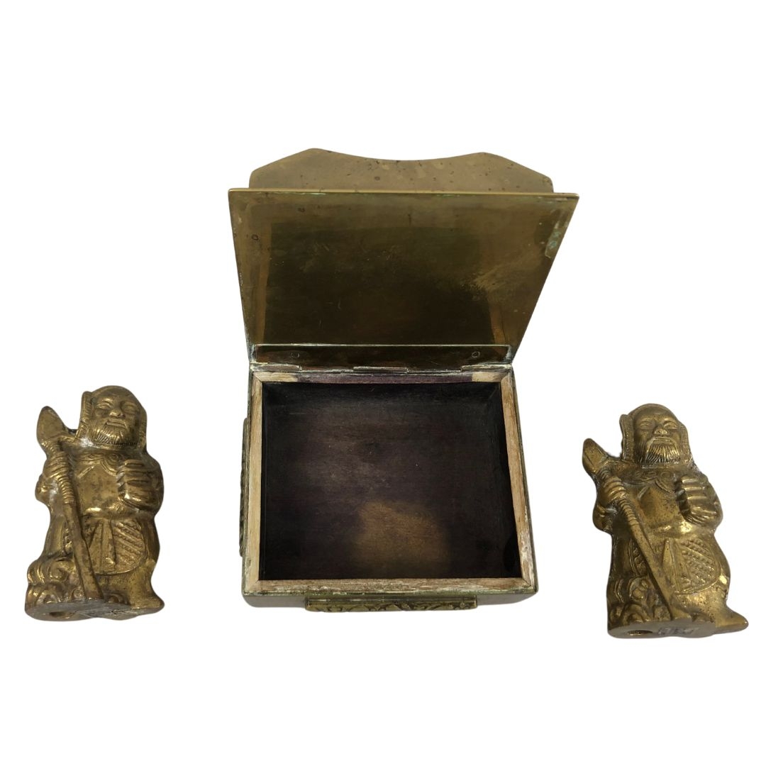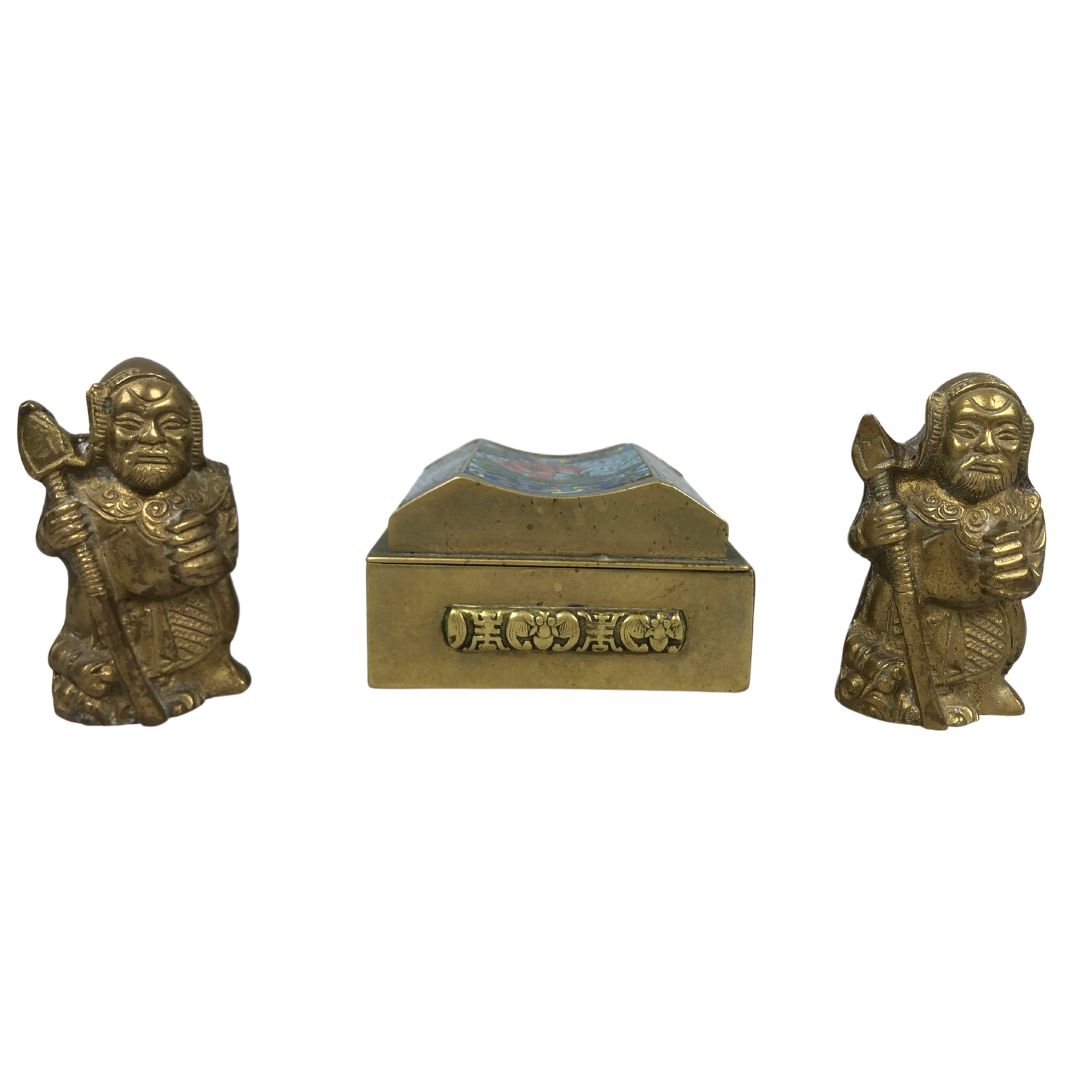 Pair of Chinese Warriors Made in India & Mid Century Chinese Cloisonne Box