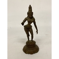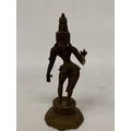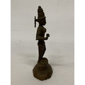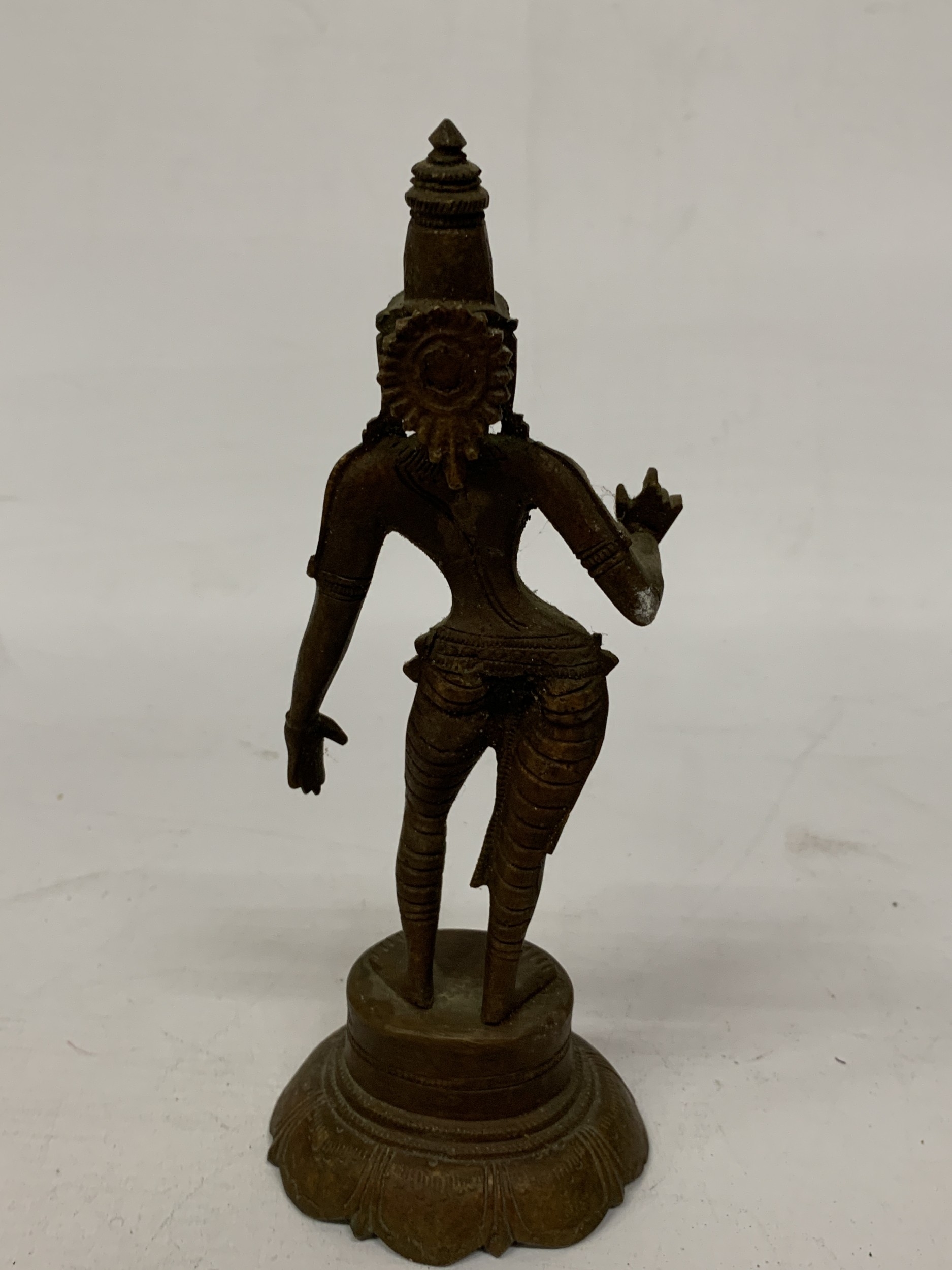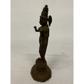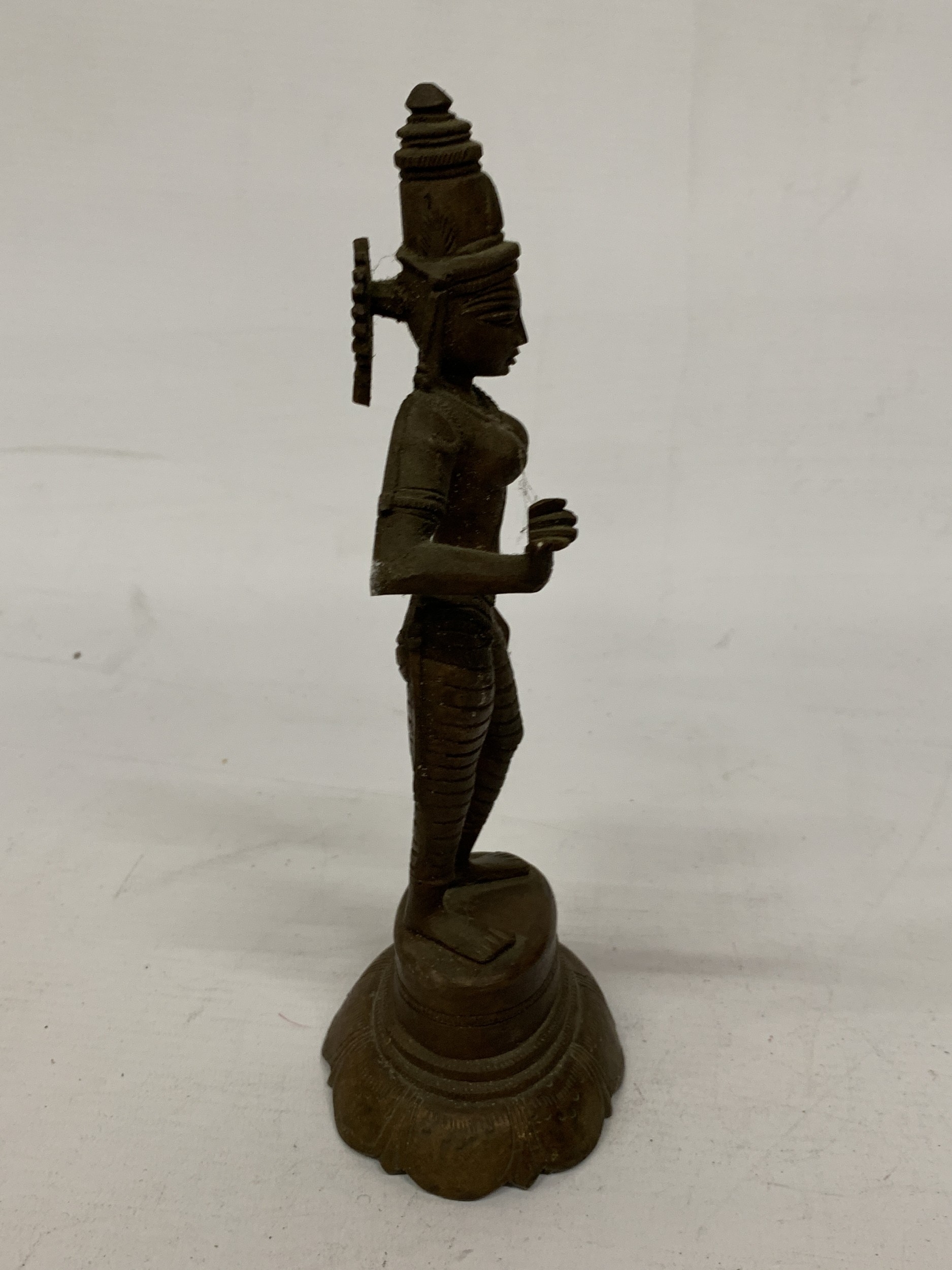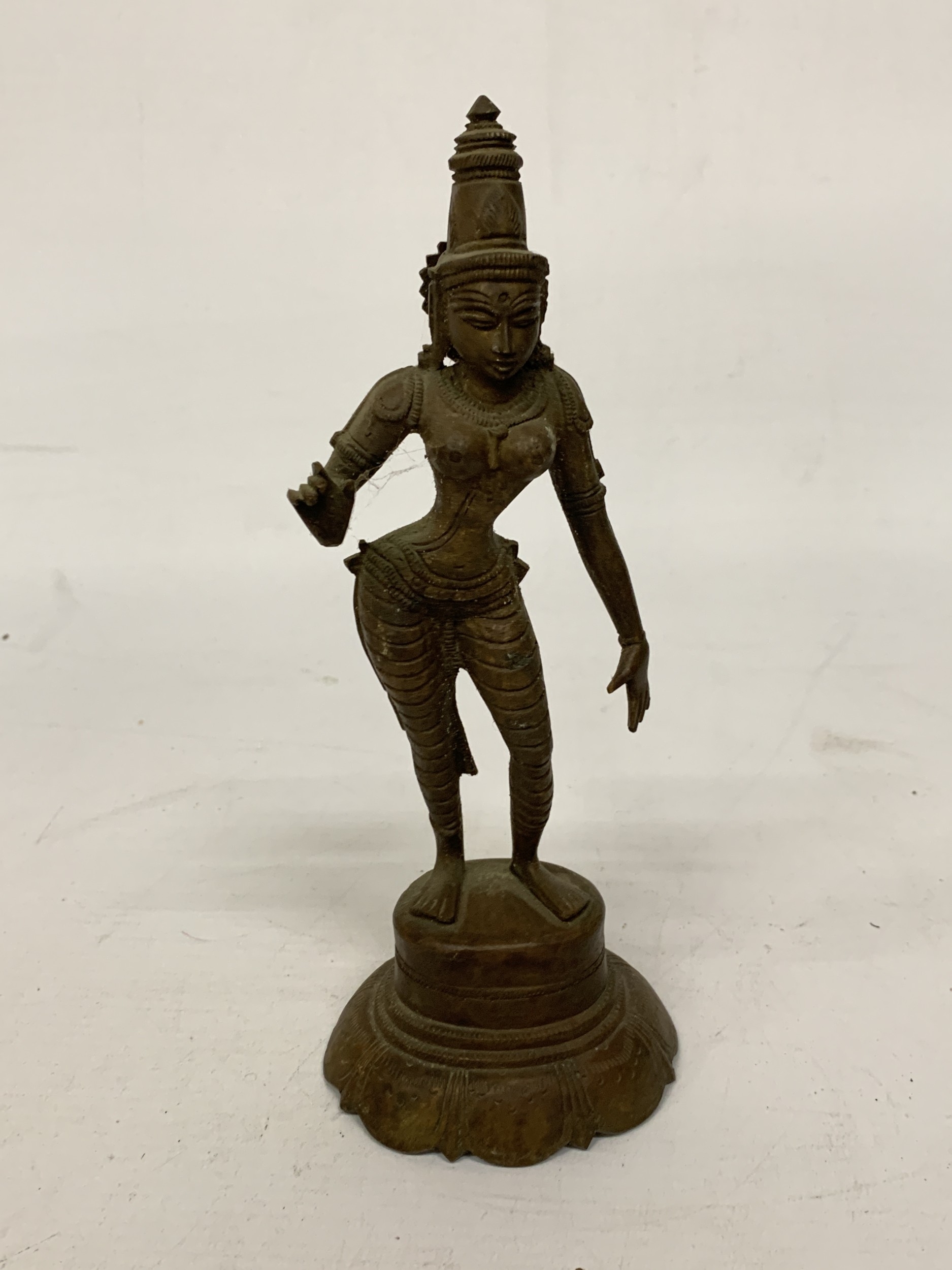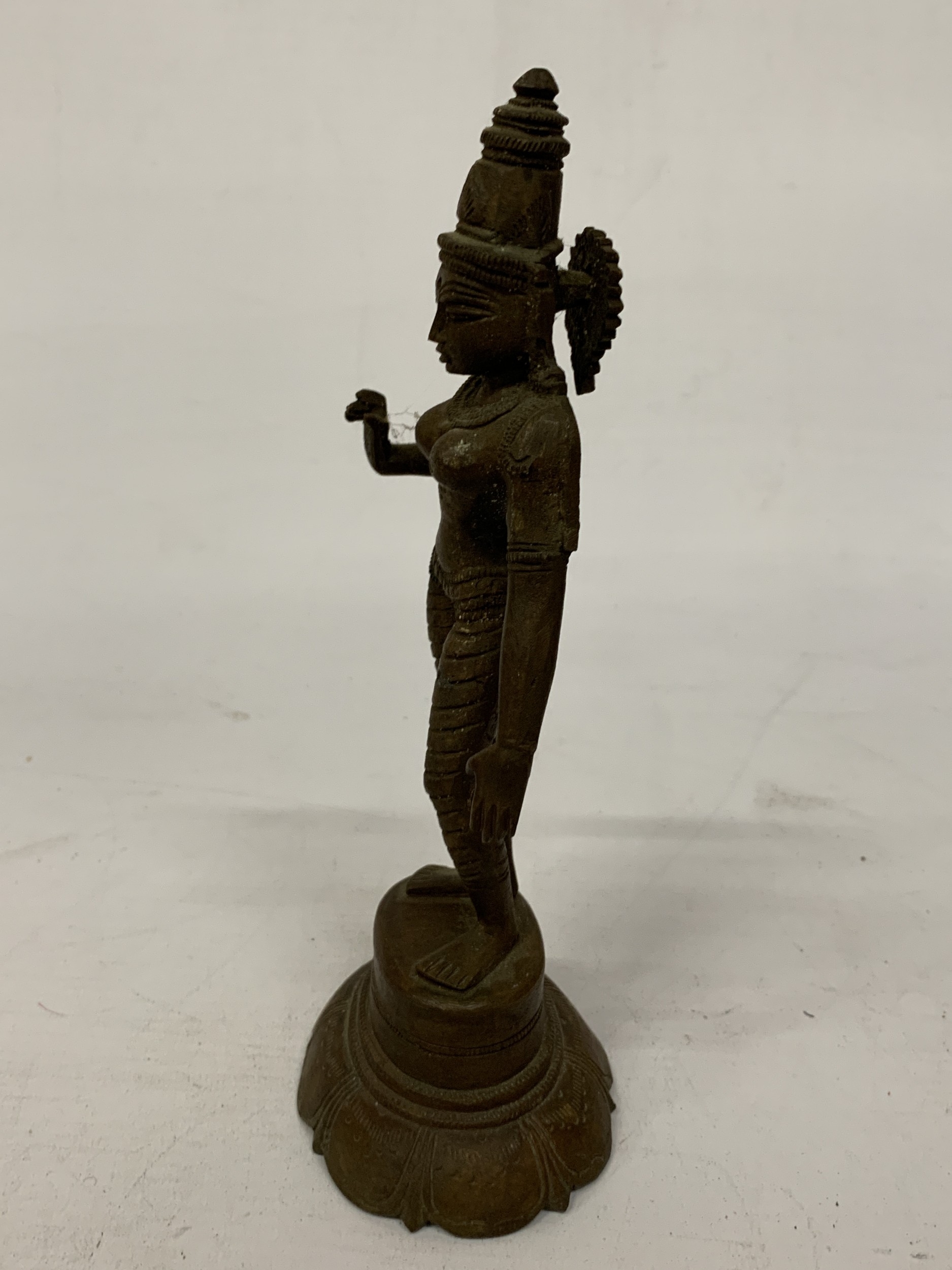 A SOUTH INDIAN BRONZE STATUE OF THE HINDU GODDESS PARVATI STANDING ON A LOTUS, SQUARE PLINTH BASE - 21.5 CM