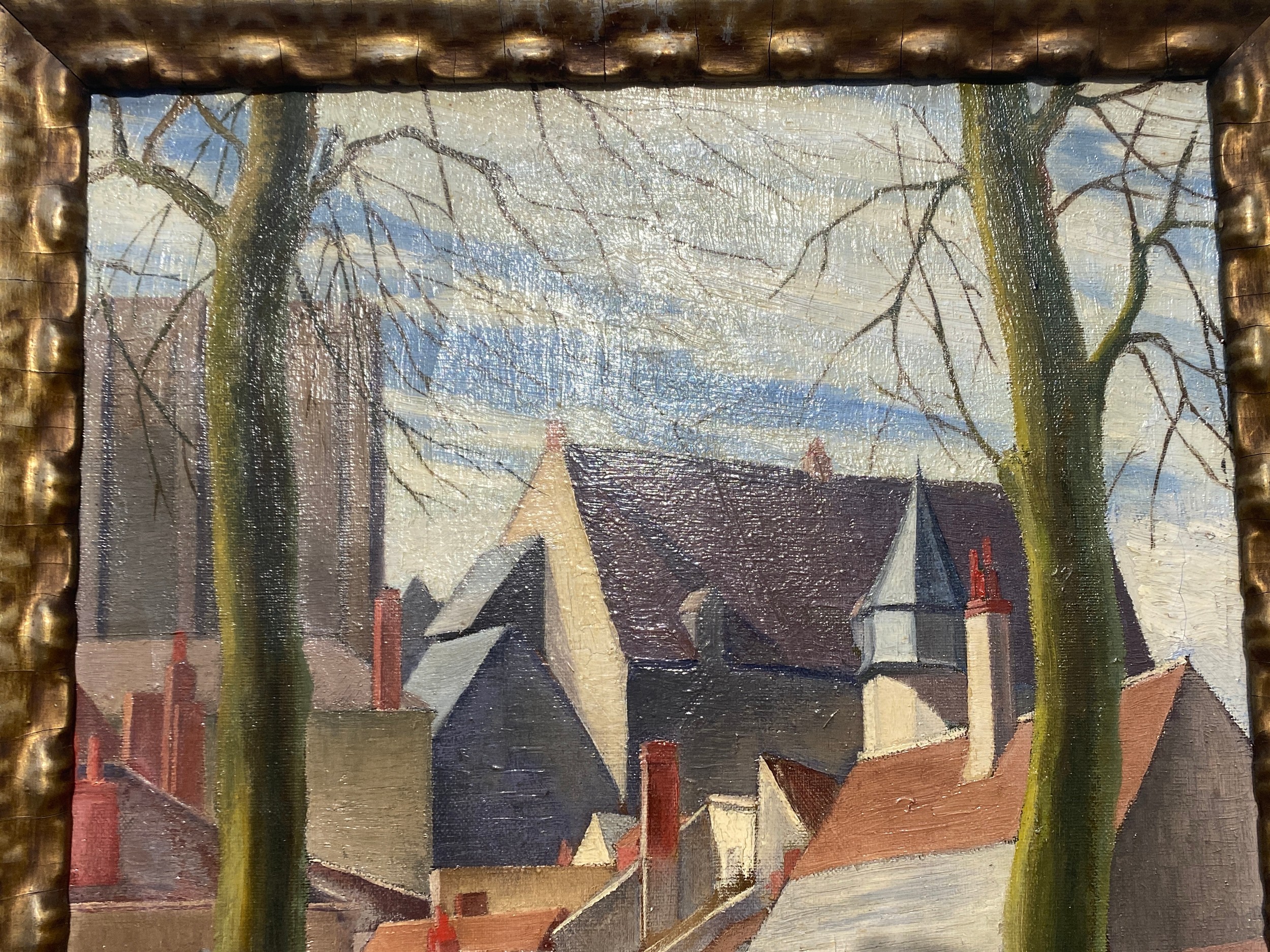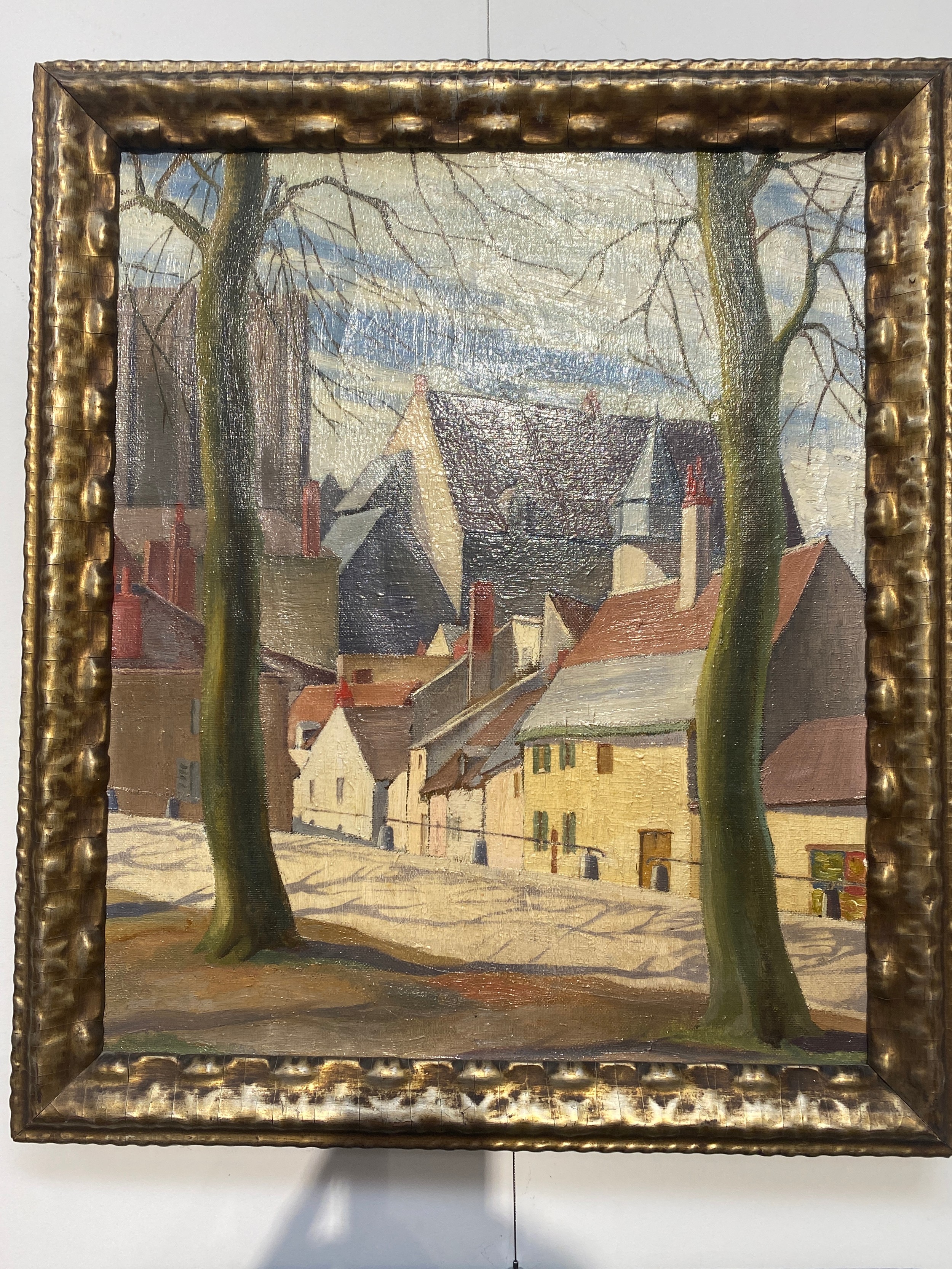 JAMES H HOGAN; Oil on canvas depicting Continental town, roo...