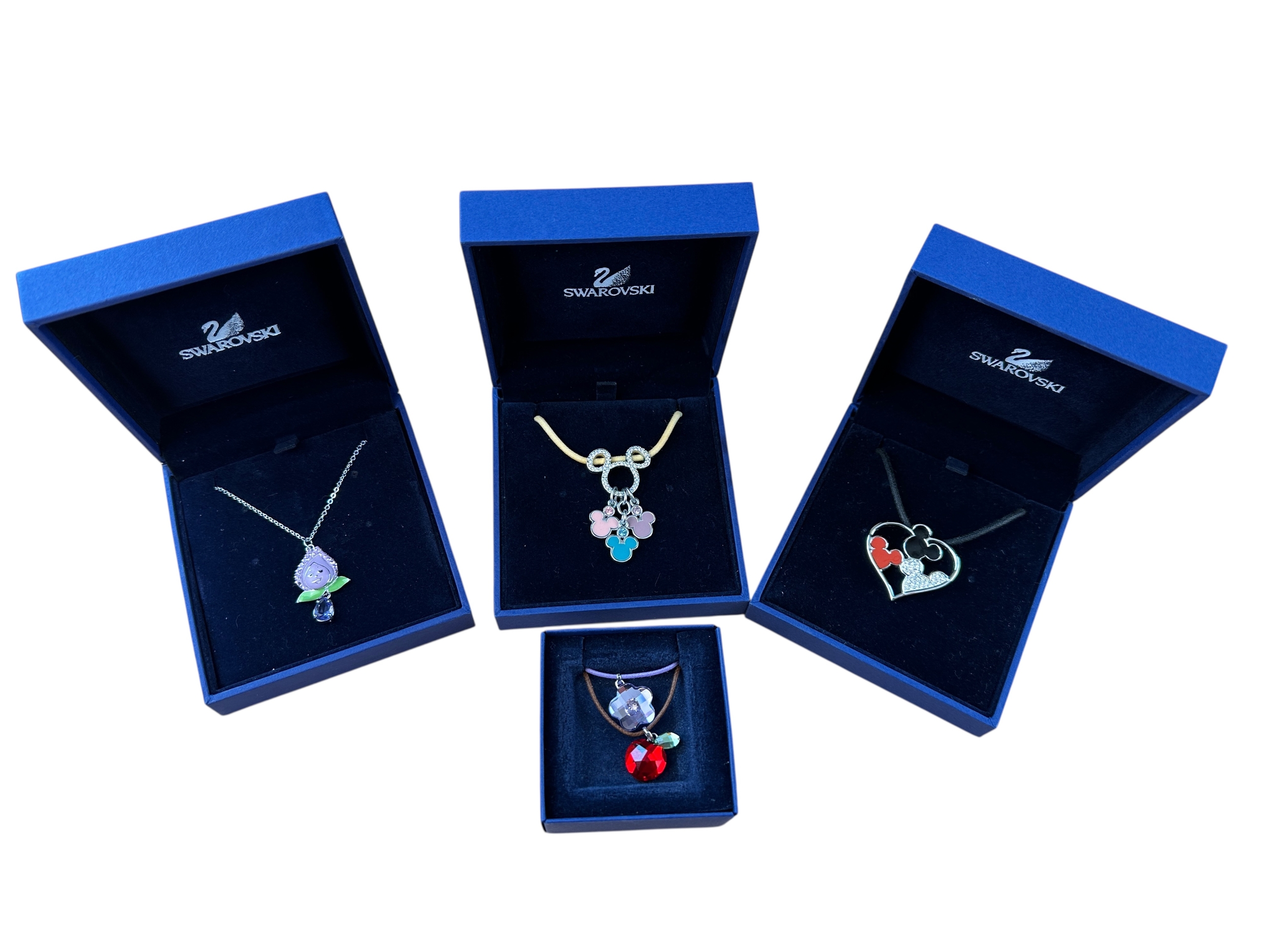 Three Items of Disney Swarovski Pendants alondside Two Other Swarovski Pendants
