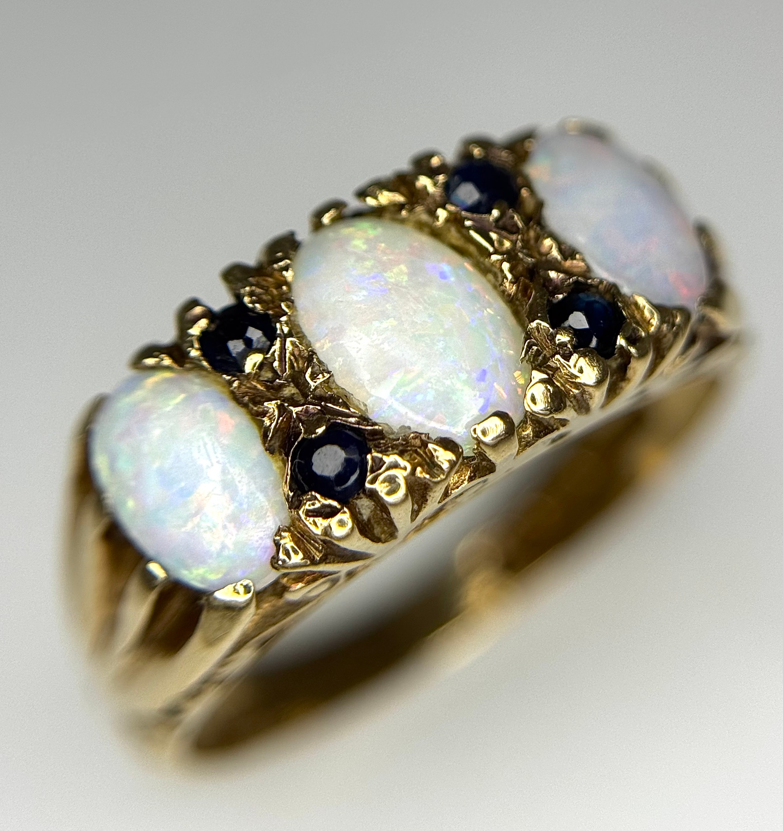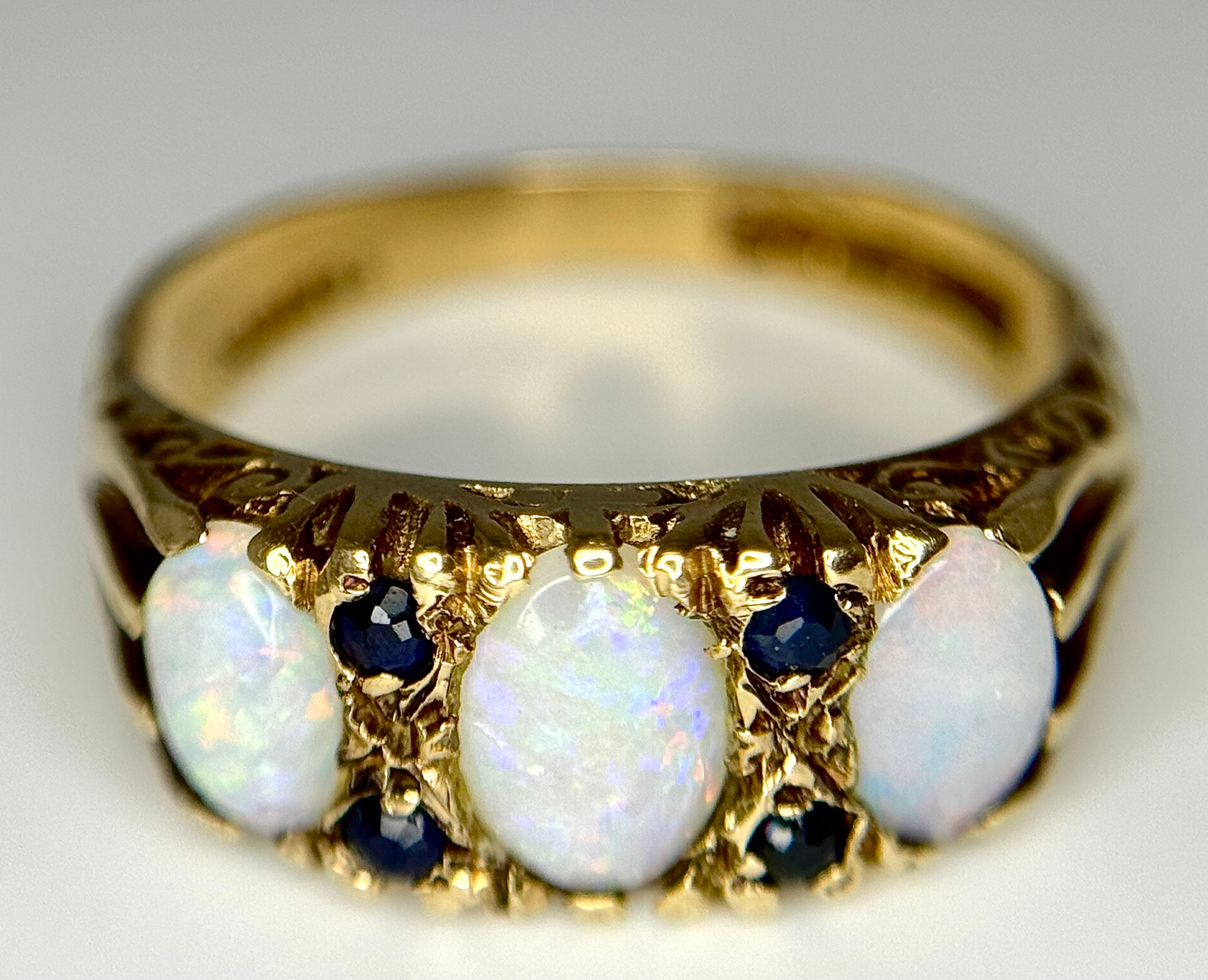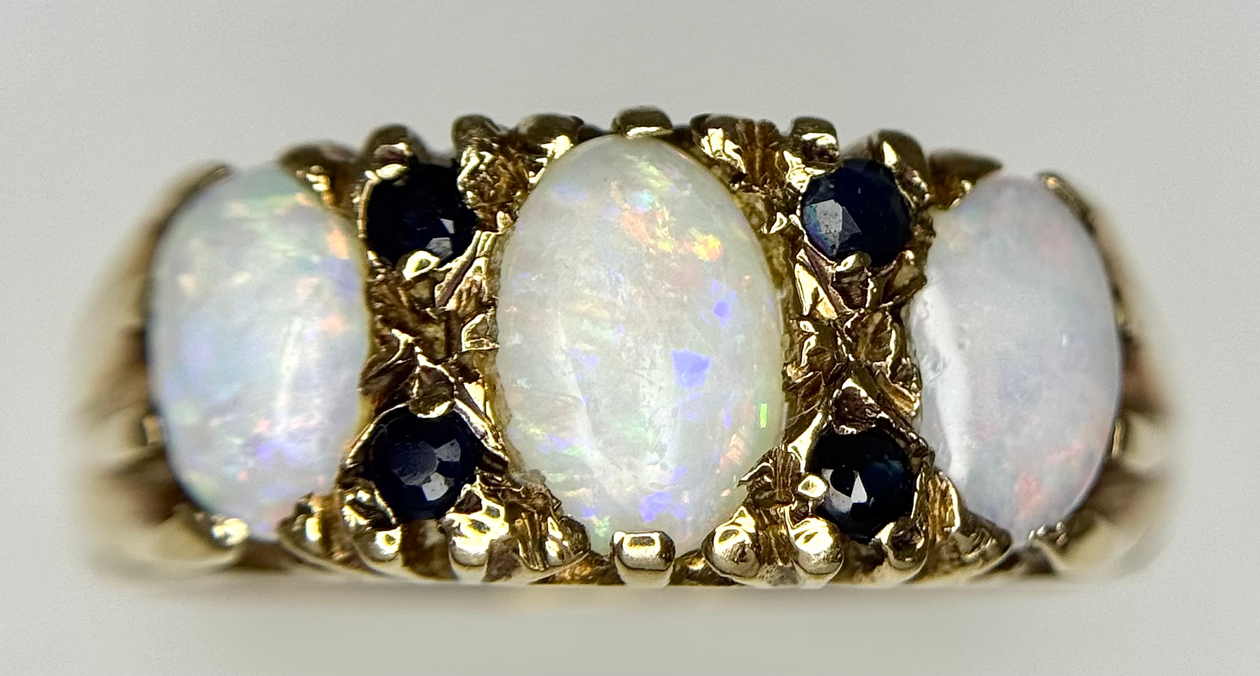 A 9K Yellow Gold Opal and Blue Stone Ring. Size O 1/2 - P. 3.1g total weight. Ref: 1/41156