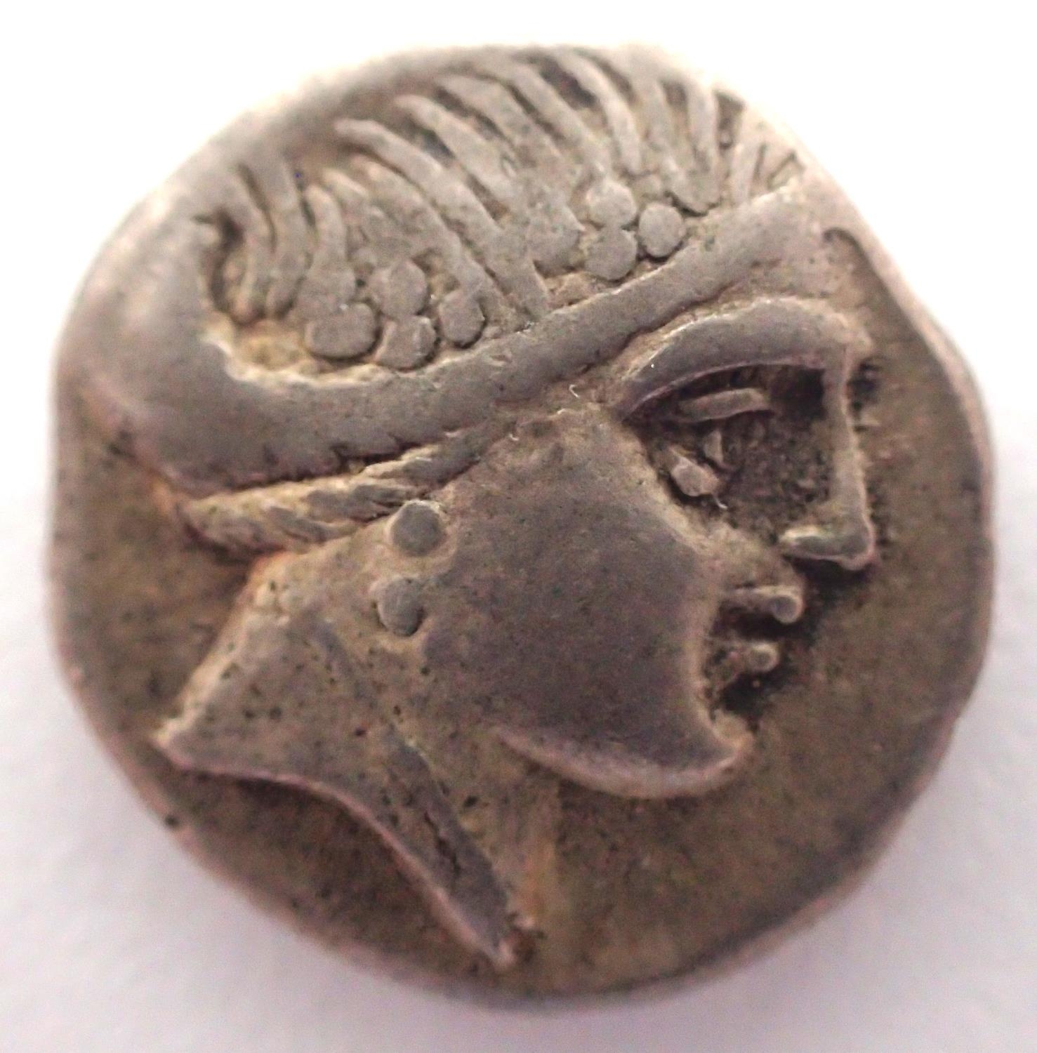 400BC Ancient Greek Silver Obol - Nymph on prow of boat. P&P Group 1 (£14+VAT for the first lot and £1+VAT for subsequent lots)