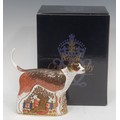 A Royal Crown Derby paperweight, Foxhound, gold stopper, 16cm, printed marks in red, boxed