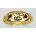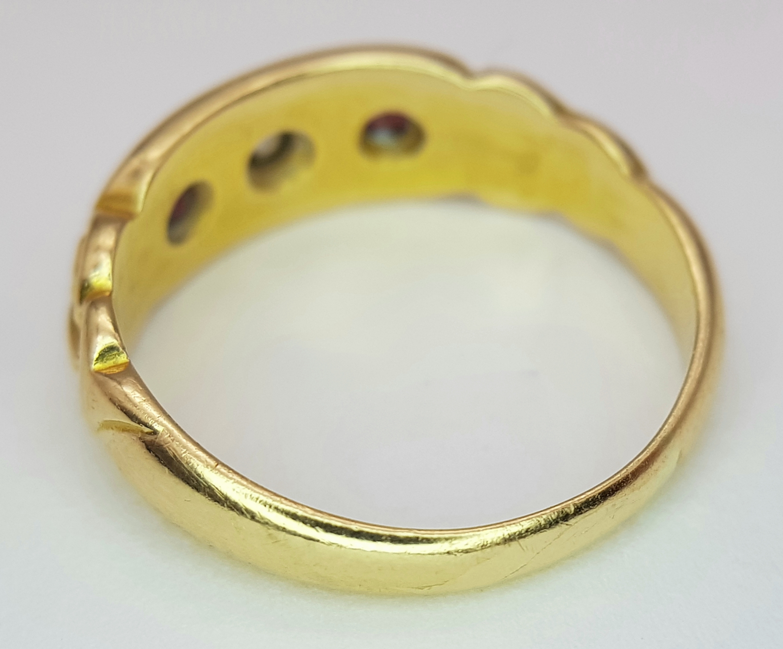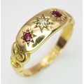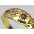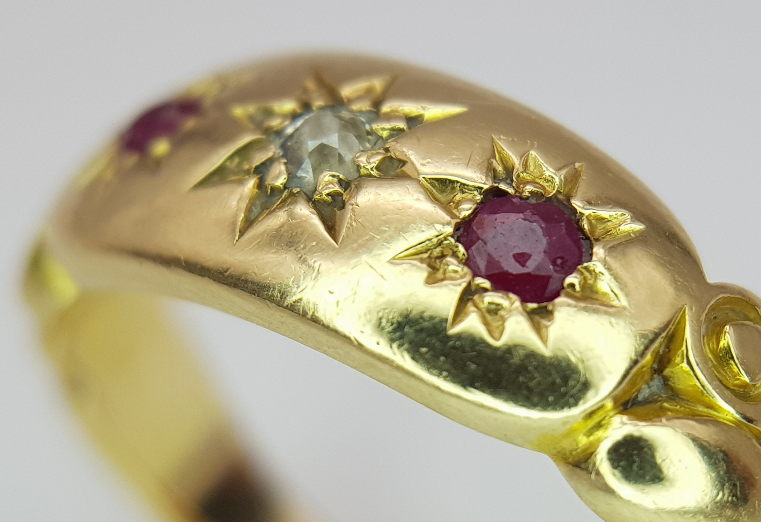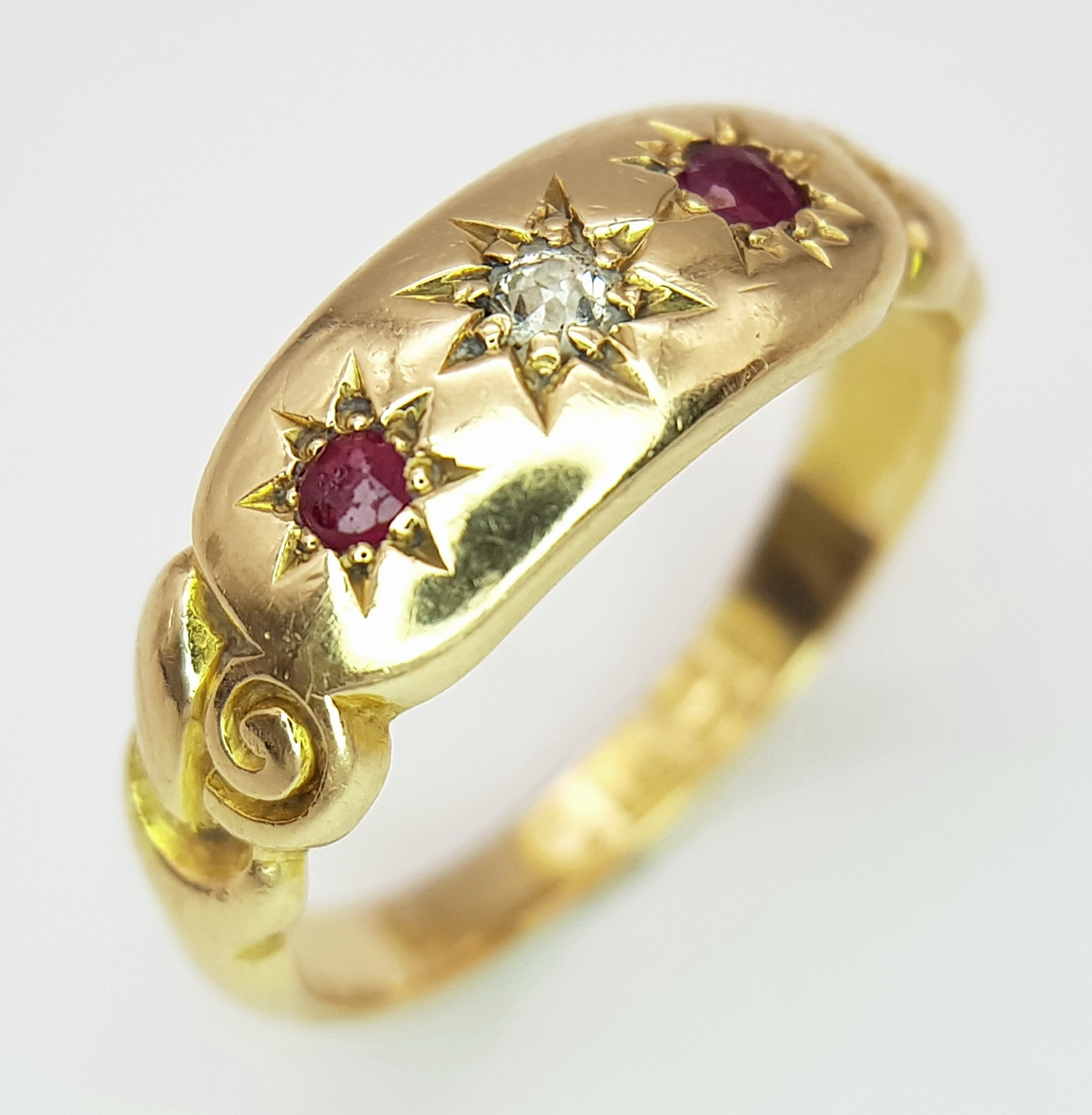 AN 18K YELLOW GOLD ANTIQUE DIAMOND & RUBY RING 4.1G TOTAL WEIGHT, SIZE L HALLMARKED BIRMINGHAM 1900. REF: SC 3107