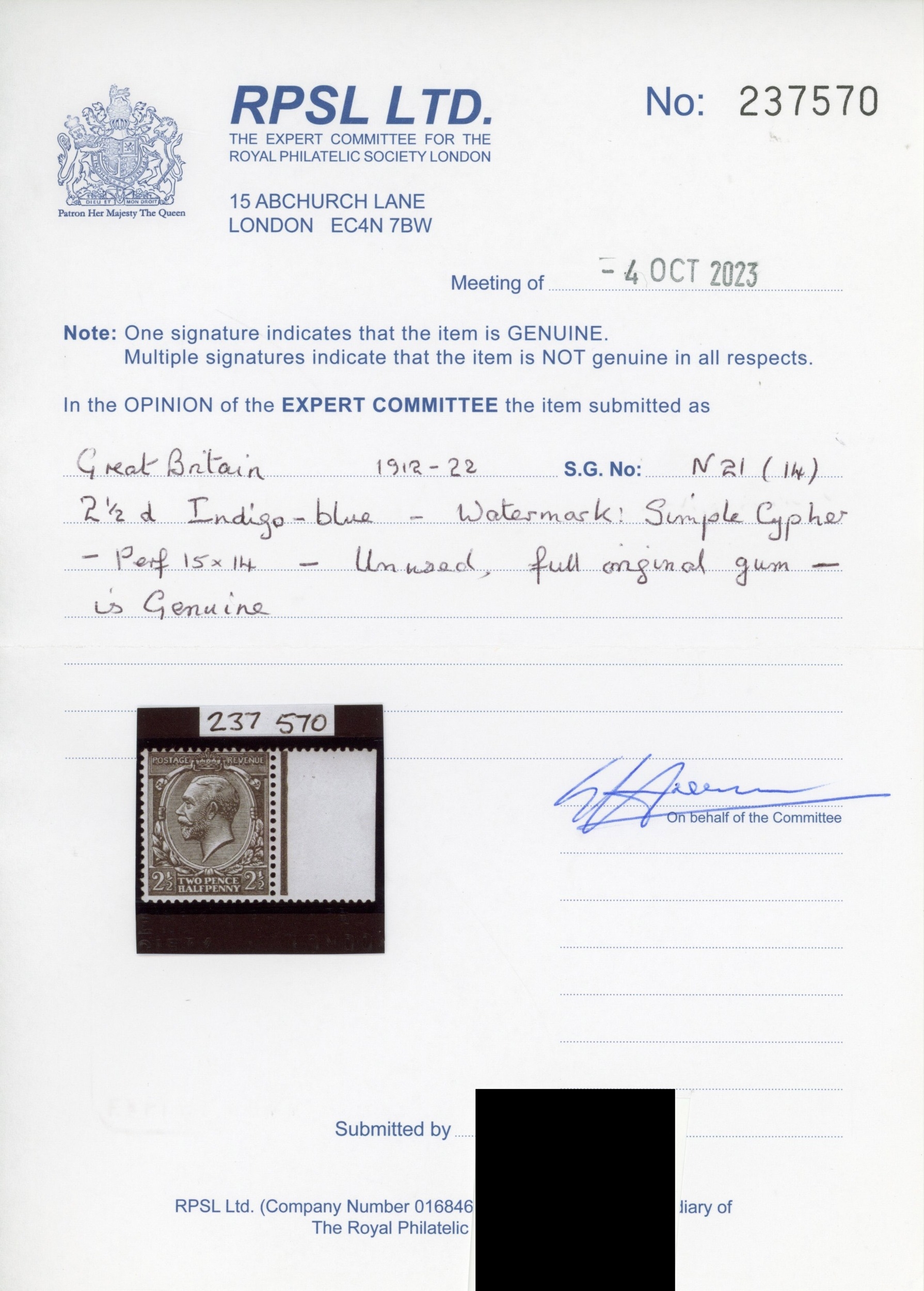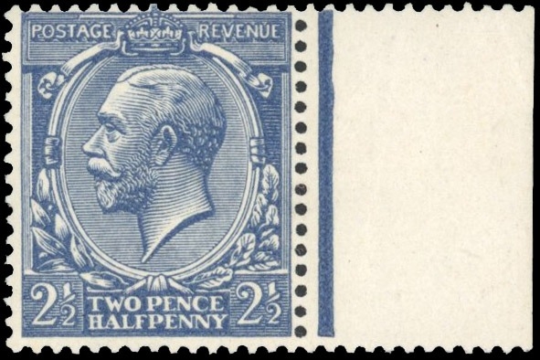 GB: 1912-24 Royal Cypher 2��d indigo-blue, mint unmounted og right marginal exa