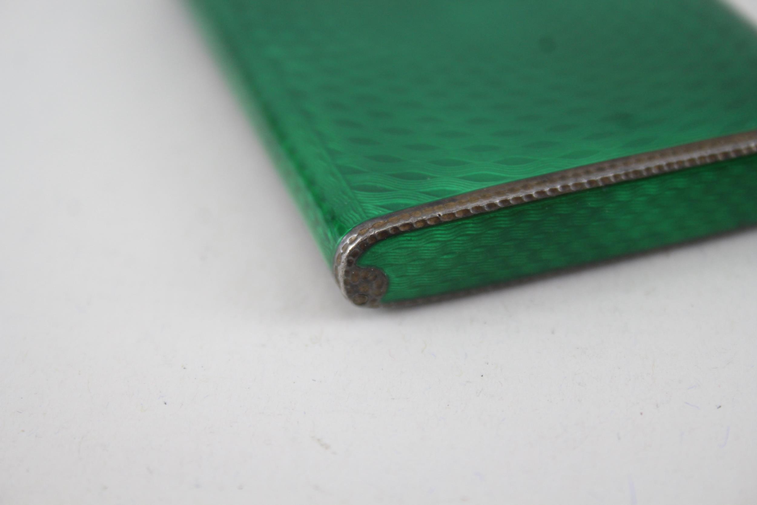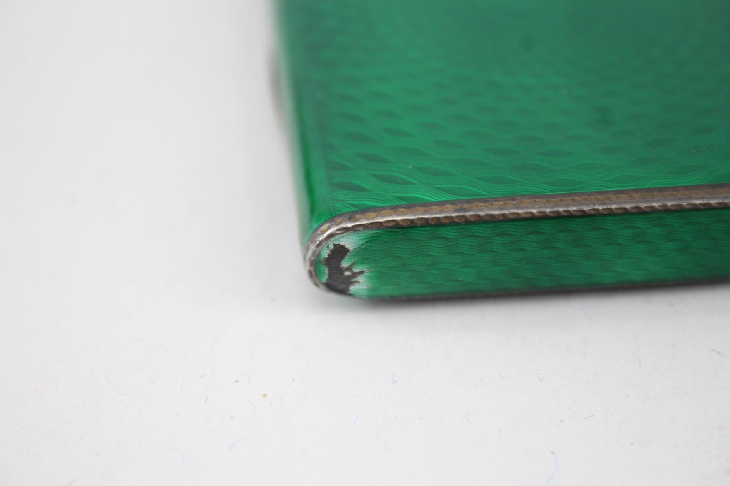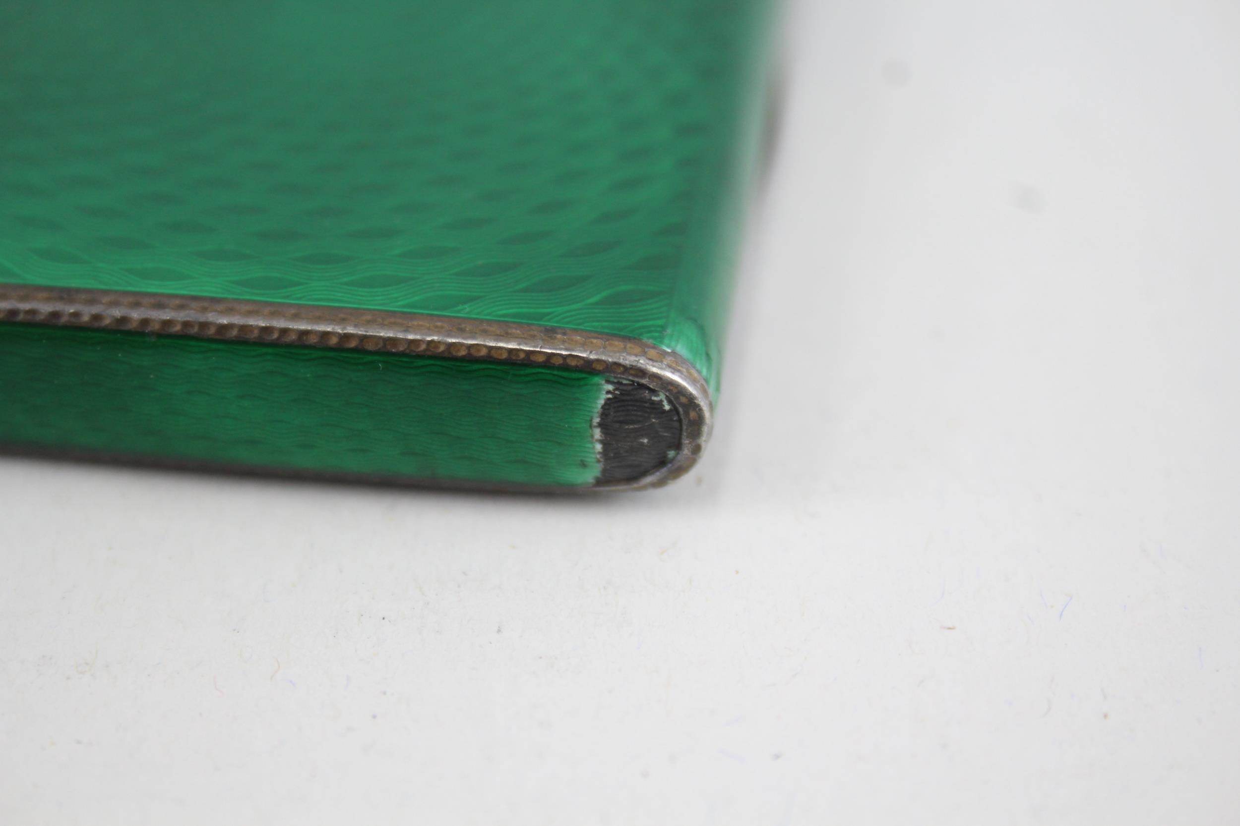Antique Vintage .925 Sterling Silver Green Guilloche Enamel Cigarette Case 110g