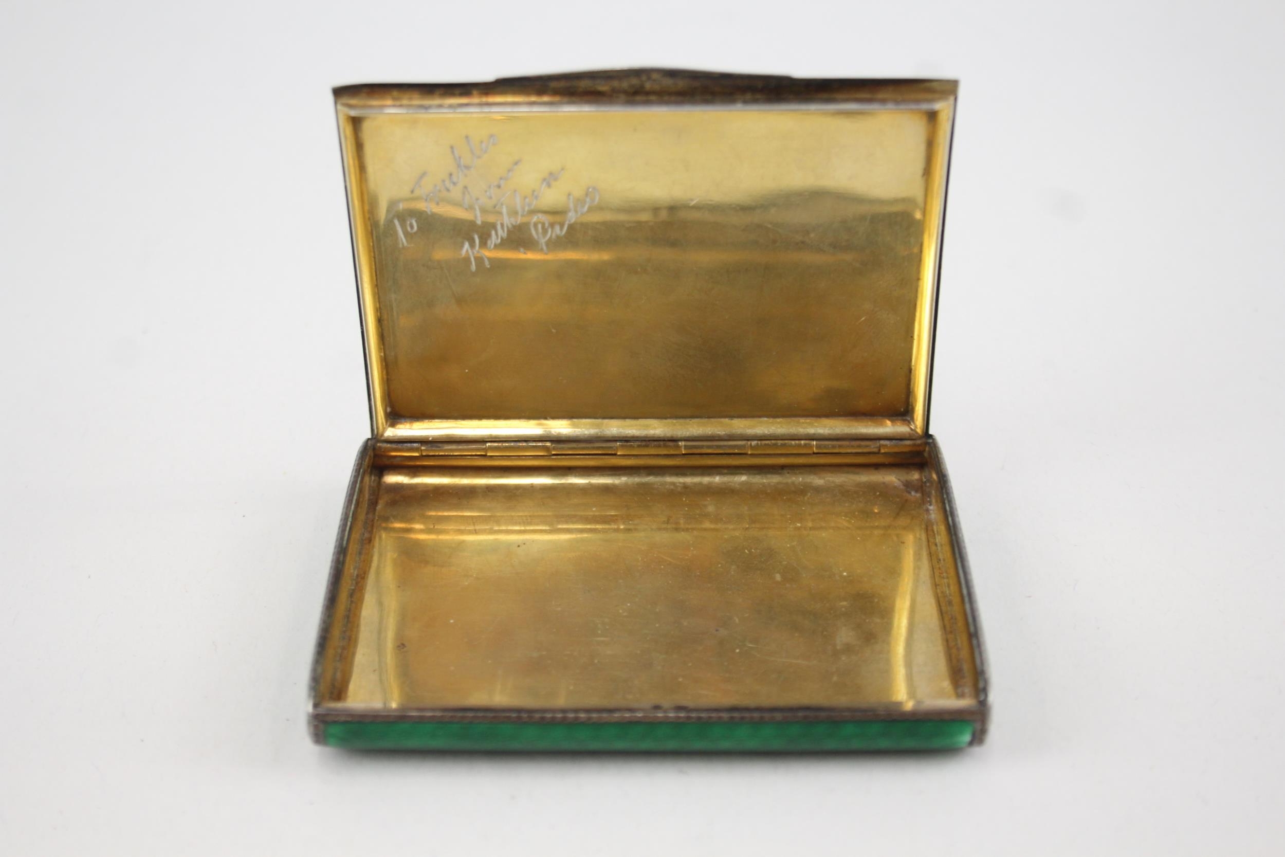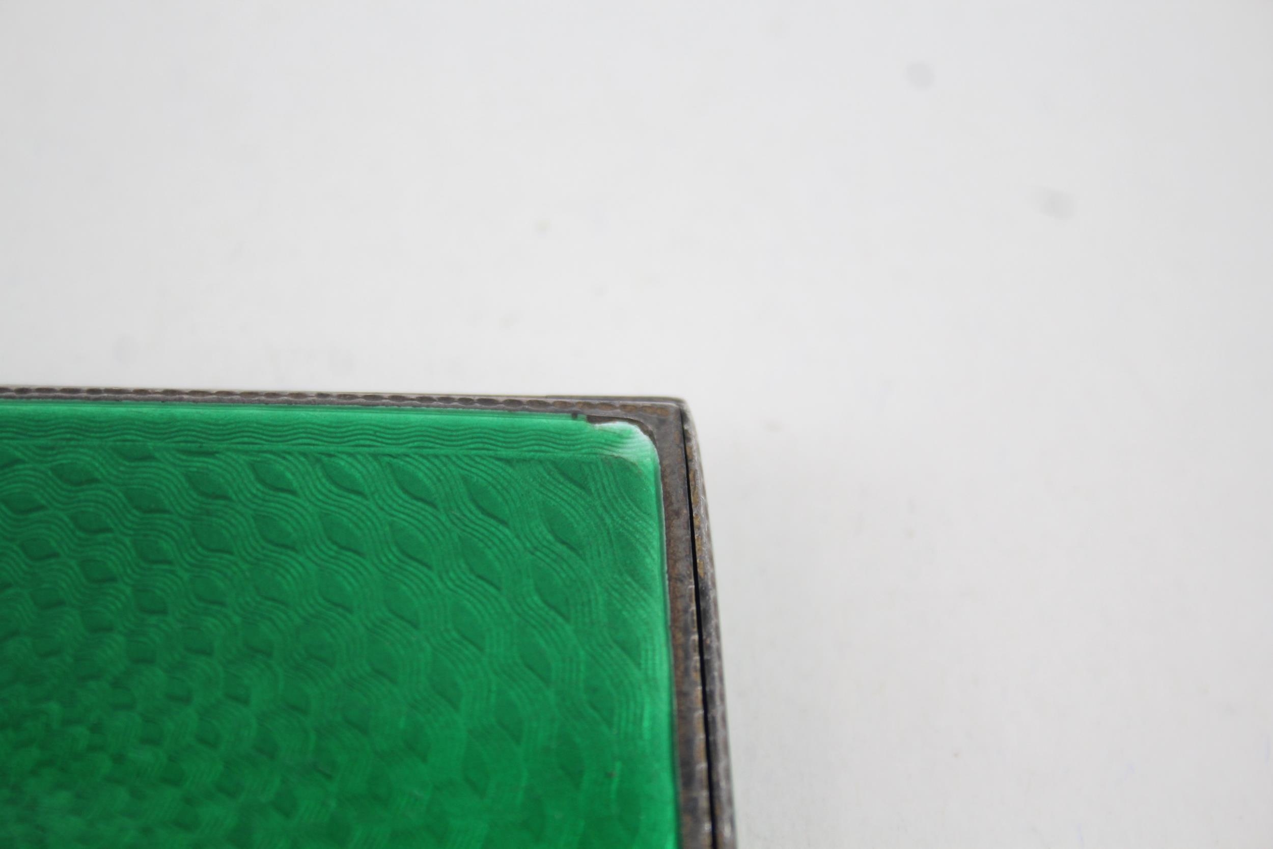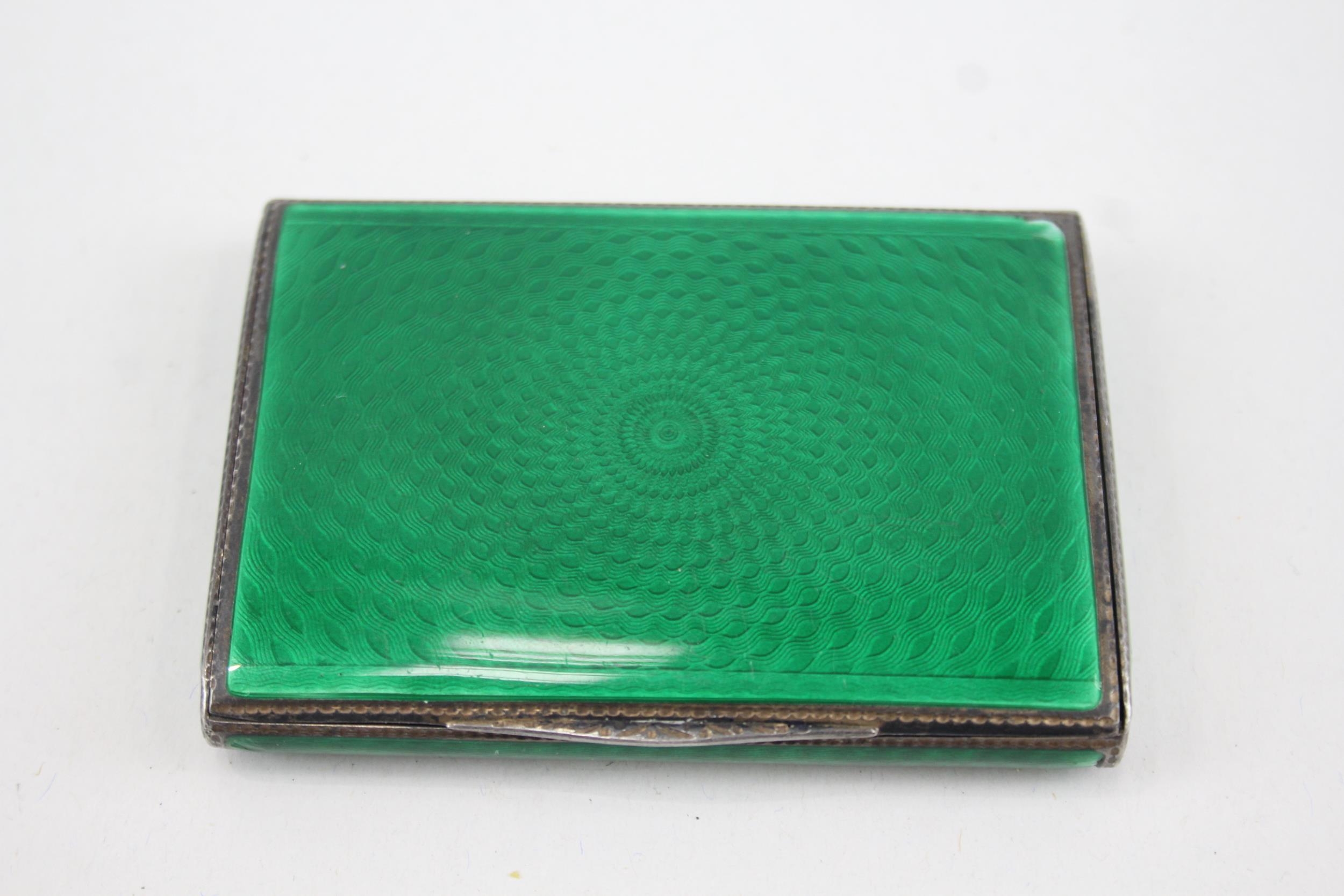 Antique Vintage .925 Sterling Silver Green Guilloche Enamel Cigarette Case 110g