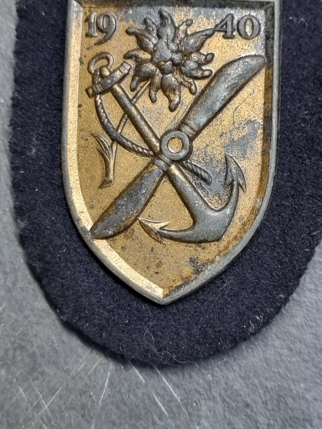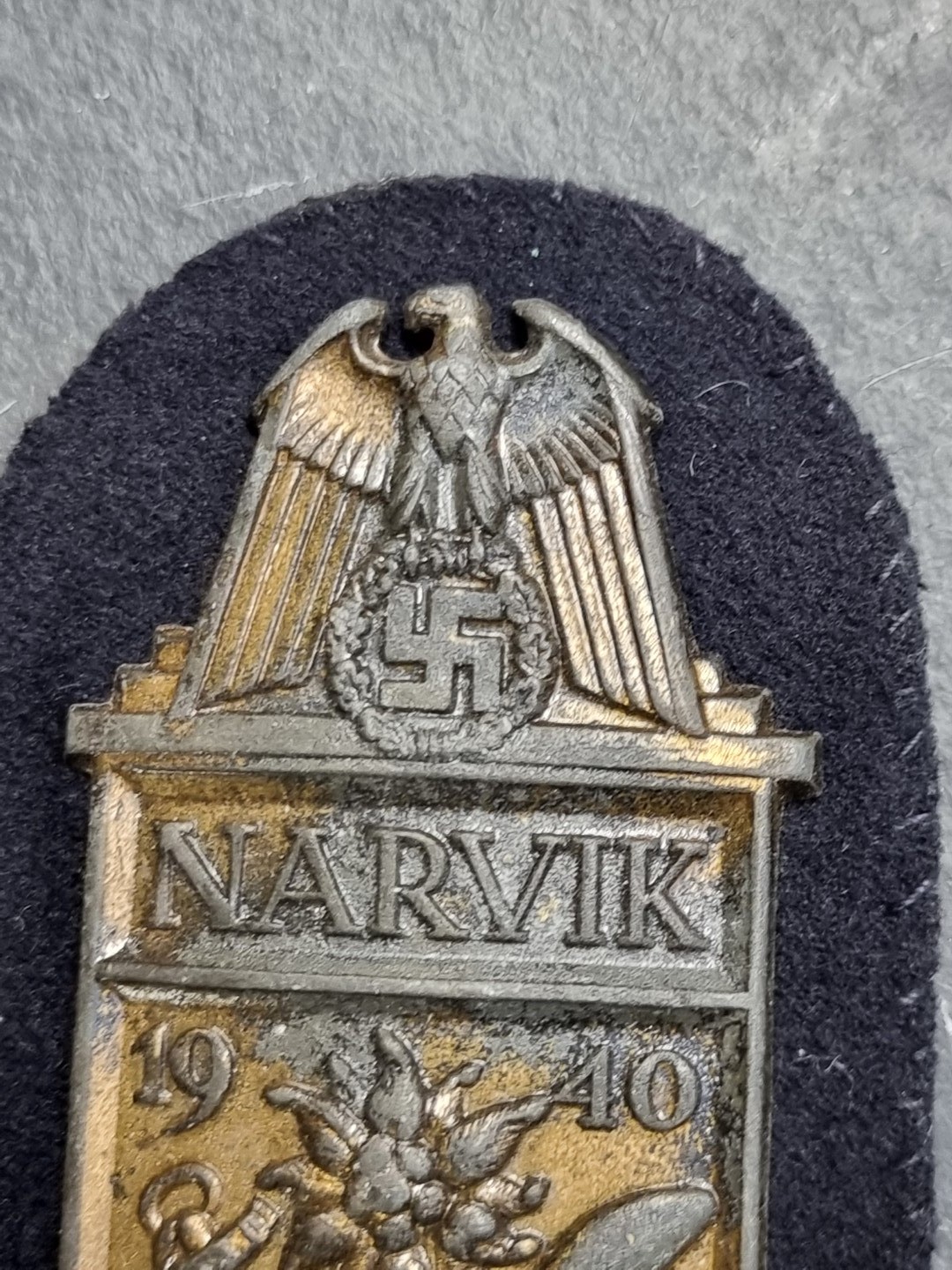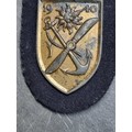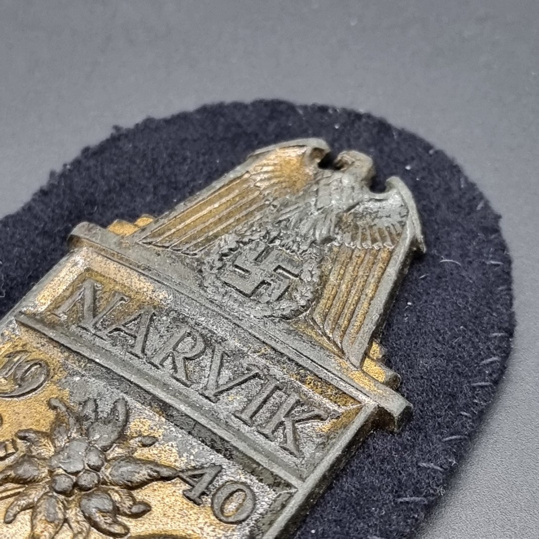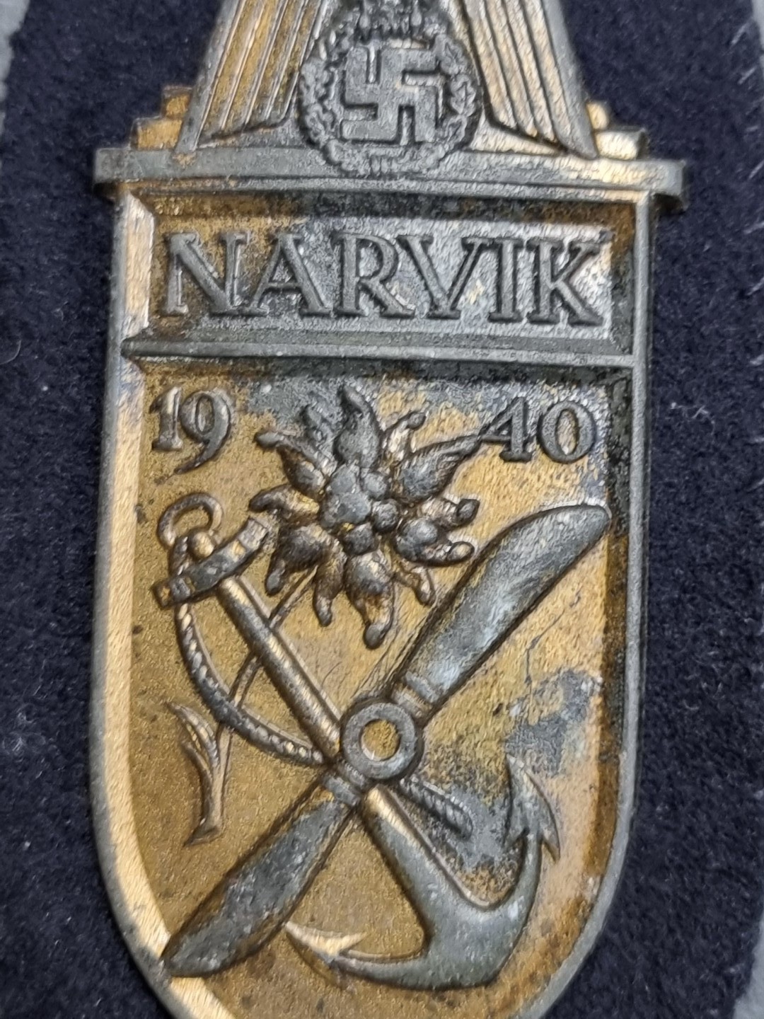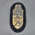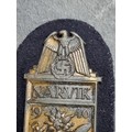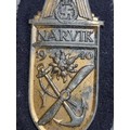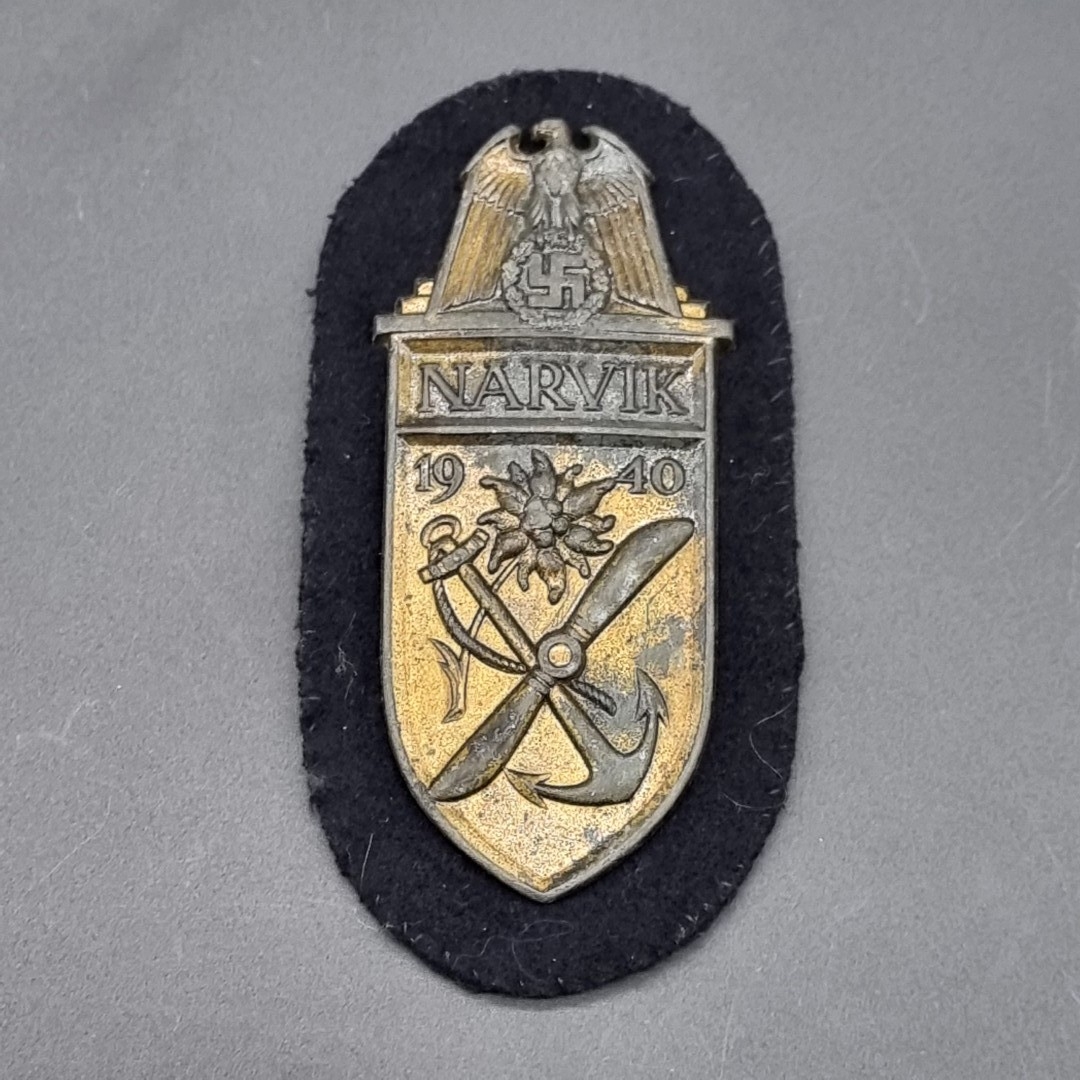 A German WWII Kriegsmarine Narvik Campaign shield, on cloth, no maker's mark, 9cm.