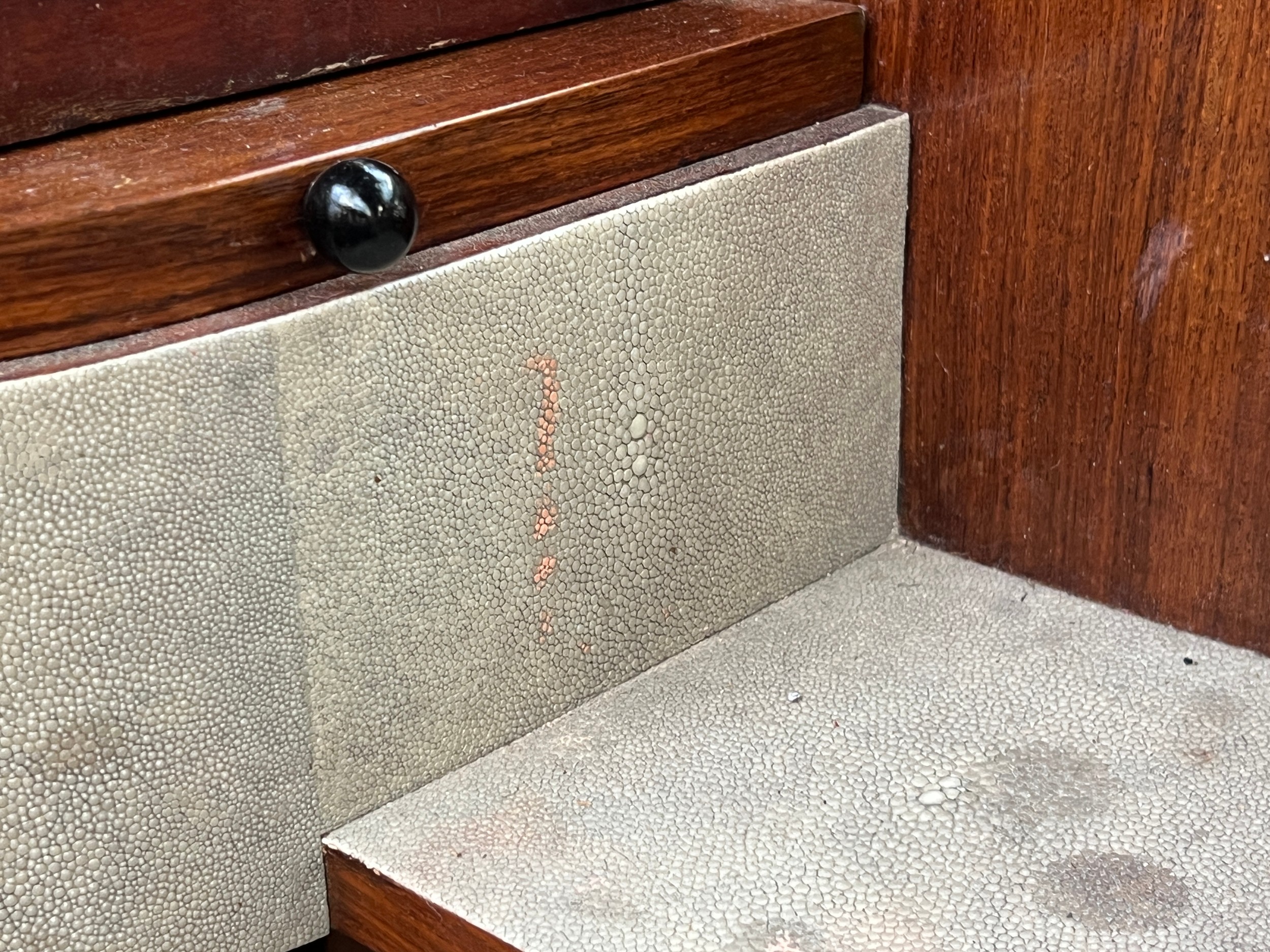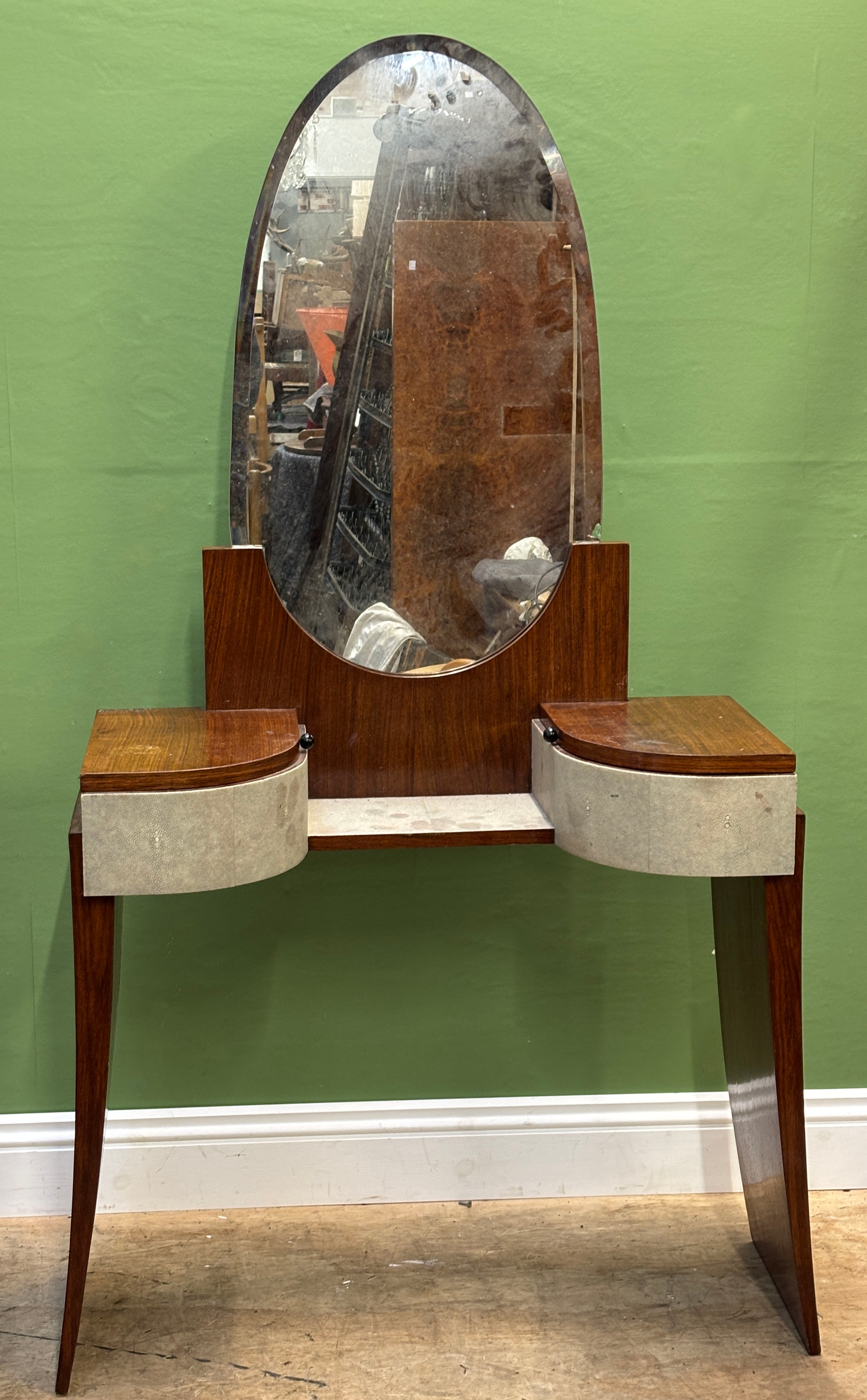 An Art Deco shagreen dressing table with shaped bevelled mirror, 86cmW