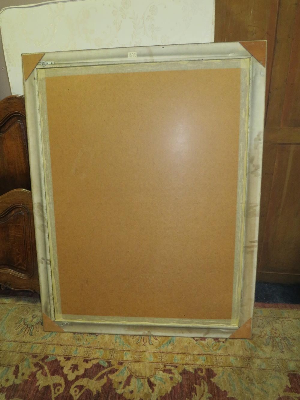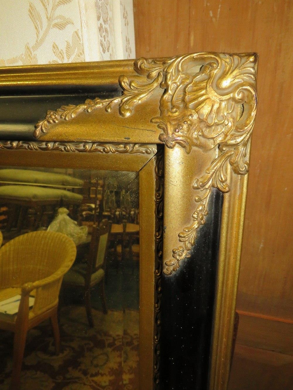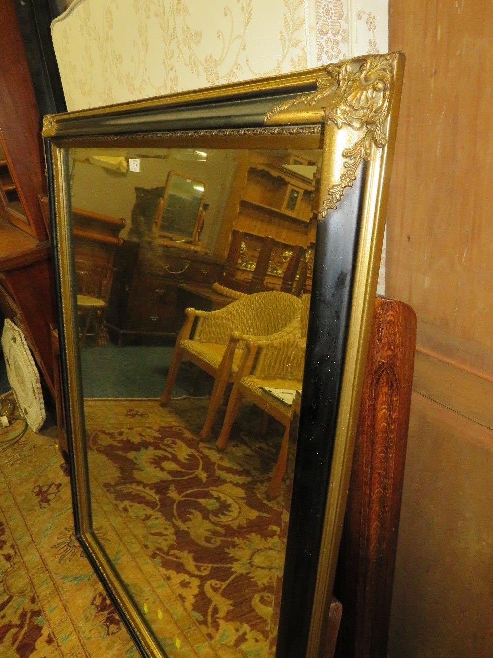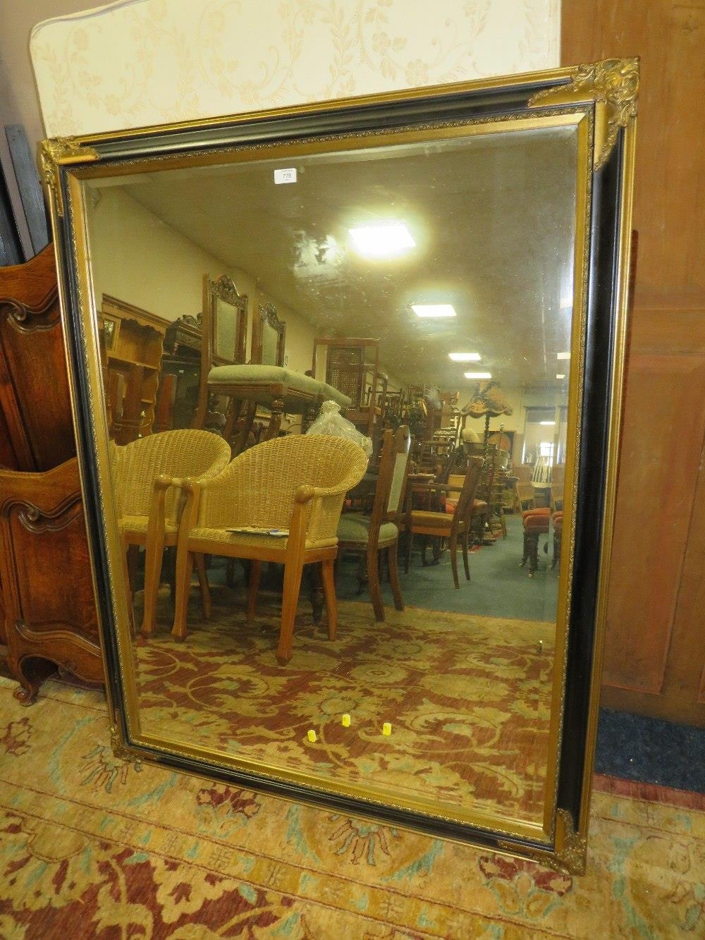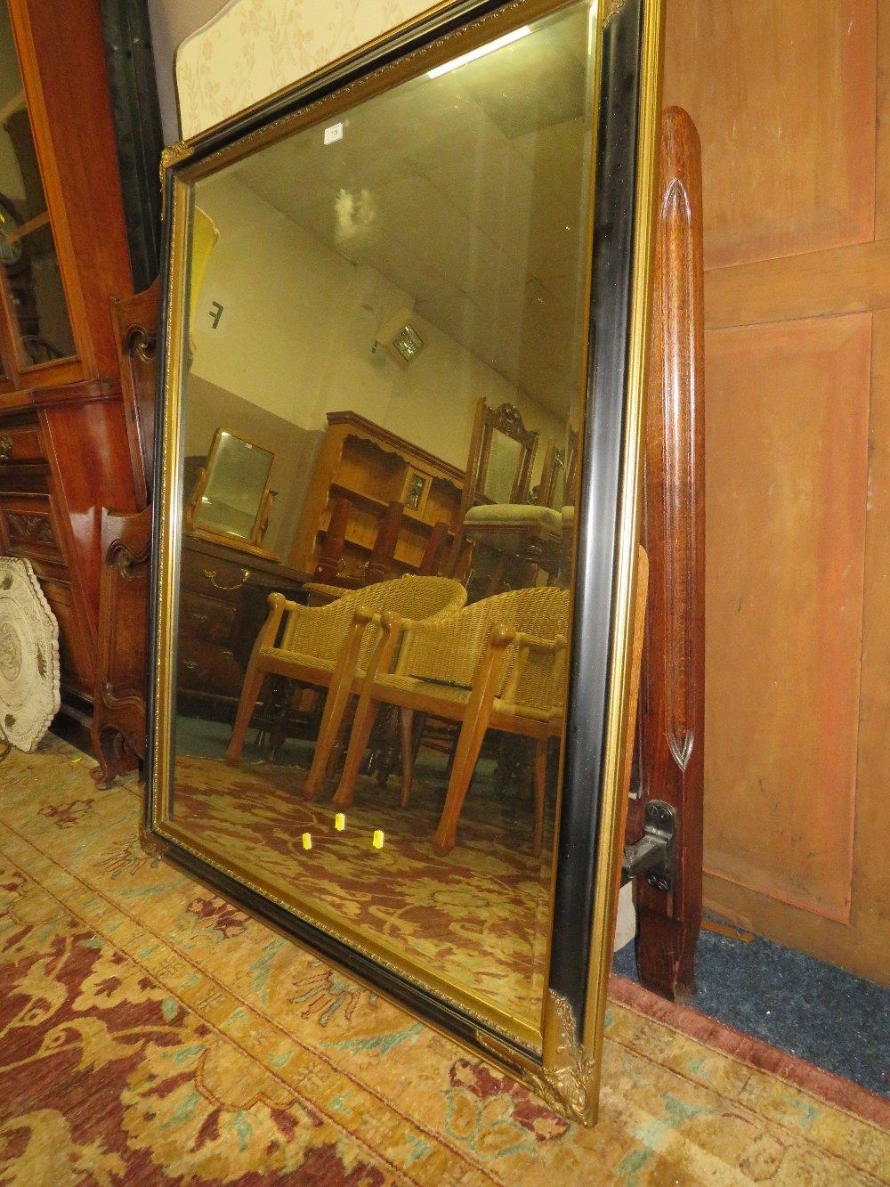 A LARGE MODERN BLACK AND GILT RECTANGULAR WALL MIRROR 138 X 106 CM