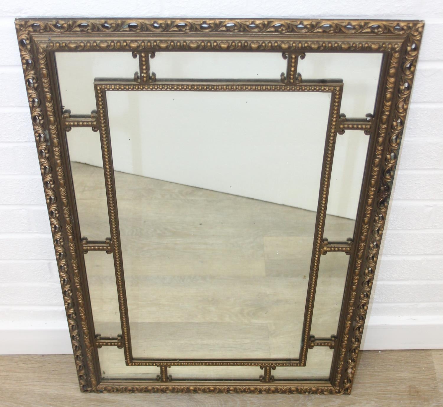 A vintage decorative gilt framed wall mirror, marked "Made in England", 83cm x 53cm
