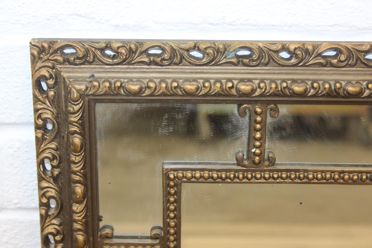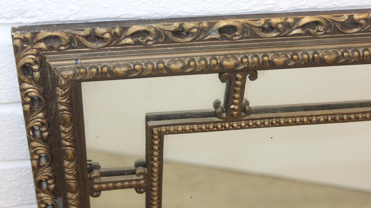 A vintage decorative gilt framed wall mirror, marked "Made i...
