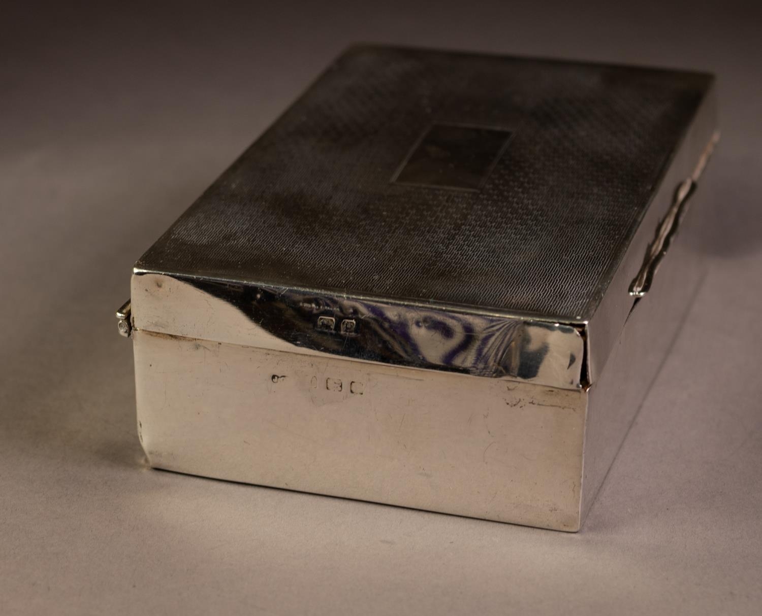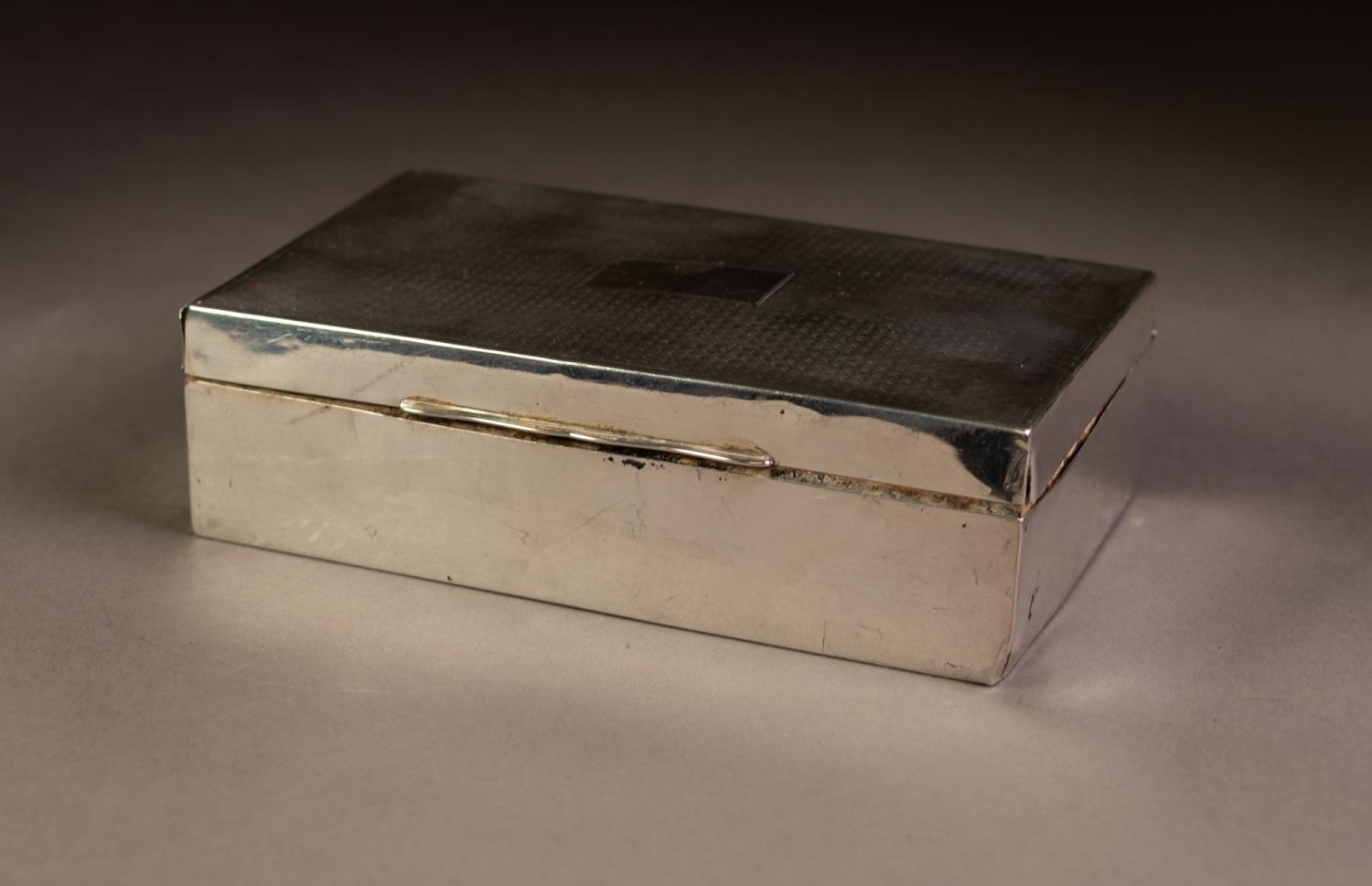 SILVER OBLONG TABLE CIGARETTE BOX, the hinged lid with engine turned decoration, 6in x 3 1/2in x 1 3/4in high (15.2 x 8.8 x 4.4cm), Birmingham 1929, 13 1/3 ozs gross weighted