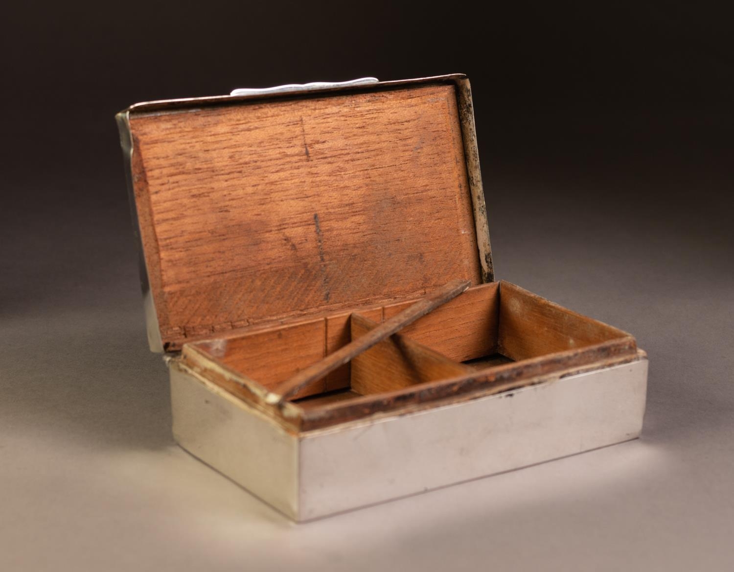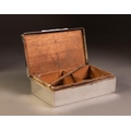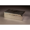 SILVER OBLONG TABLE CIGARETTE BOX, the hinged lid with engin...