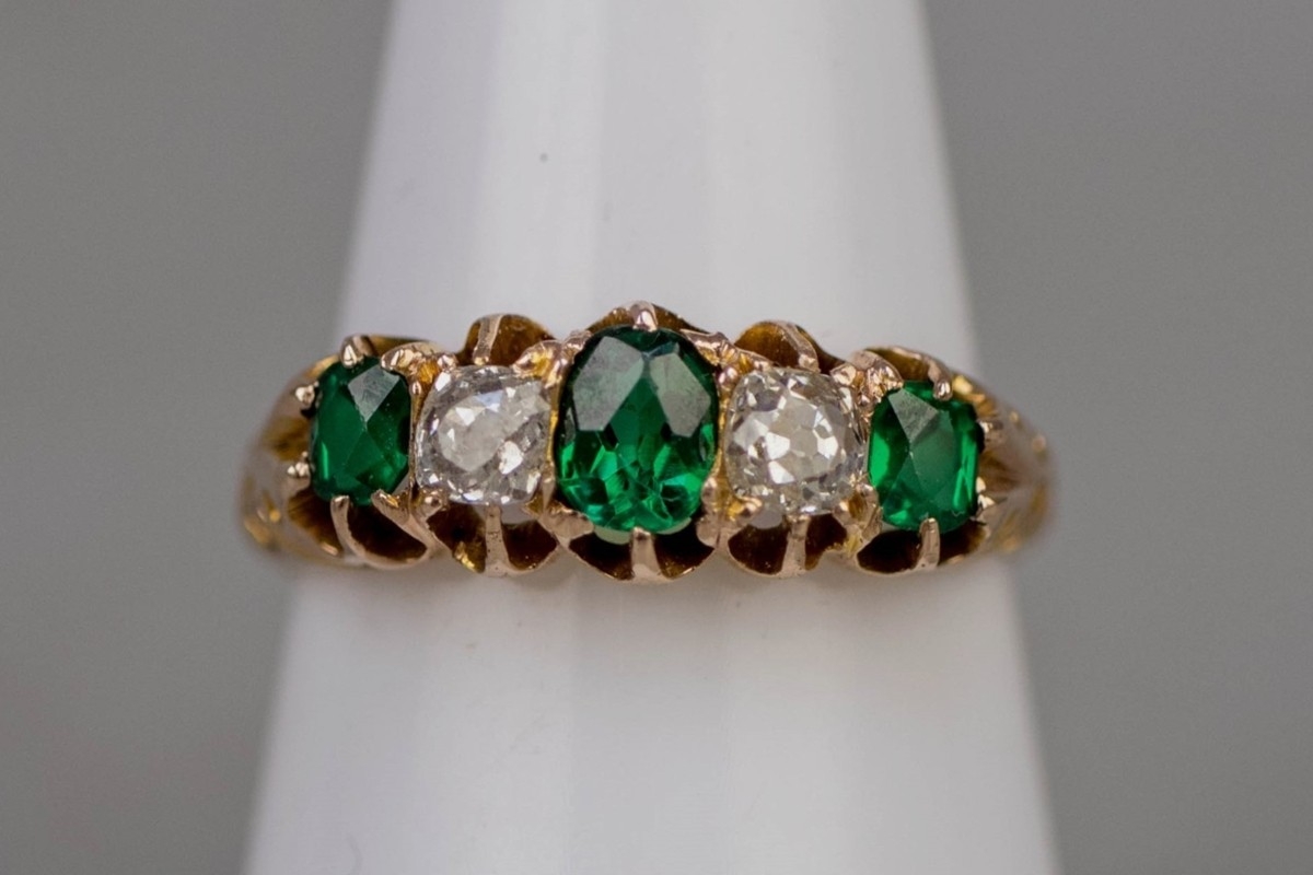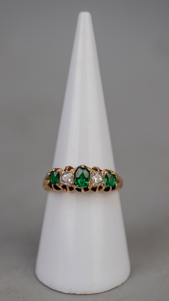 9ct gold ring set with diamond and green tourmaline