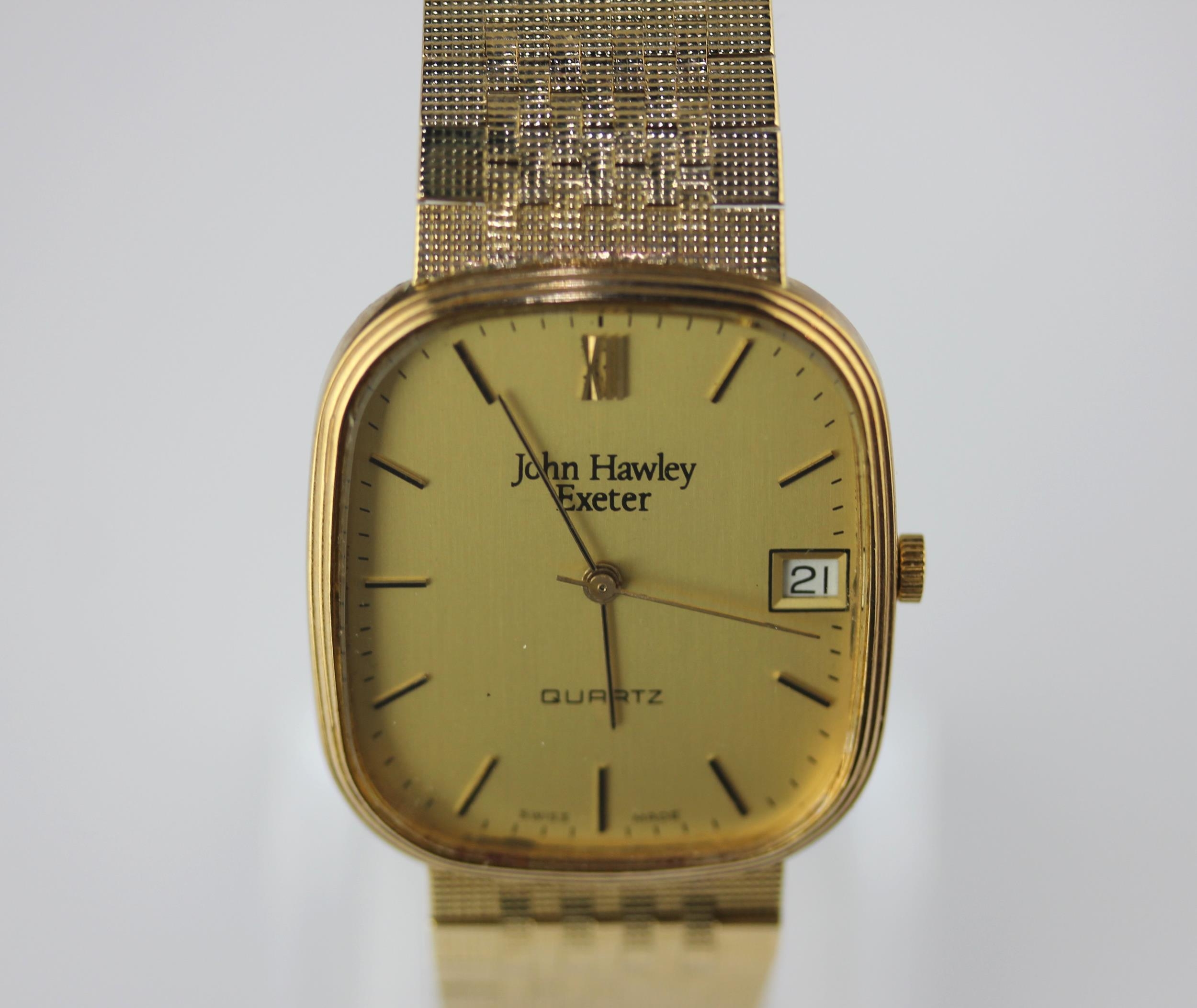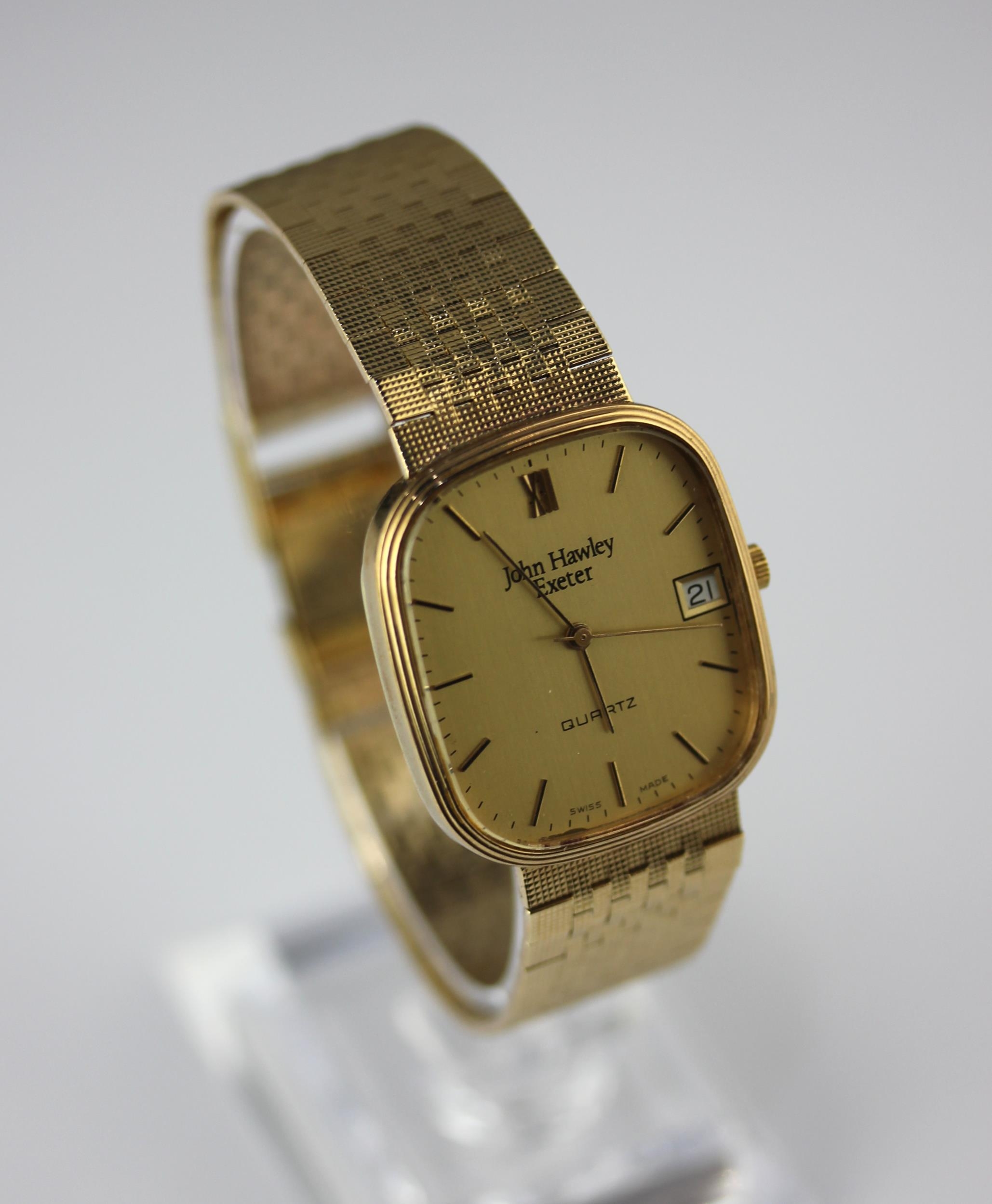 A John Hawley Exeter quartz gold gentleman's bracelet wristwatch the case indistinctly hallmarked, the bracelet clasp hallmarked 9ct, gross weight 49.1g
