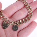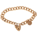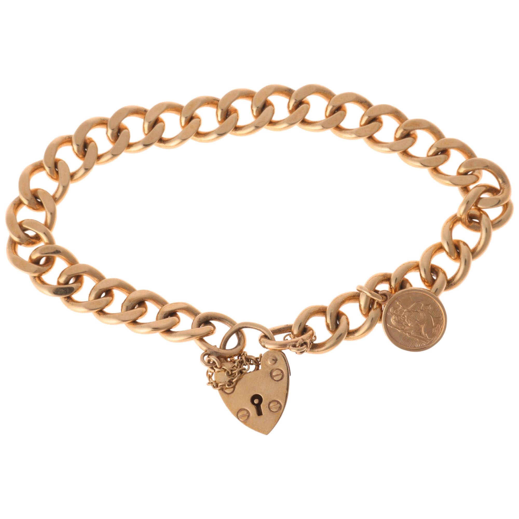 A 9ct gold solid curb link chain bracelet, maker AWF, Birmingham 1996, with 9ct heart padlock clasp and 9ct St Christopher charm, 17cm, 24.2g
