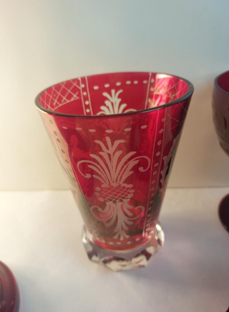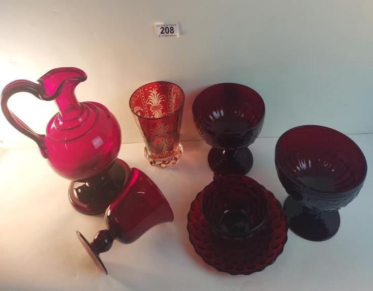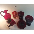 A Rorstrand Sweden ruby jug and 5 ruby / red glasses