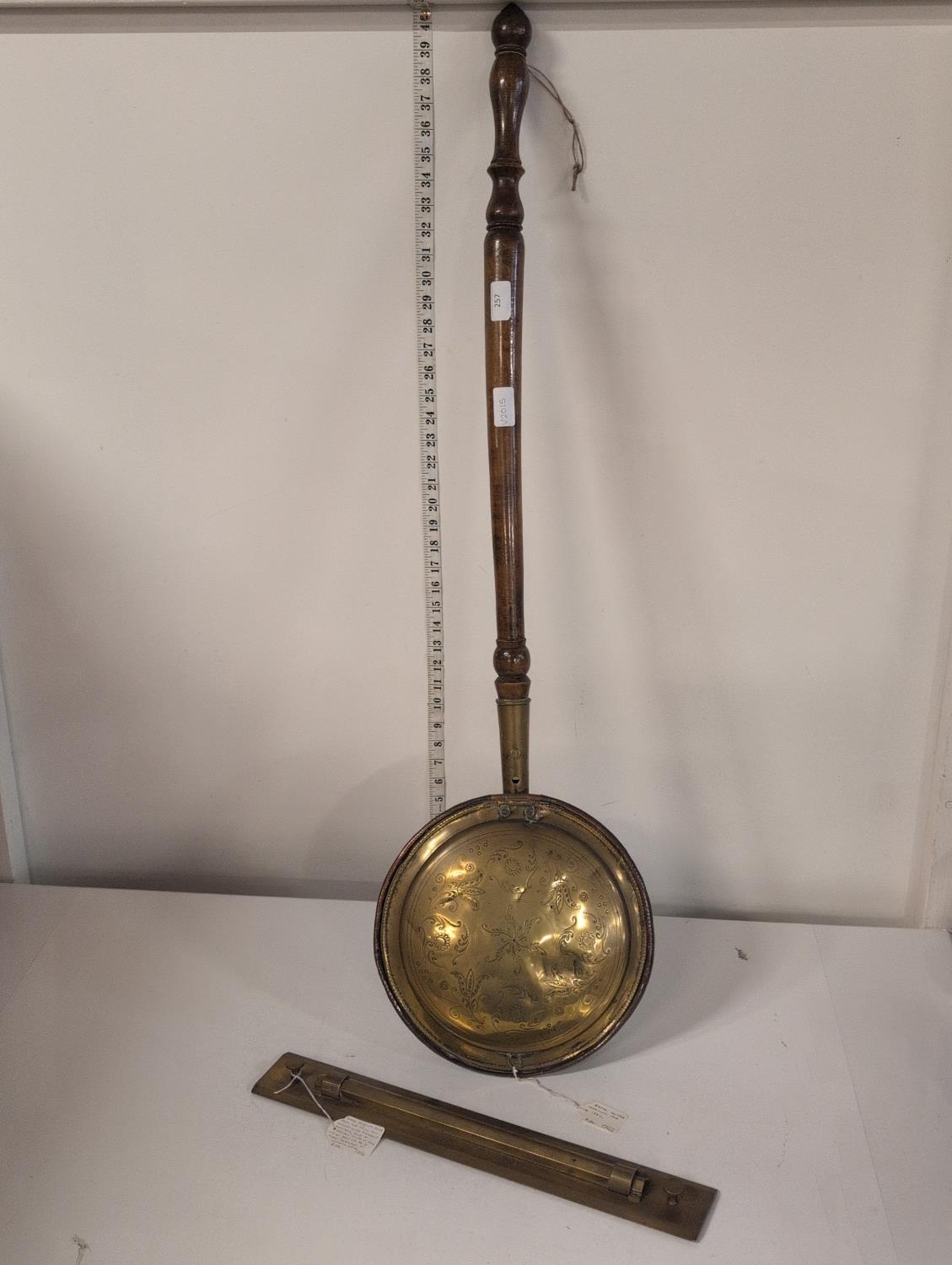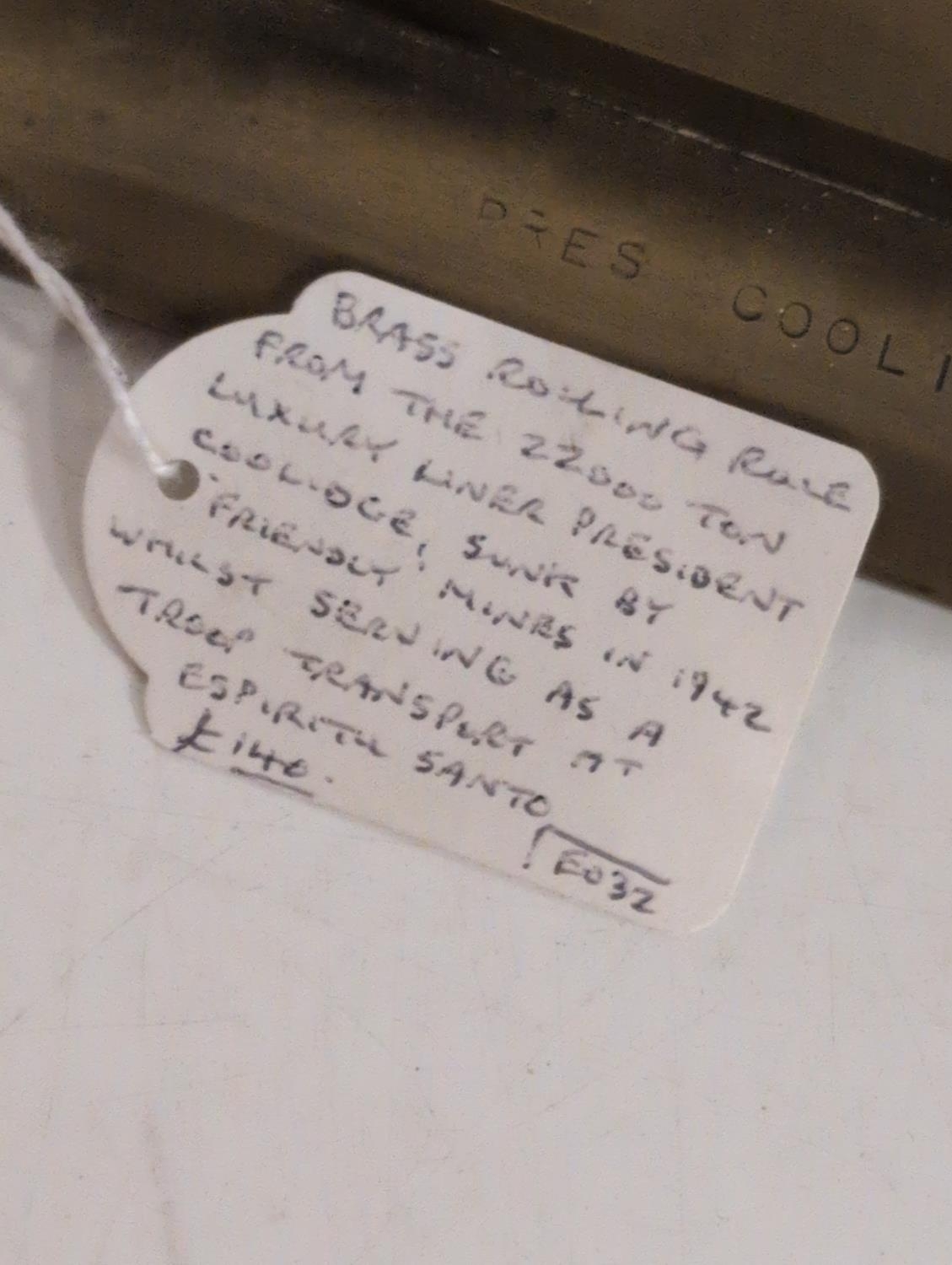 A 19th Century Brass and Copper Bed Warmer and a Brass Rolling Rule from the S.S. President Coolidge, Shipping Unavailable