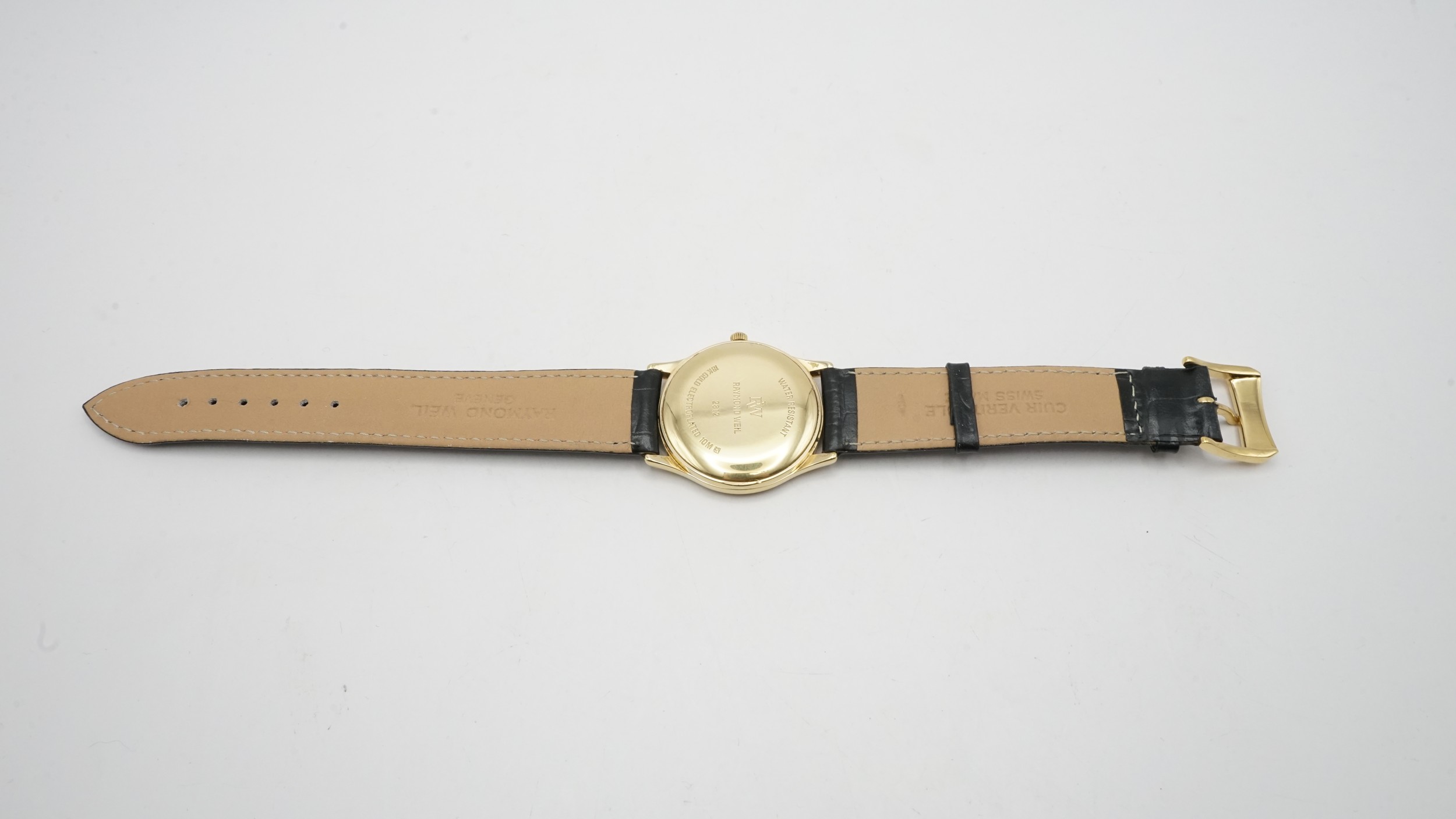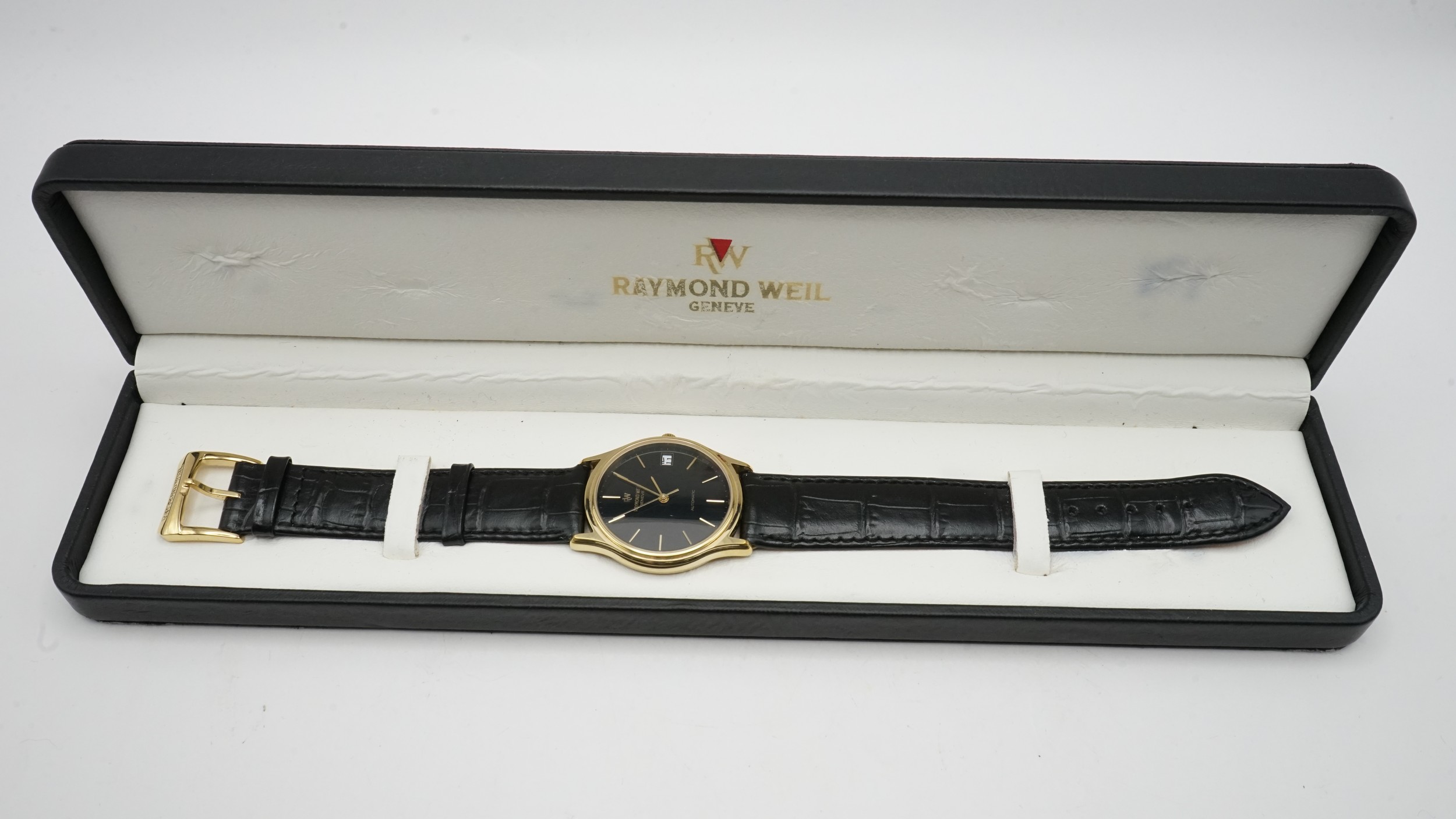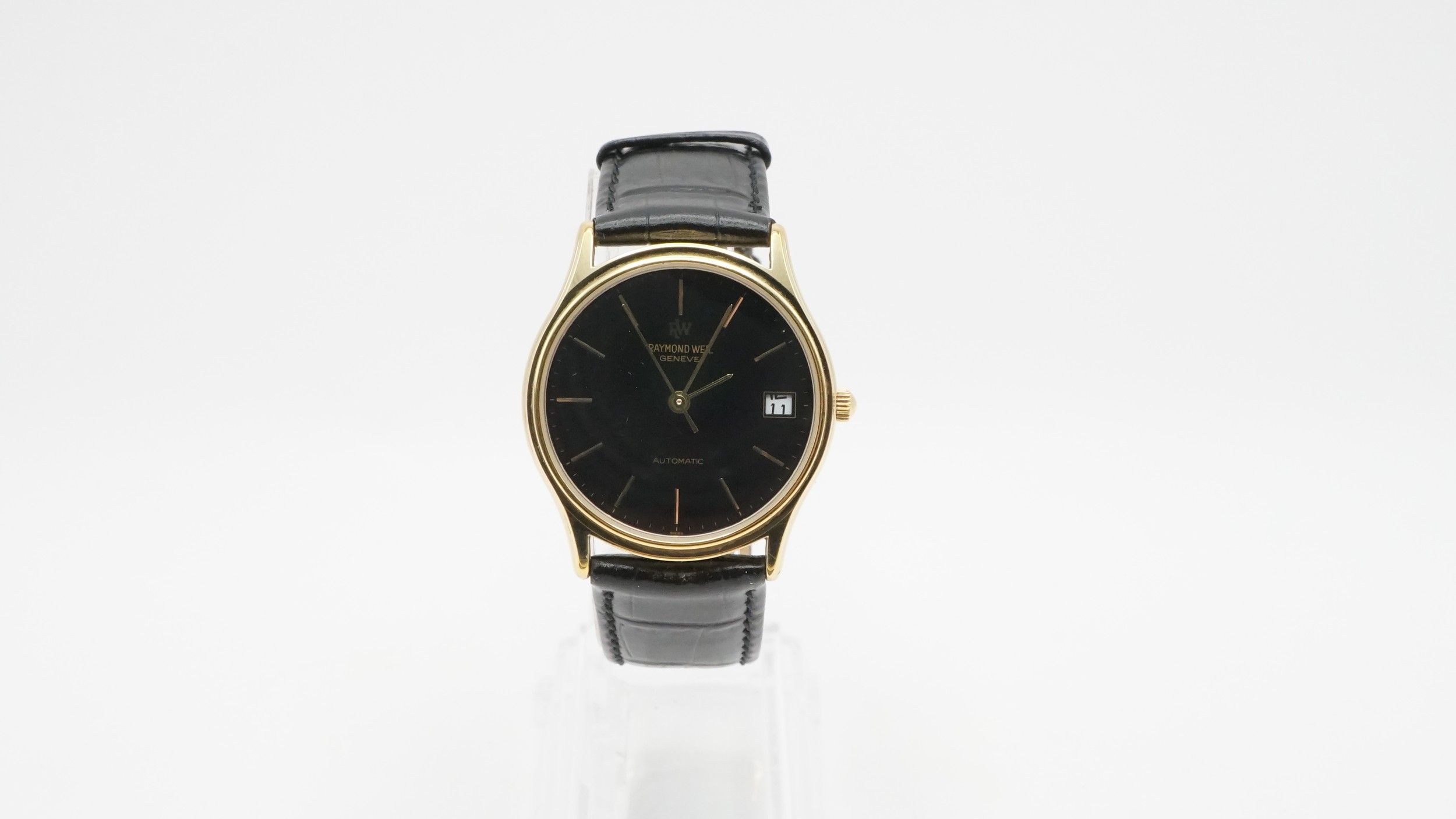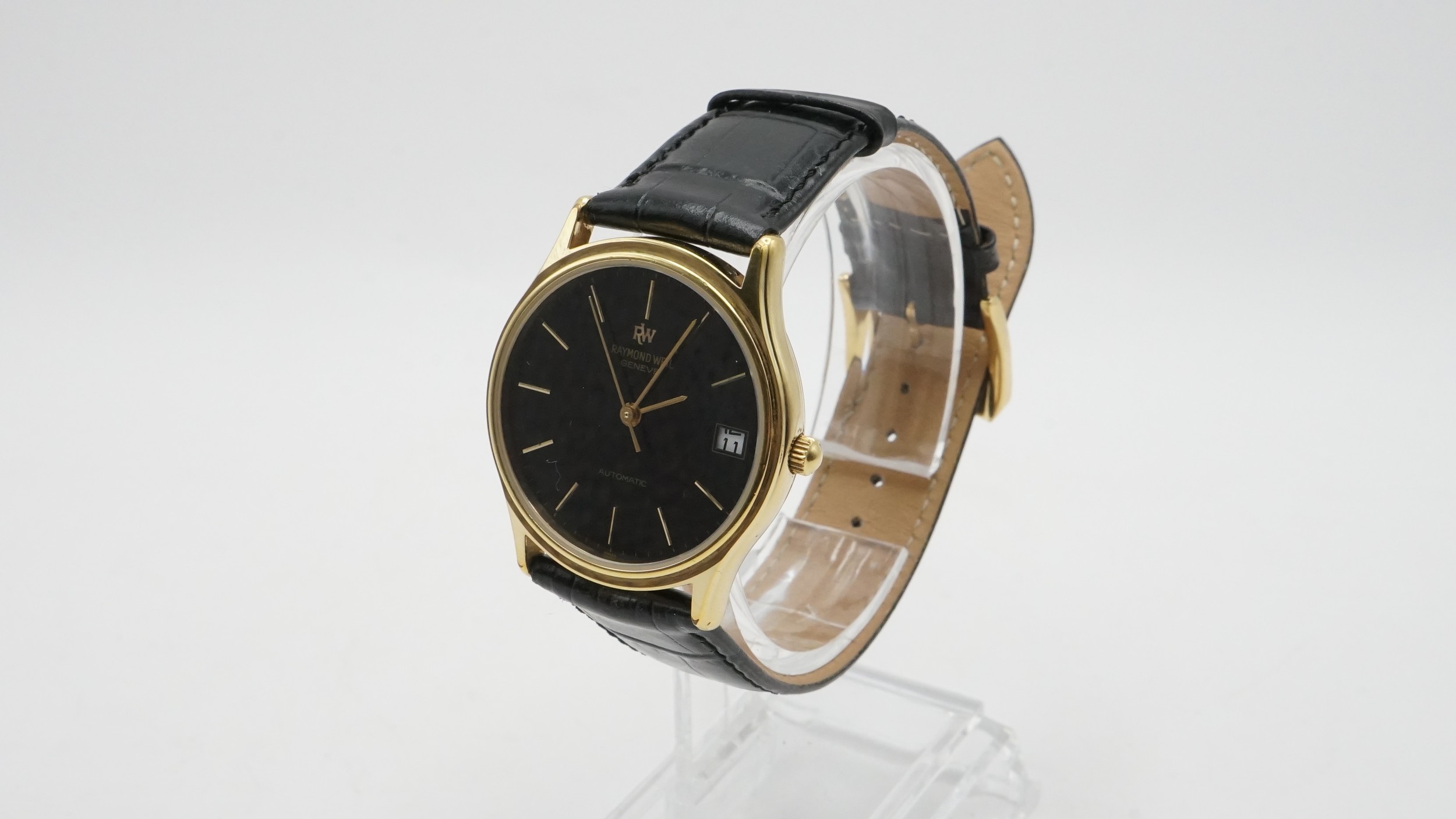 Raymond Weil Genevieve Black Dial Automatic Wristwatch In 18ct Gold Plating Original Leather and Clasp Also Original Box Working
