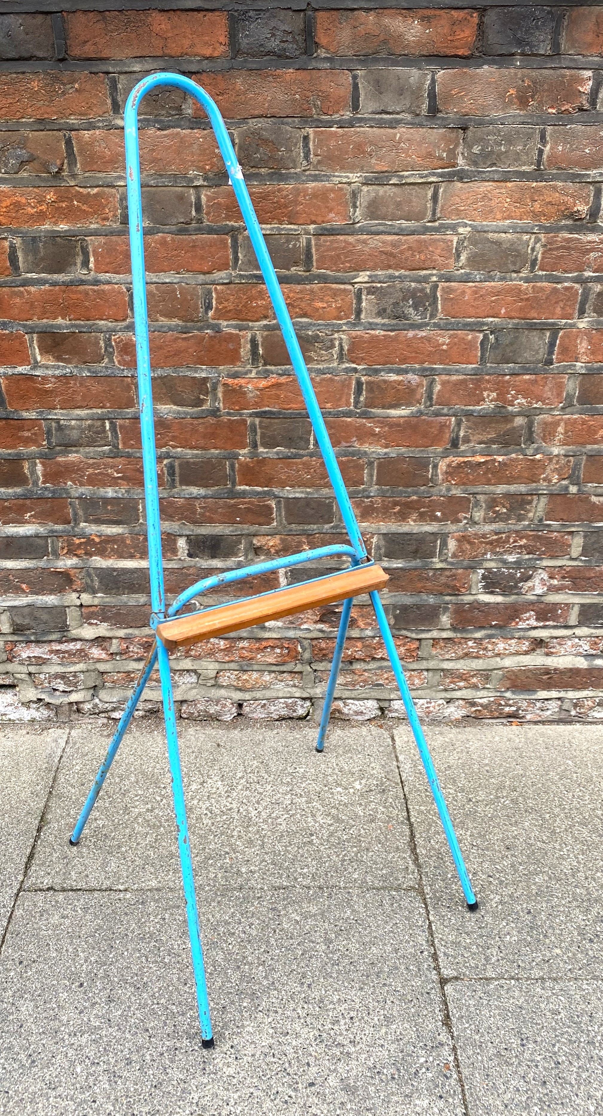 A vintage child's easel, c. 1960s, of painted tubular form with wooden rest, width approximately 45cm