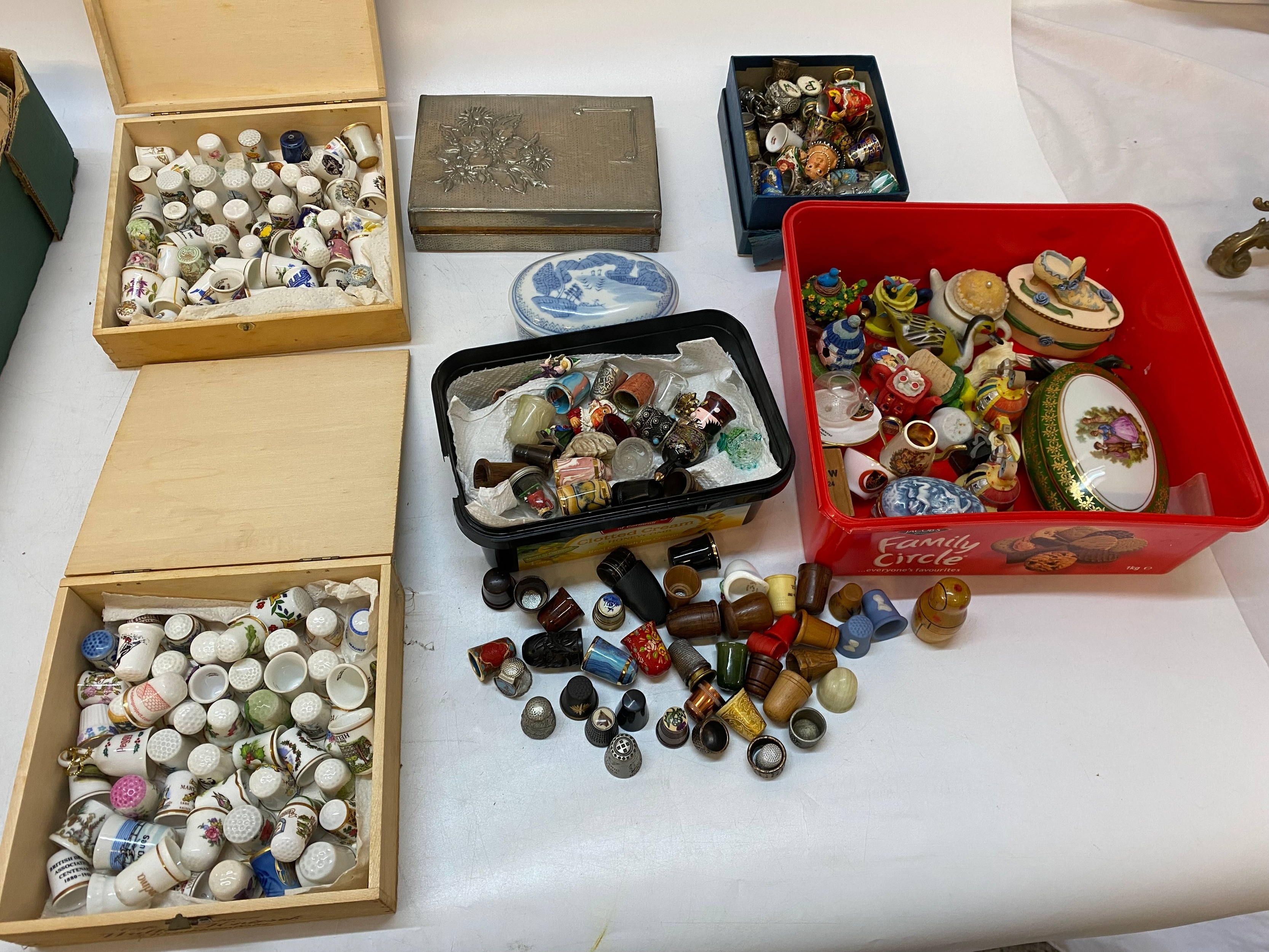 A quantity of silver, silver and enamel, porcelain and other thimbles various