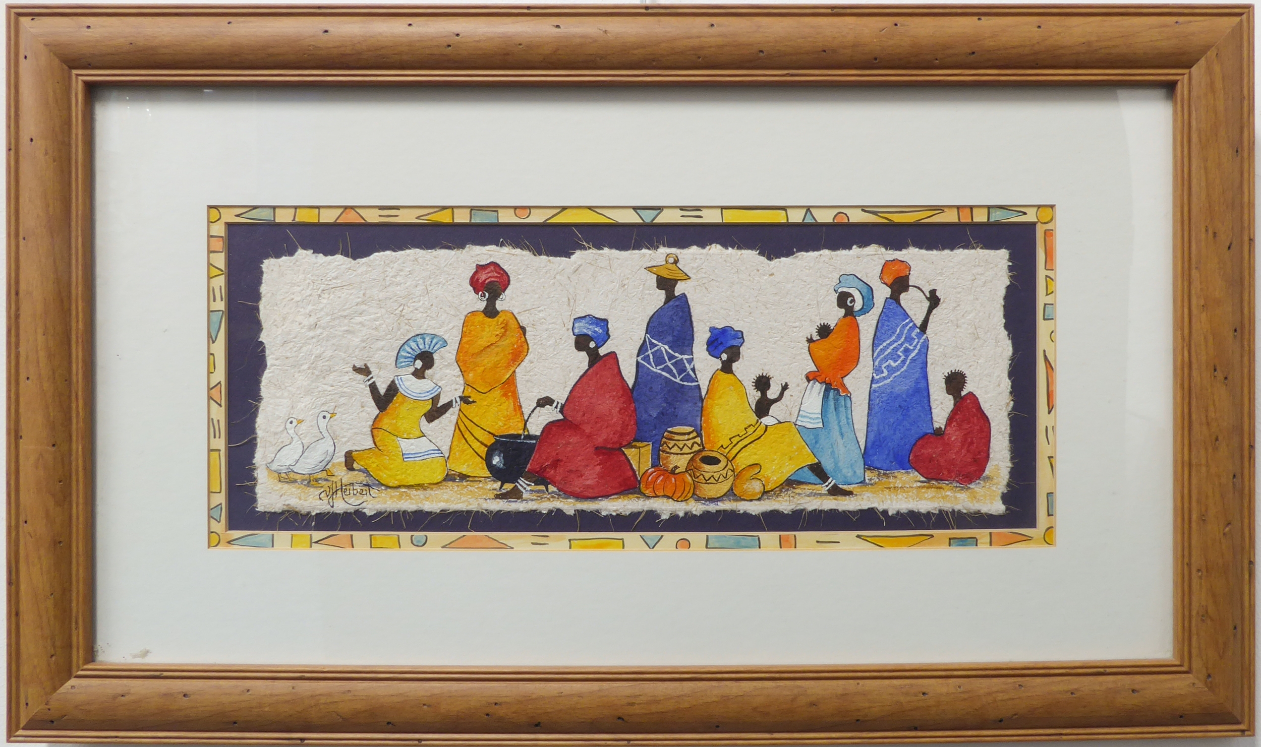 V J HERBERT (20th century African School?) -- Study of tribal women, watercolour on laid paper, signed (5¼ x 15in; 13.5 x 38cm). Good condition