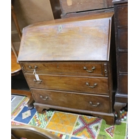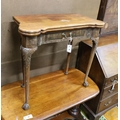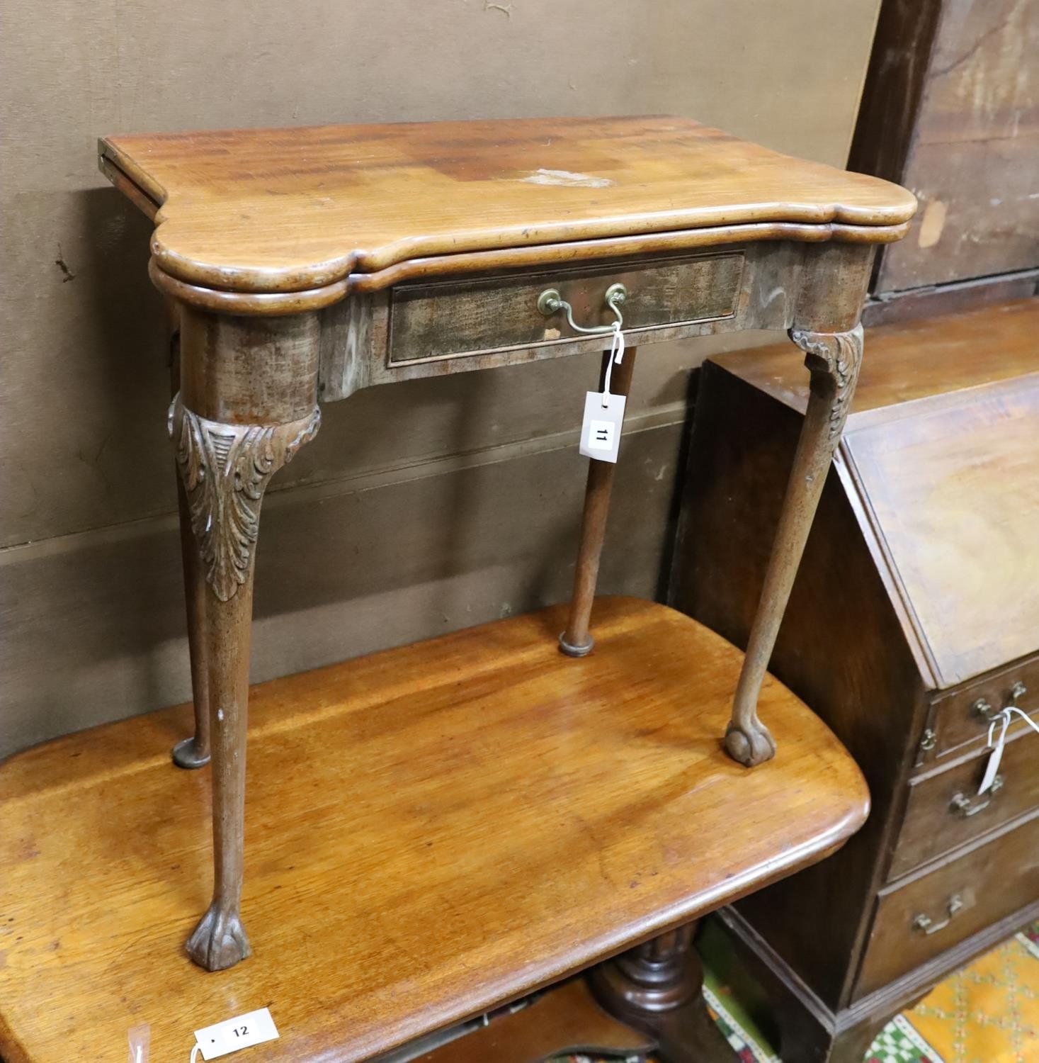 A George II mahogany folding card table on carved cabriole legs, width 76cm, depth 38cm, height 72cm