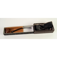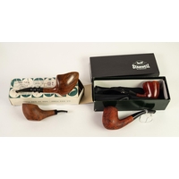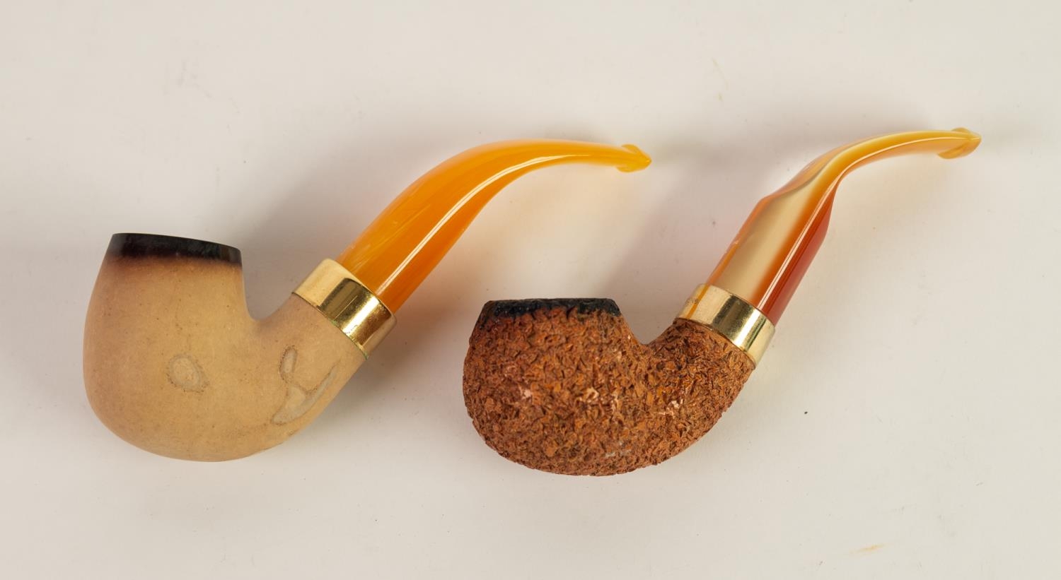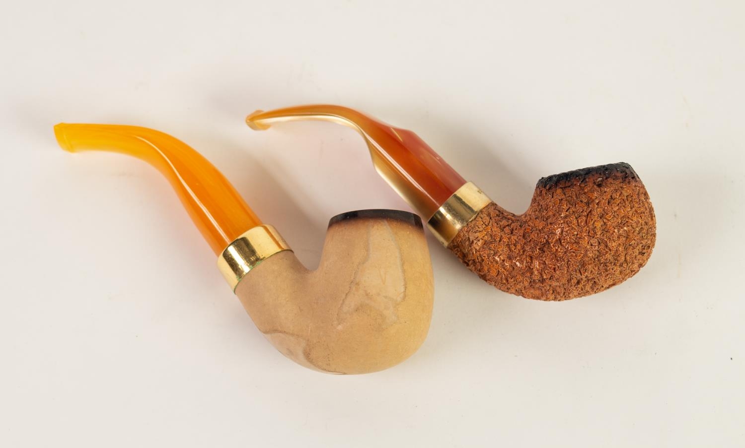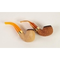 TWO EDWIN AND WILLIAM BARLING SMOKING PIPES, one with meerschaum bowl the other rustic, both with stamped gilt collars and mouthpieces, used, (2)