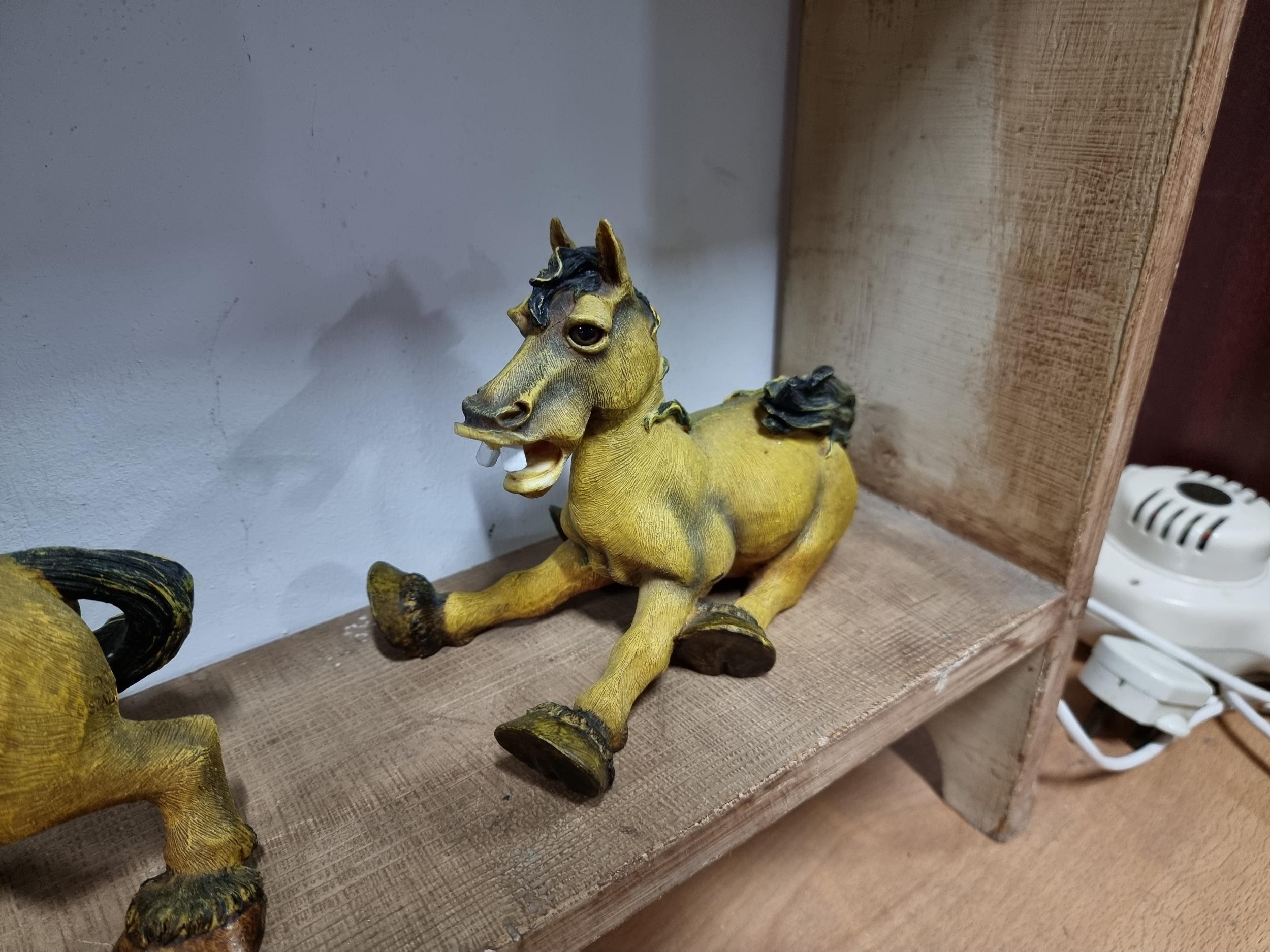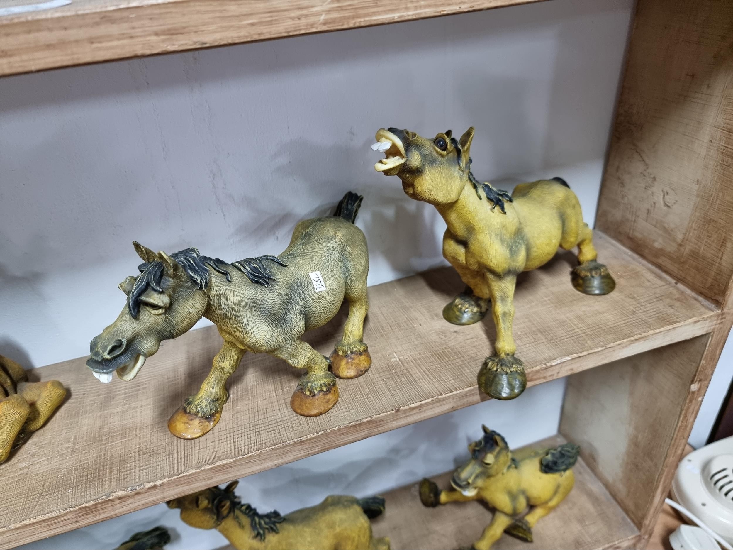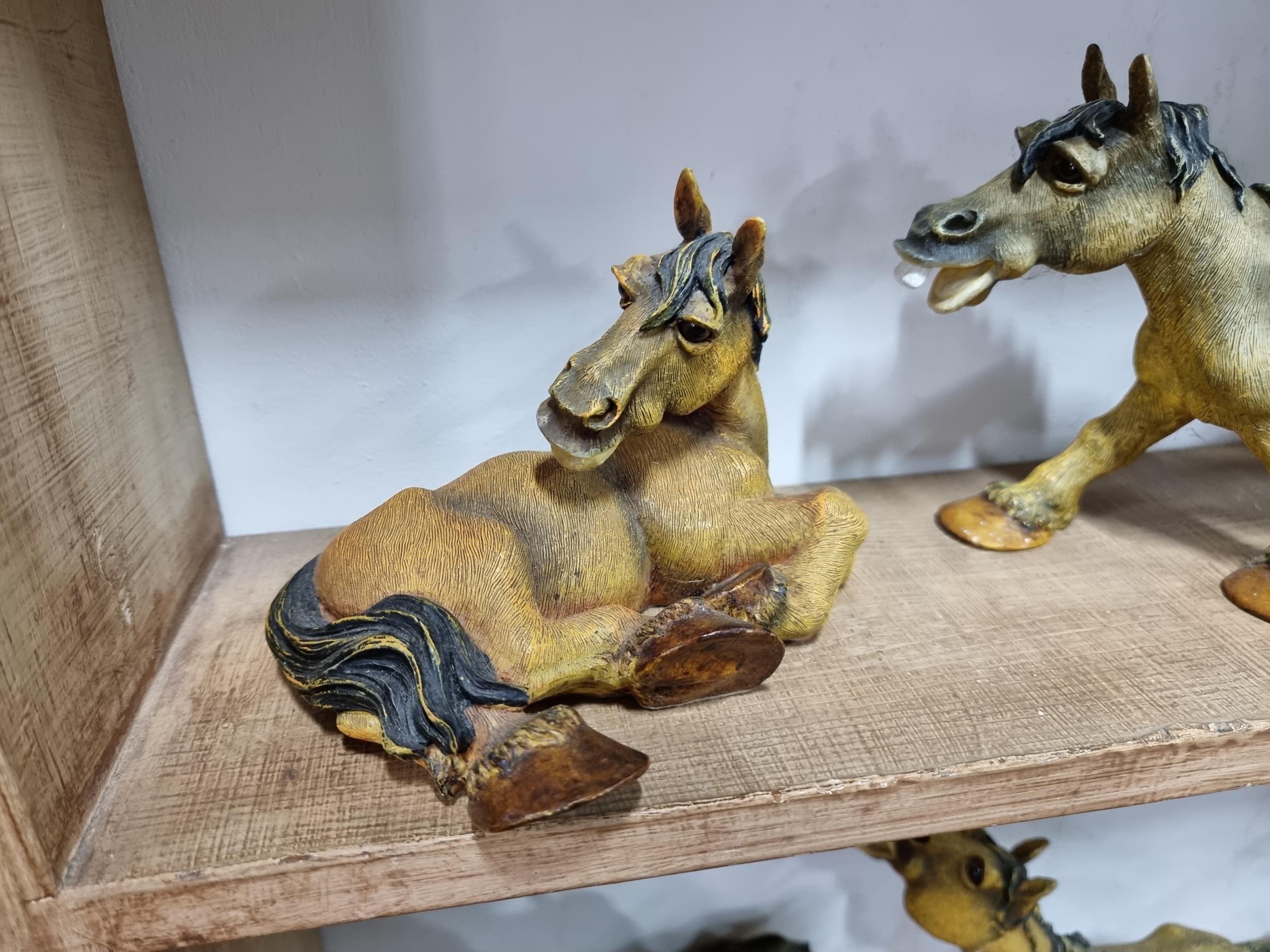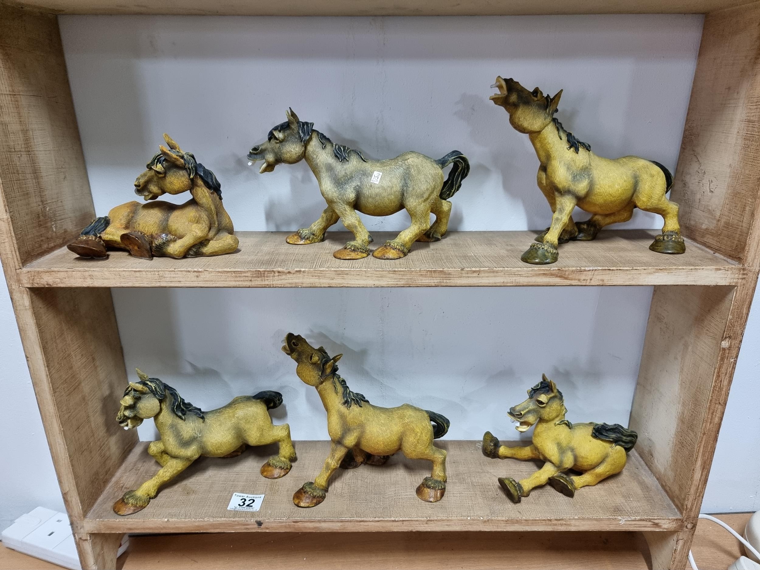 Quantity of 6x Sealmark horse comical ornaments in resin all with bobble heads, all in good order. largest figure stands at 19cm high by 26cm long