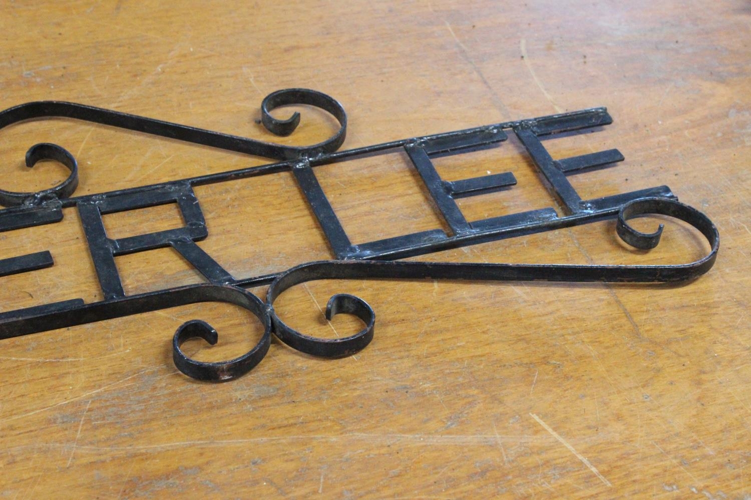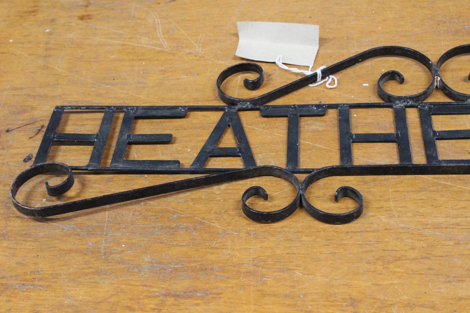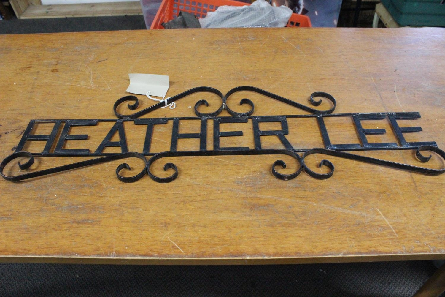 A vintage wrought iron cottage sign, 'Heather Lee'.