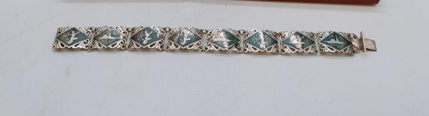 Siam 7" Silver Bracelet with Oriental Panels.