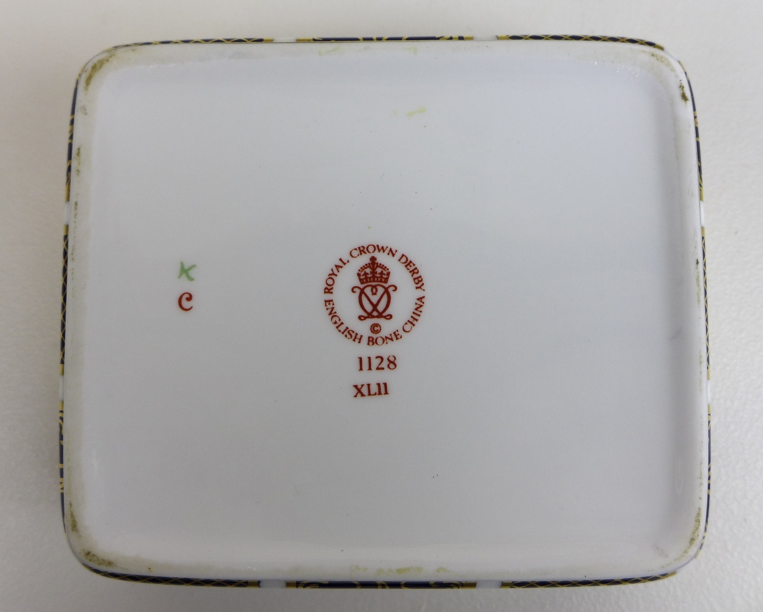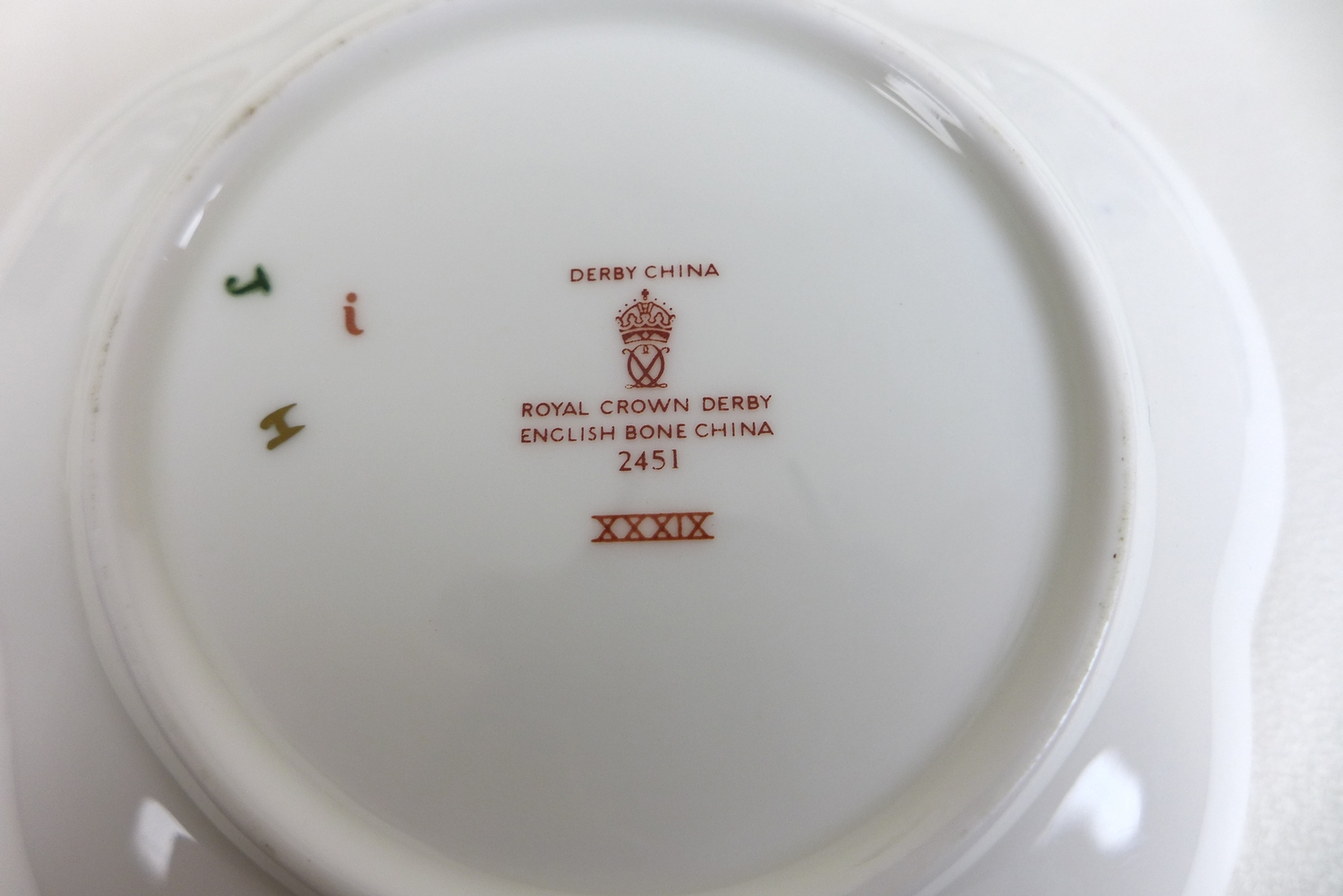 A group of Royal Crown Derby wares, comprising twenty-eight piece of 1128 pattern tea wares, six cups and saucers, six tea plates, two serving plates, two candle snuffers, a trinket box, two pin trays, a vase, a bell, lidded ginger jar, together with eleven pieces of pattern 2451, seven napkin rings, two pin dishes, a table lighter and a cake slice. (39)