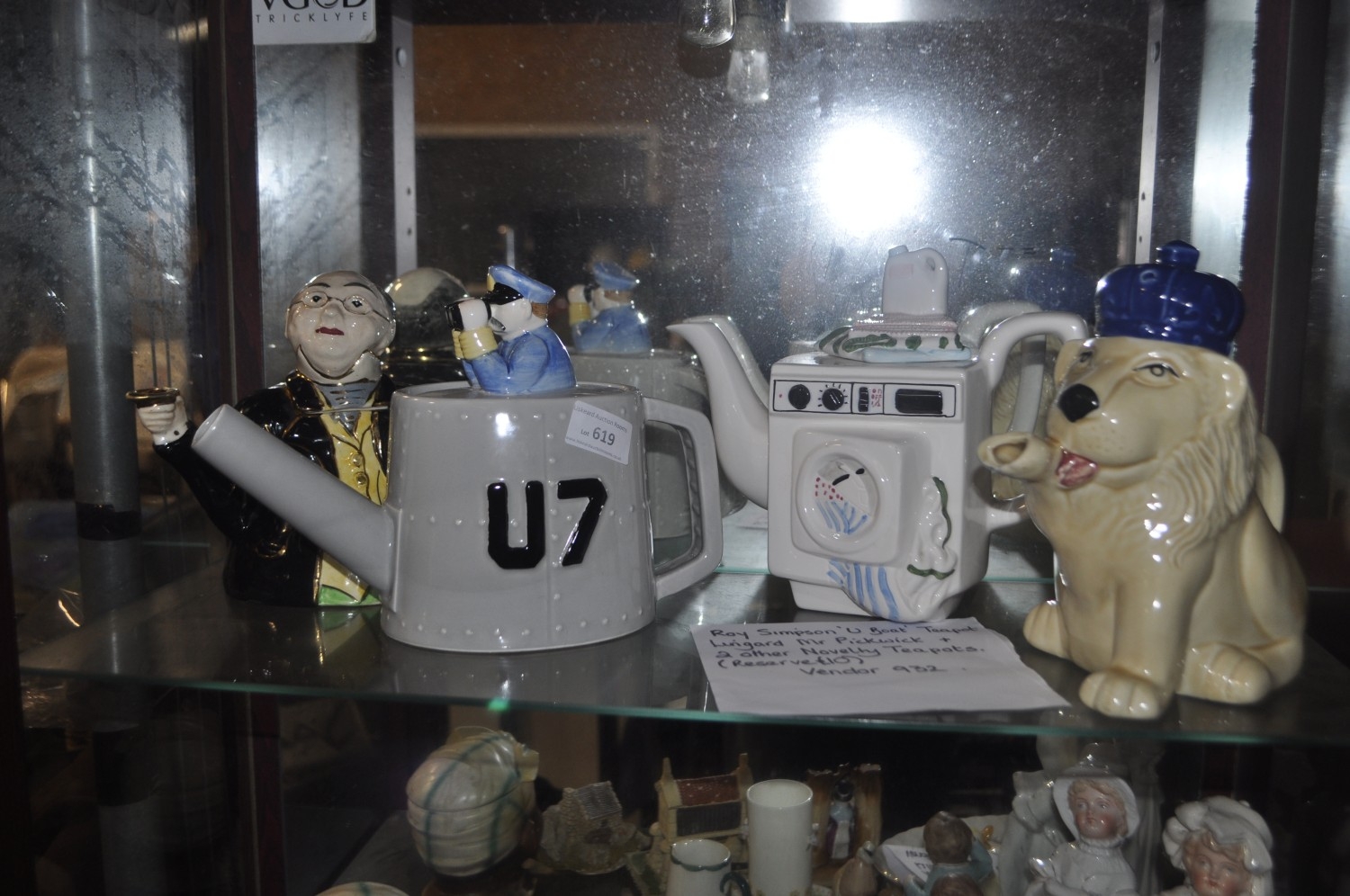 A ROY SIMPSON TEA POT AND A LINGARD MR PICKWICK PLUS 2 OTHER NOVELTY TEA POTS GREAT COLLECTION