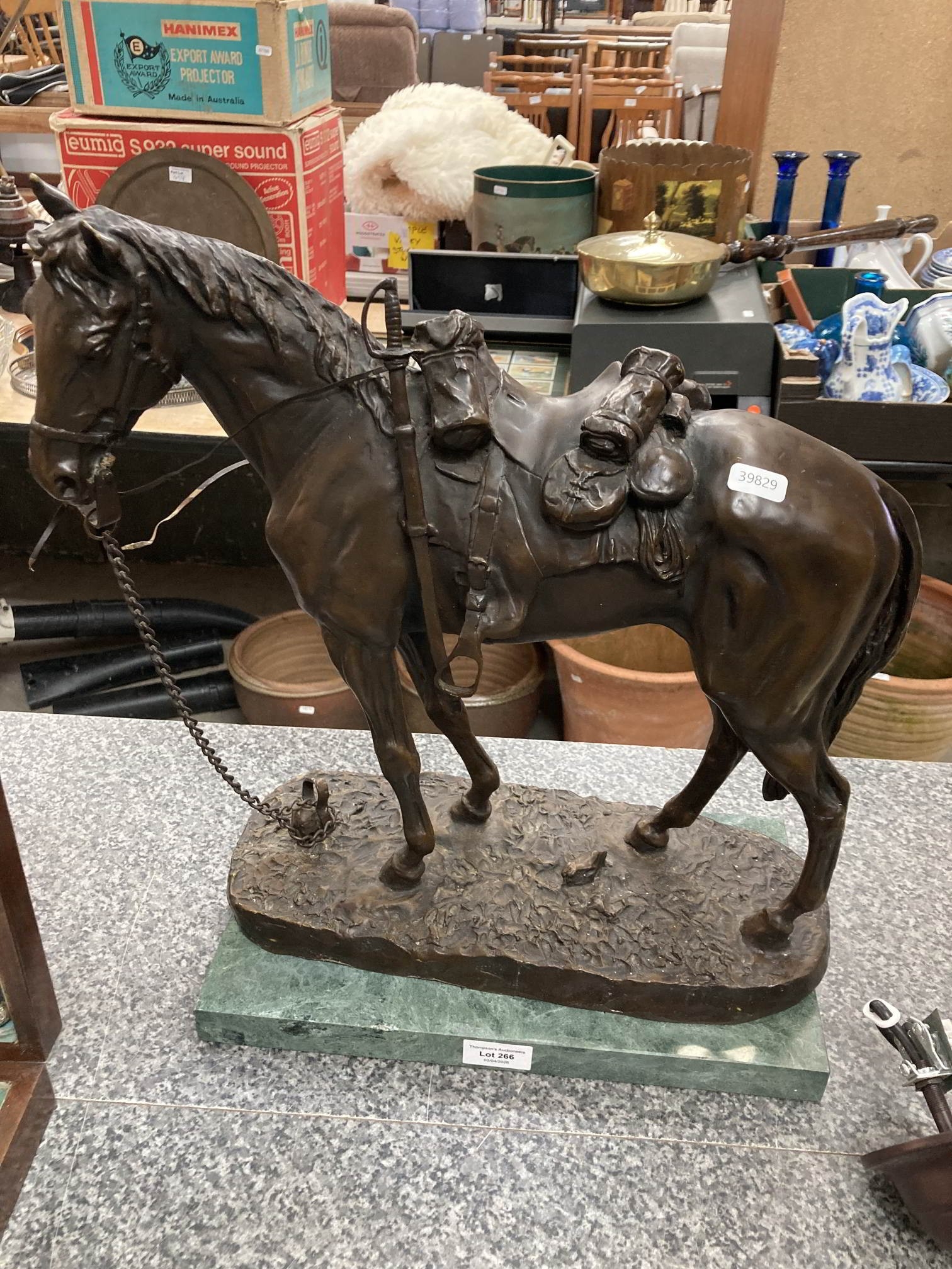 After Carl Kauba (1865-1922) cold painted bronze sculpture of a horse on a green marble plinth 46H 45W 20D