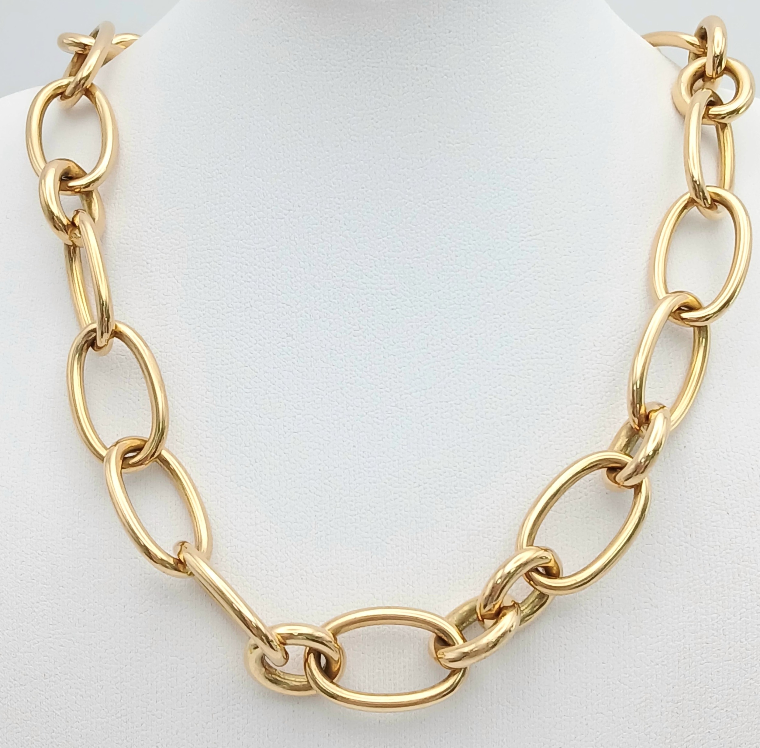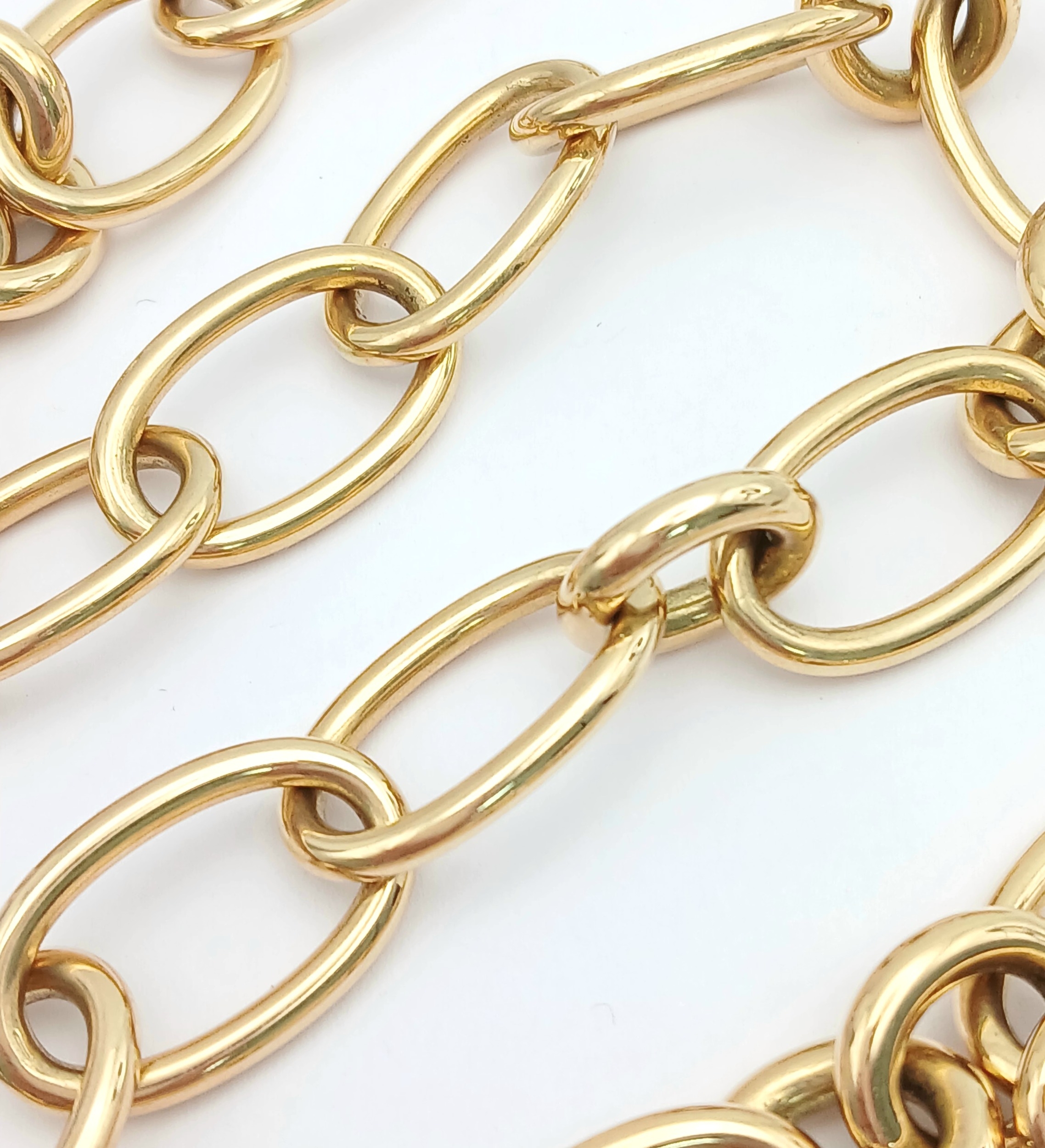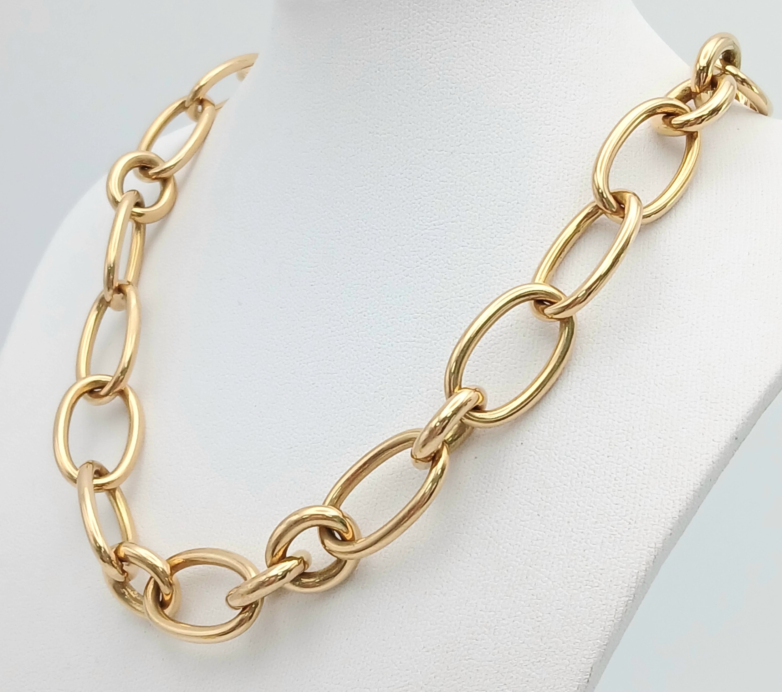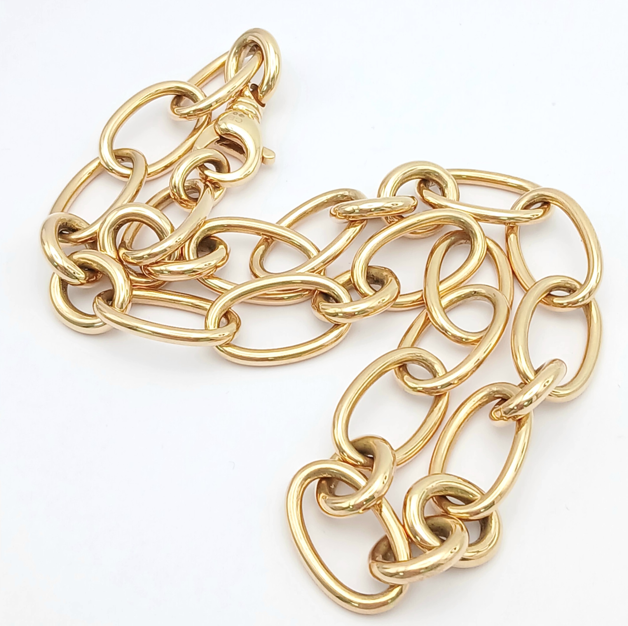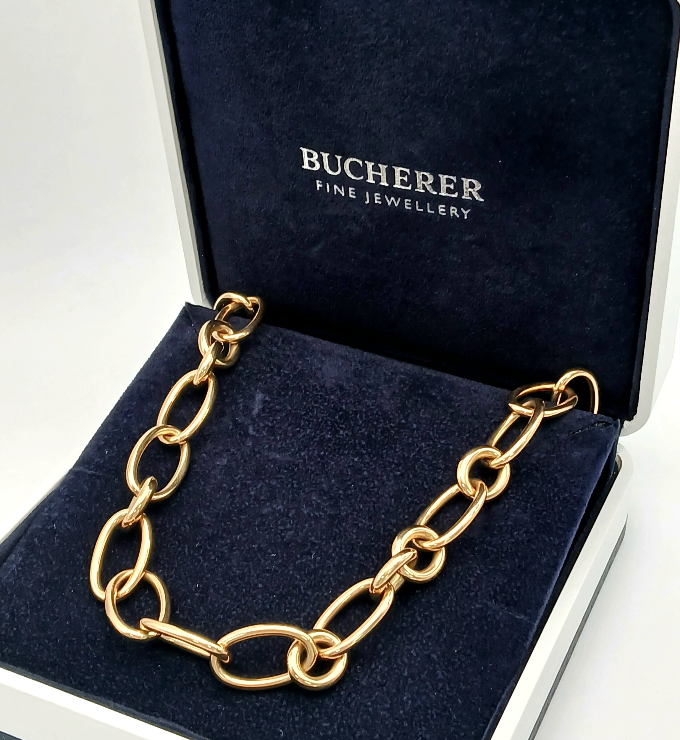 A Bucherer 18K yellow gold link chain necklace. Total weight 41.31G. 40cm length. Comes with card of authenticity and original presentation case. Ref: J1123.