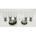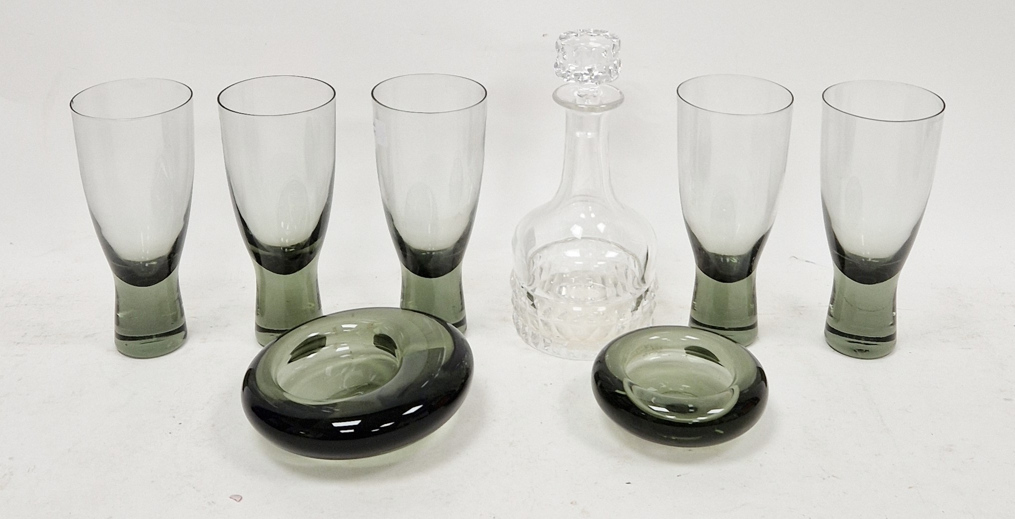 Set of five Holmegaard 'Canada' wine glasses designed by Per Lutken, 18cm high, together with two Holmegaard glass bowls designed by Per Lutken and a cut glass decanter of mallet form (8)