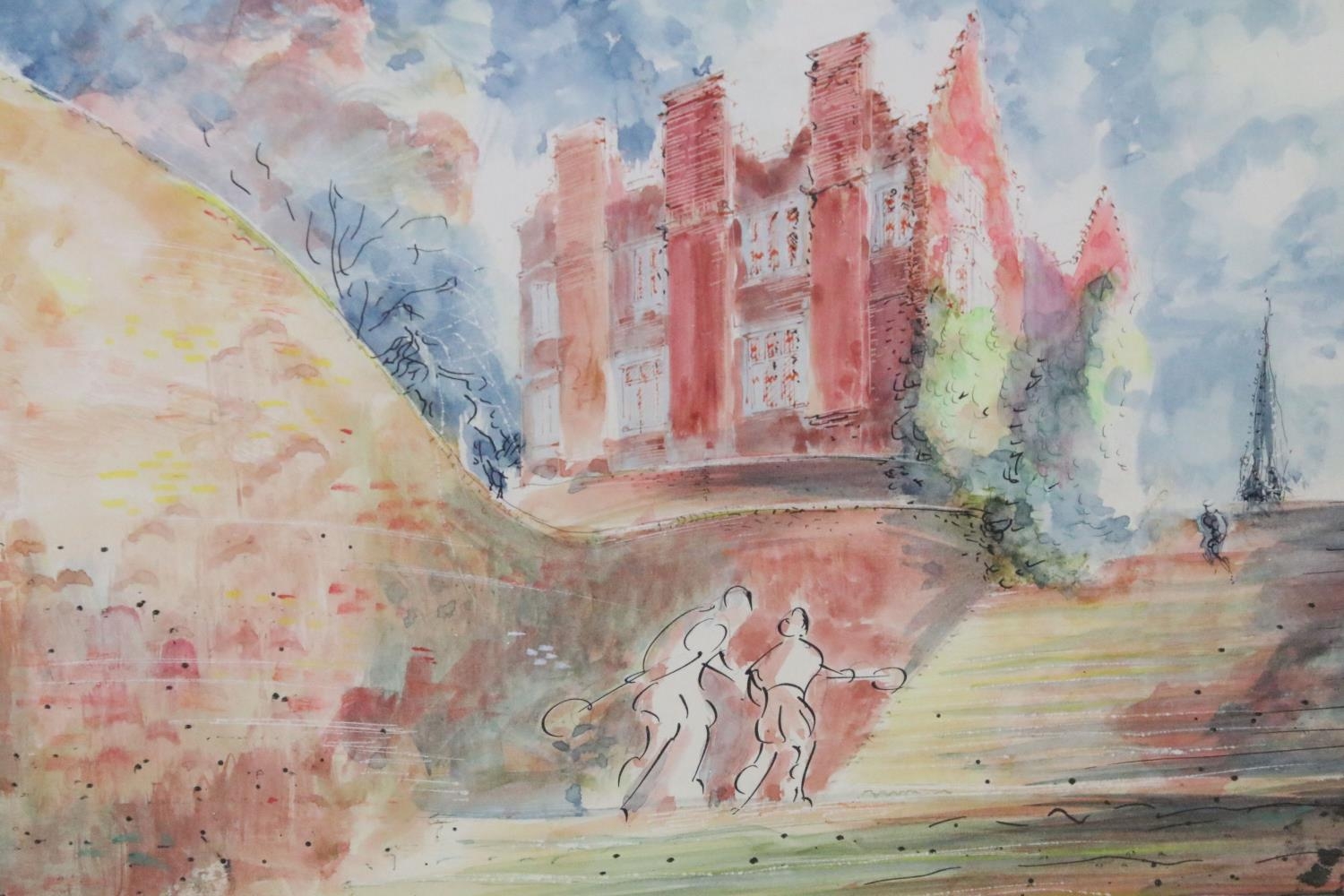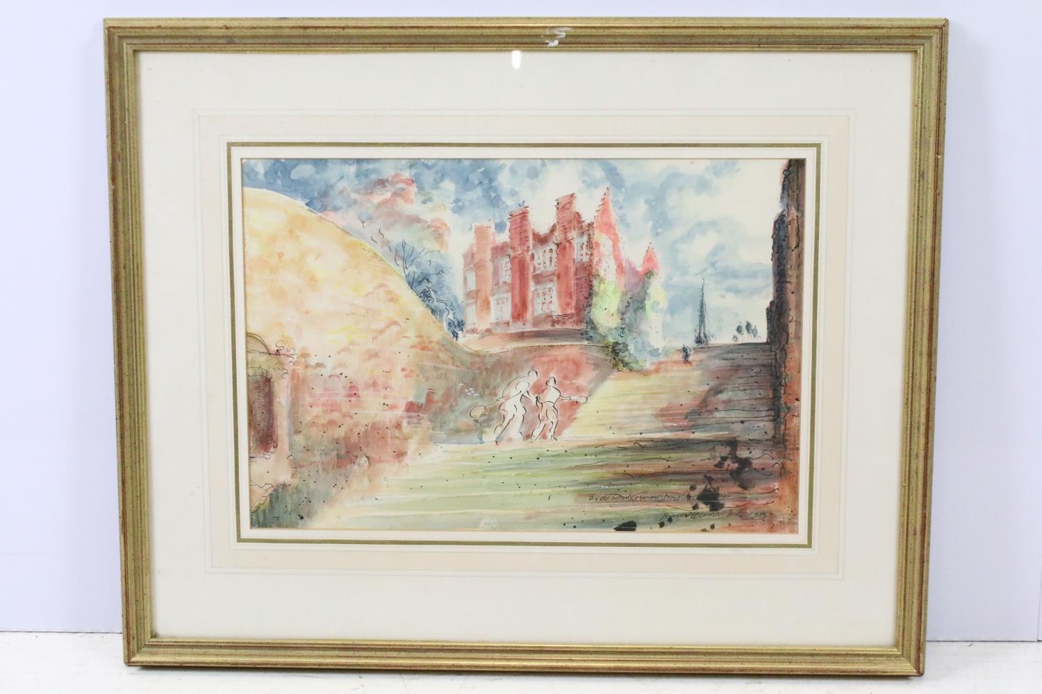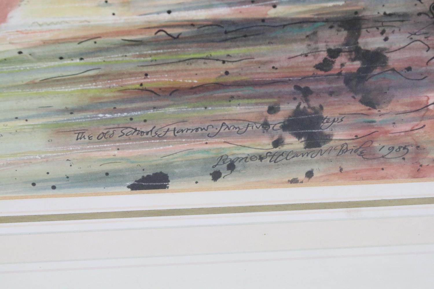 Barrie St Clair McBride (1838 - 1922), The Old School Harrow from Five Court Steps, pen, ink and watercolour, 27 x 40cm, framed and glazed