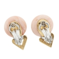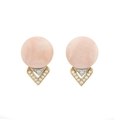 A pair of 18ct gold pink coral cabochon and brilliant-cut diamond earrings, corals measure approximately 17 by 12mm each, estimated total diamond weight 0.60ct, H-I colour, VS2-SI1 clarity, Italian assay marks, length 2.7cm, 20g