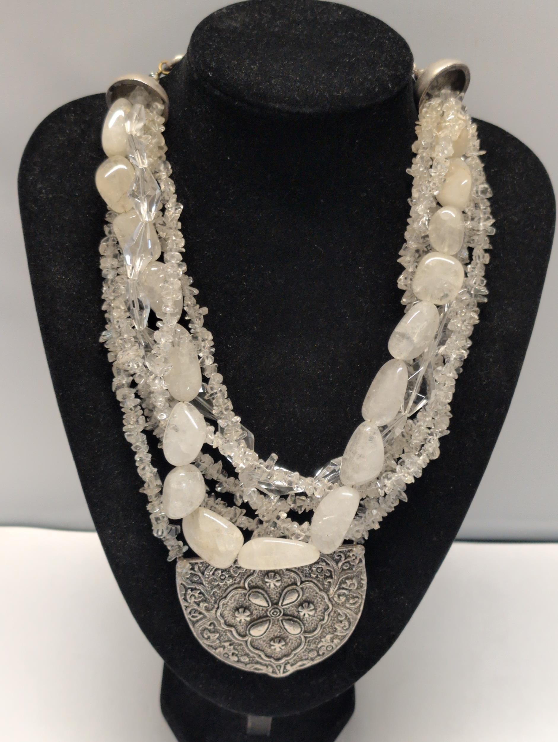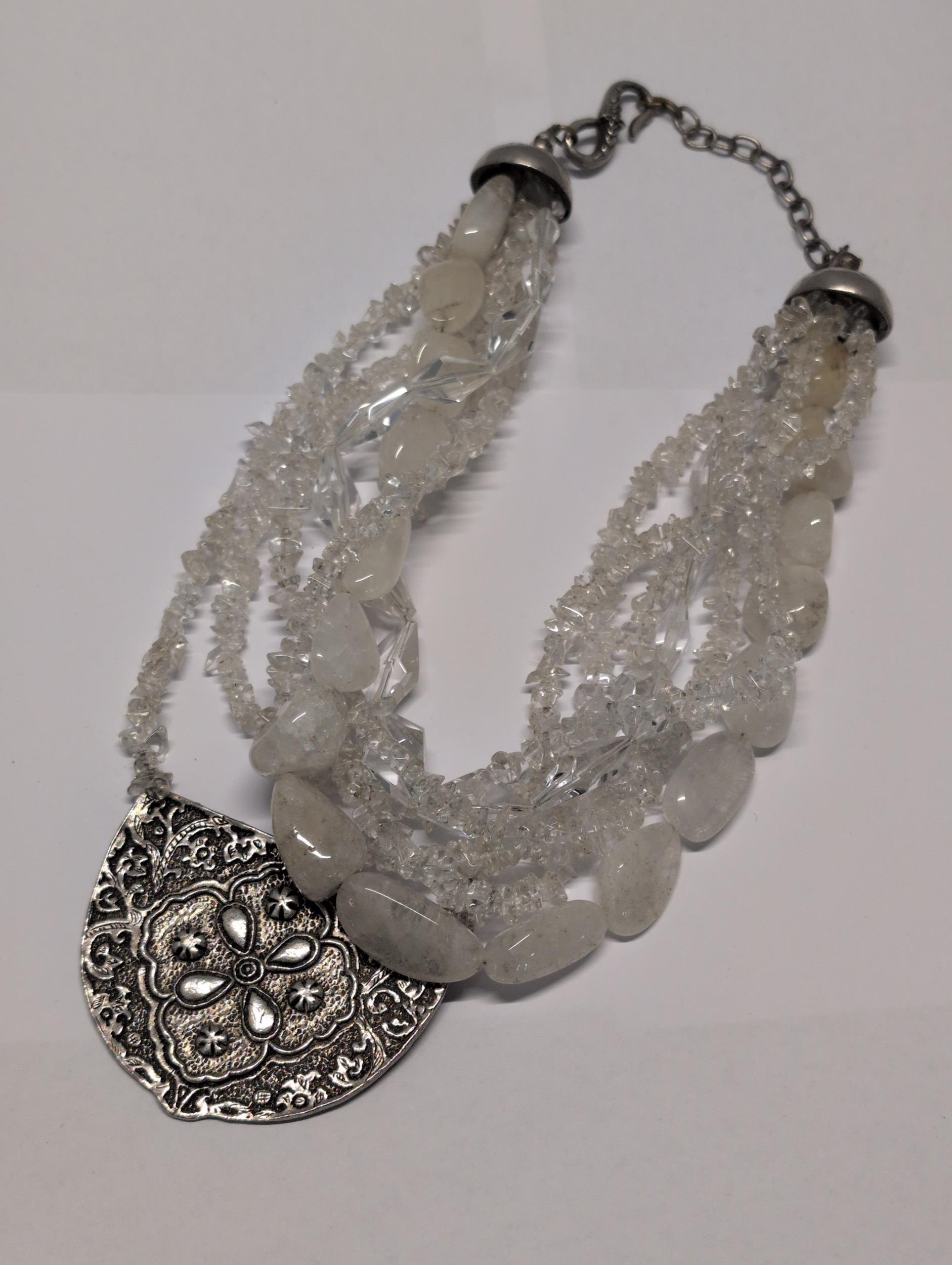 Cesaré Paris Multi-Strand Necklace with Clear Quartz and Opaque White Beads