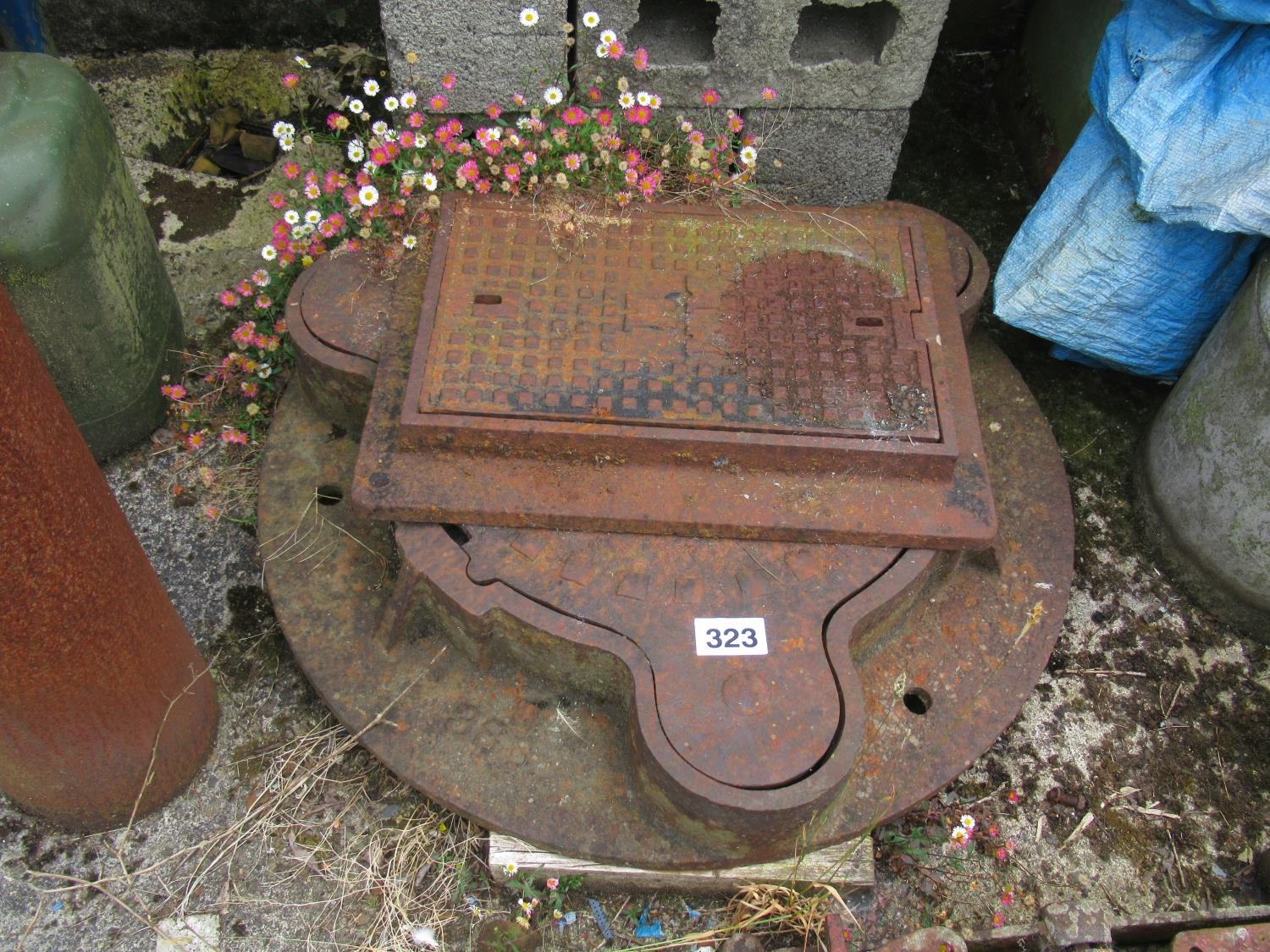 Heavy cast iron Man hole cover plus another.