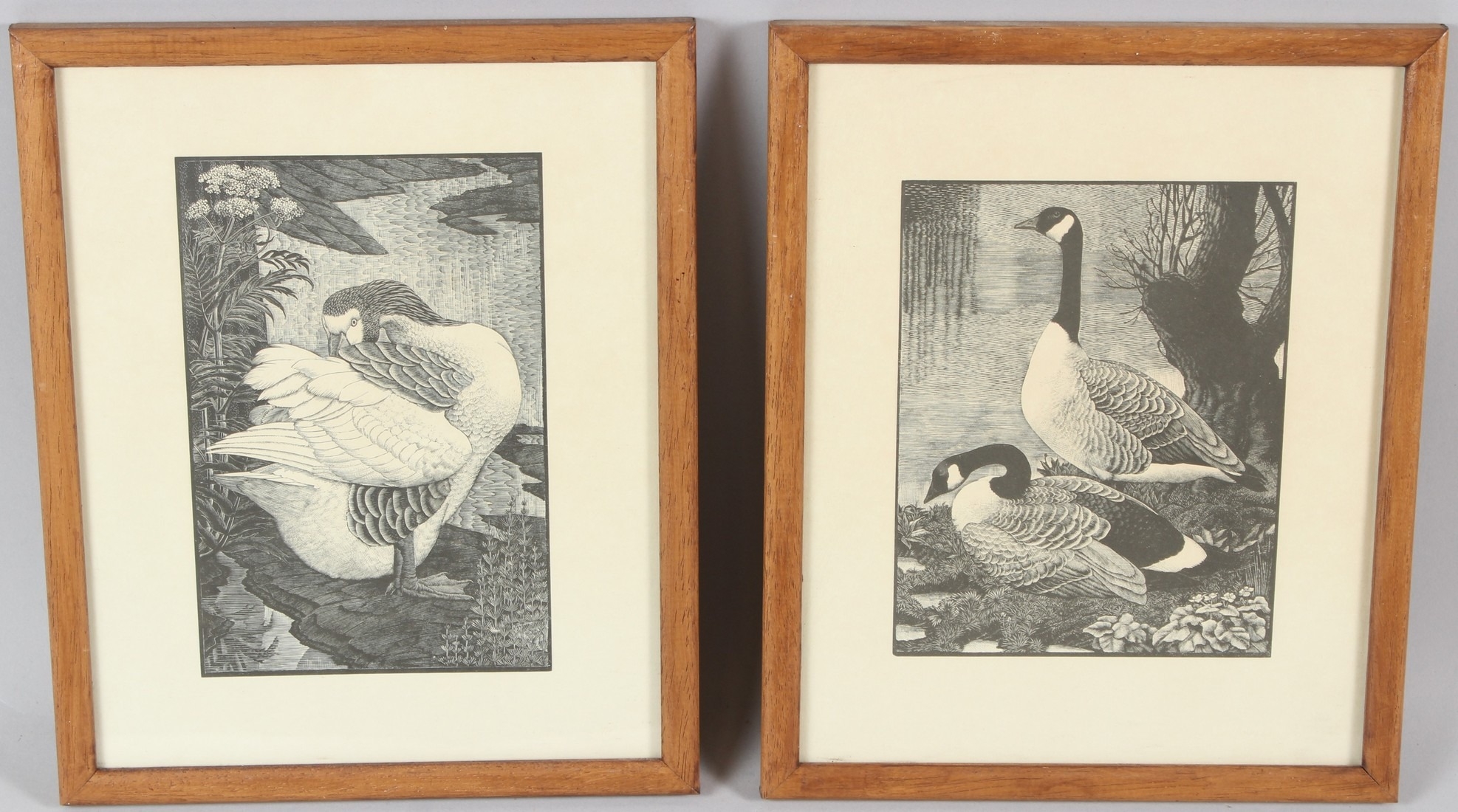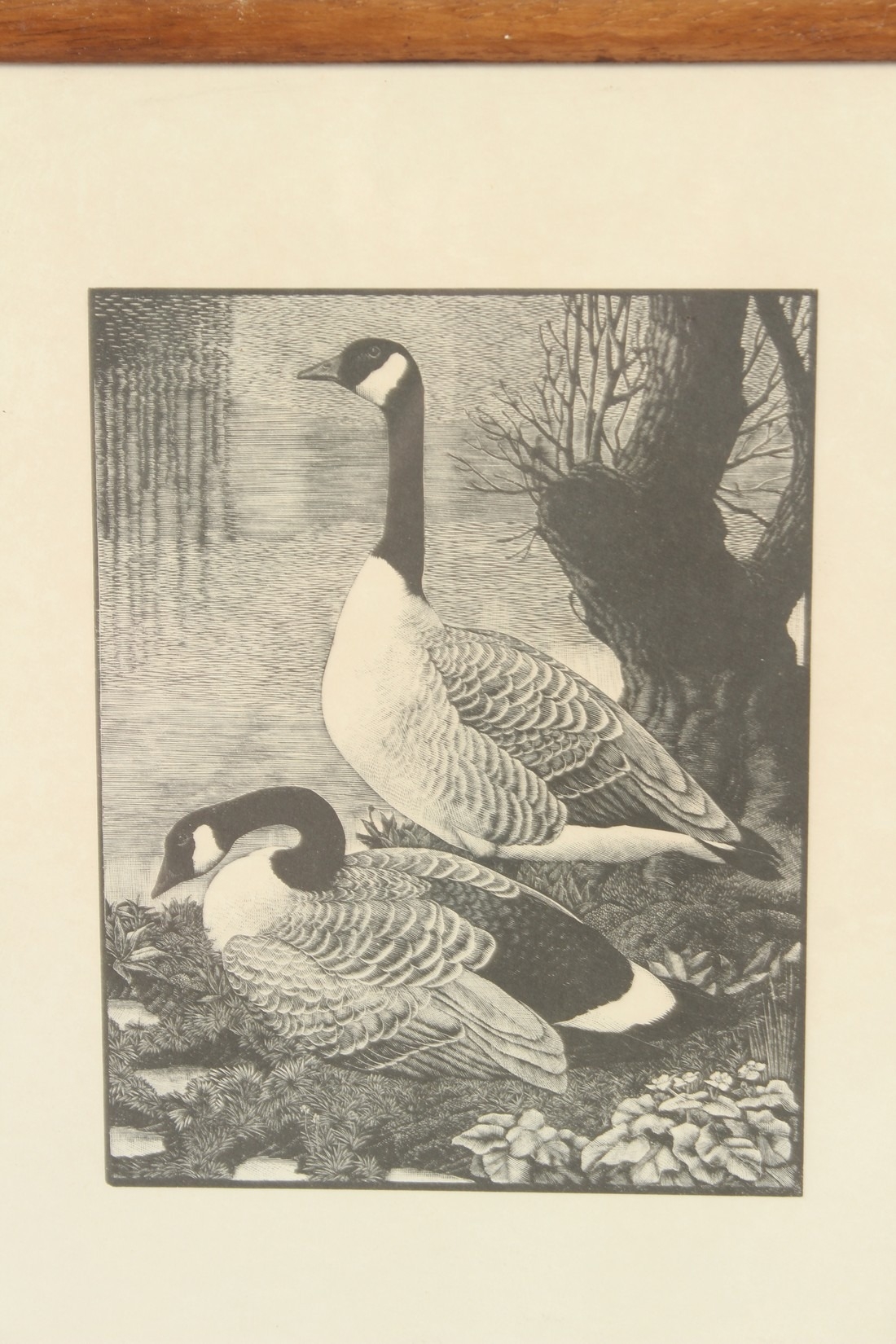 C F TUNNICLIFFE 'Gander' wood engraving and another of geese pair each 25 x 20cm (2)
