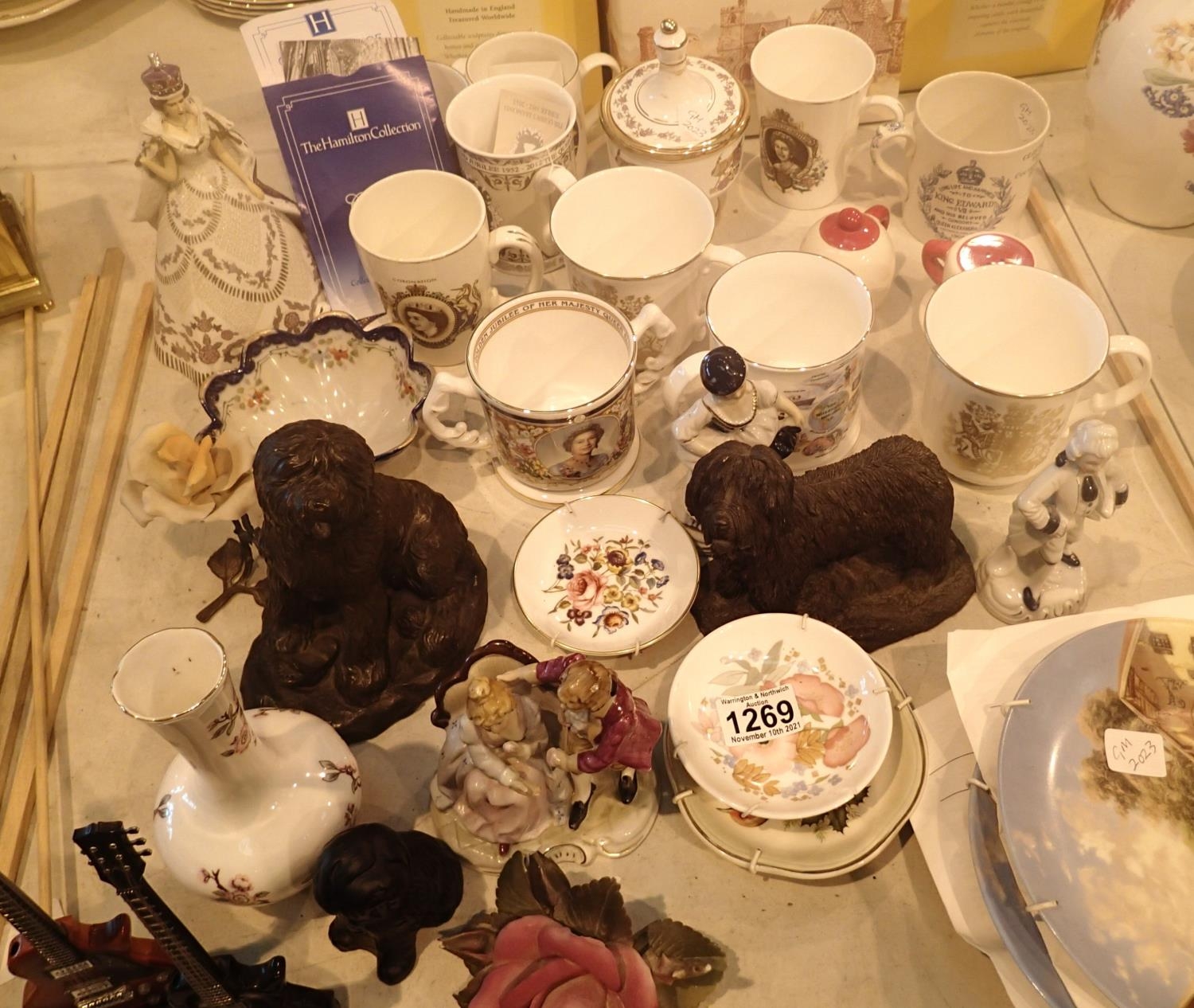 Mixed ceramics to inlude Capodimonte, Wedgwood pin tray, Coronation mugs, Heredites dog figurines etc. Not available for in-house P&P, contact Paul O'Hea at Mailboxes on 01925 659133
